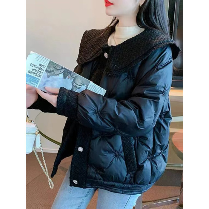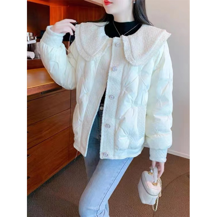 小香風羽絨棉服女短款2025新款冬季小個子設計感娃娃領棉衣外套潮