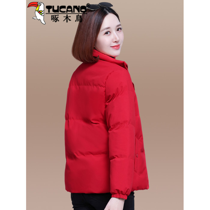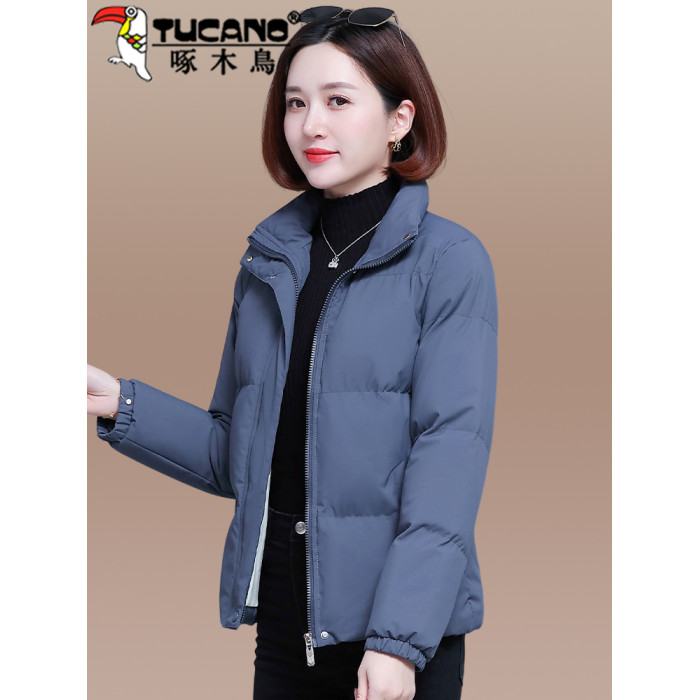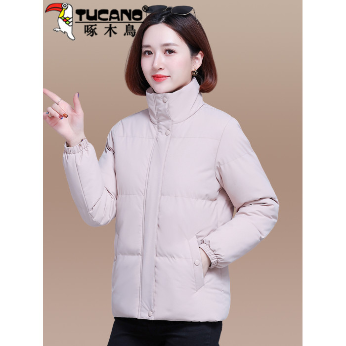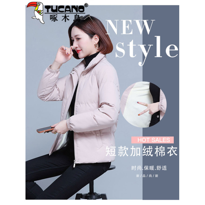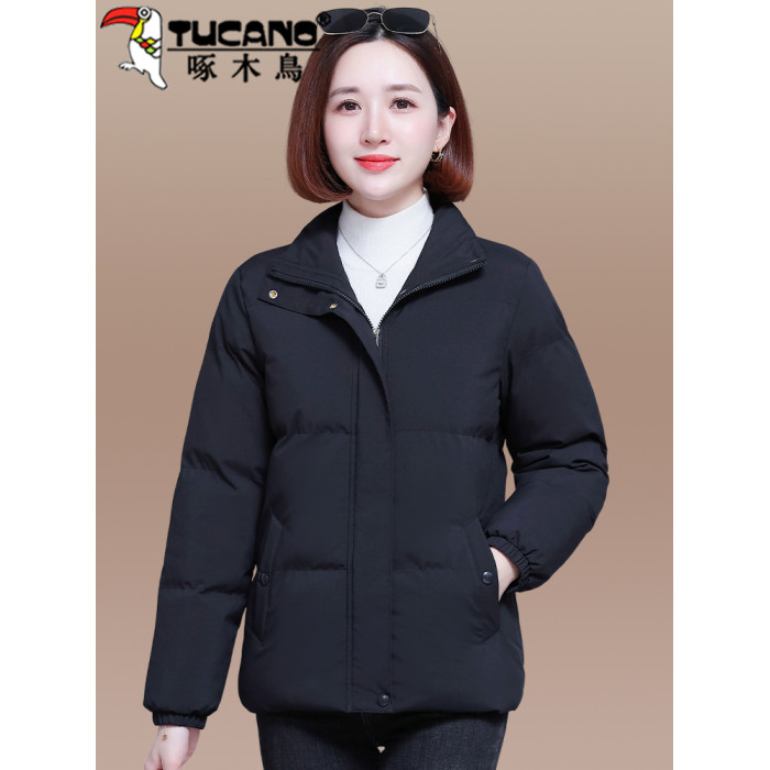 啄木鳥羽絨棉服女2025年新款冬季加絨加厚棉衣棉襖黑色女士短外套