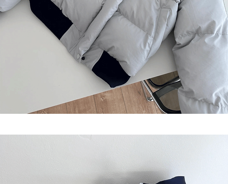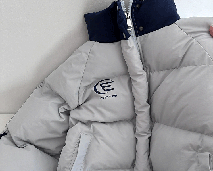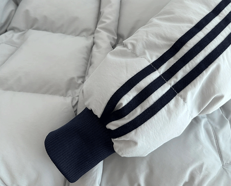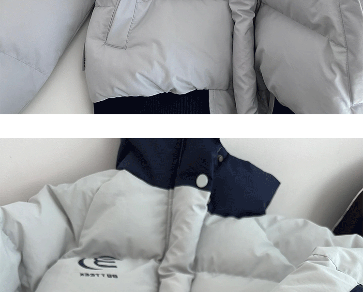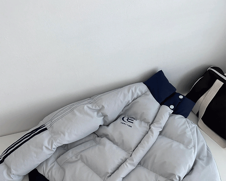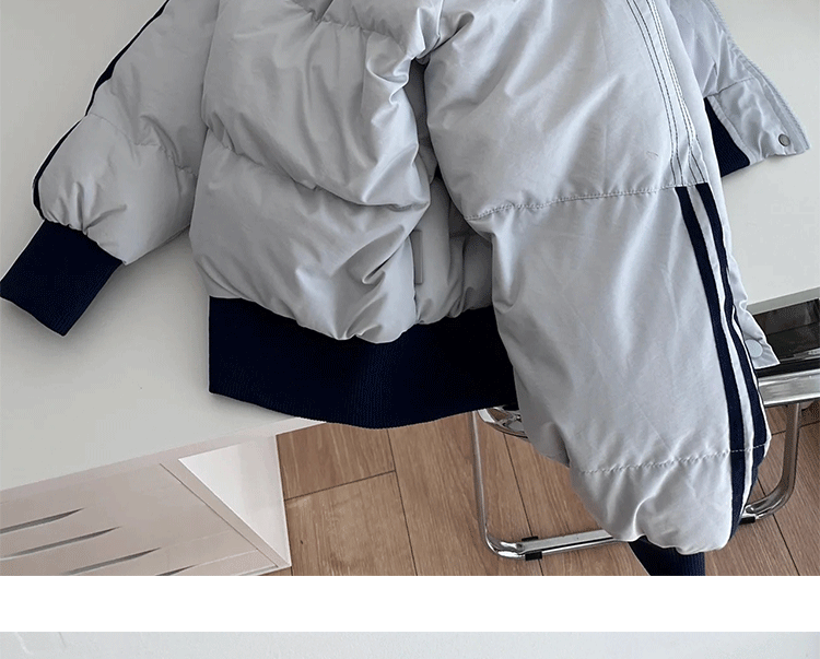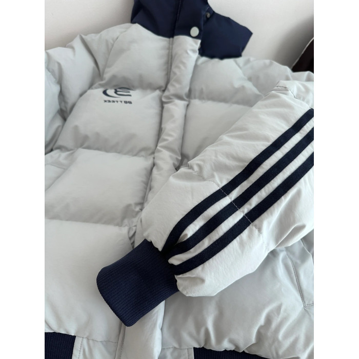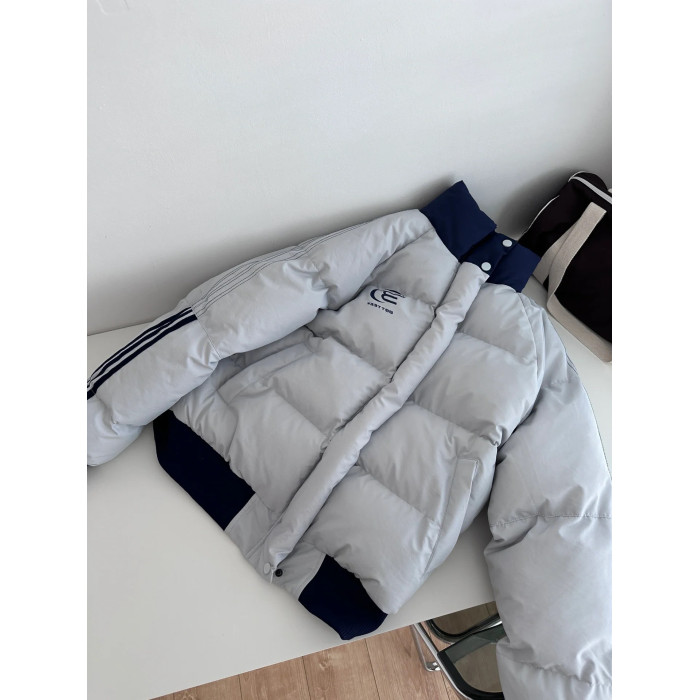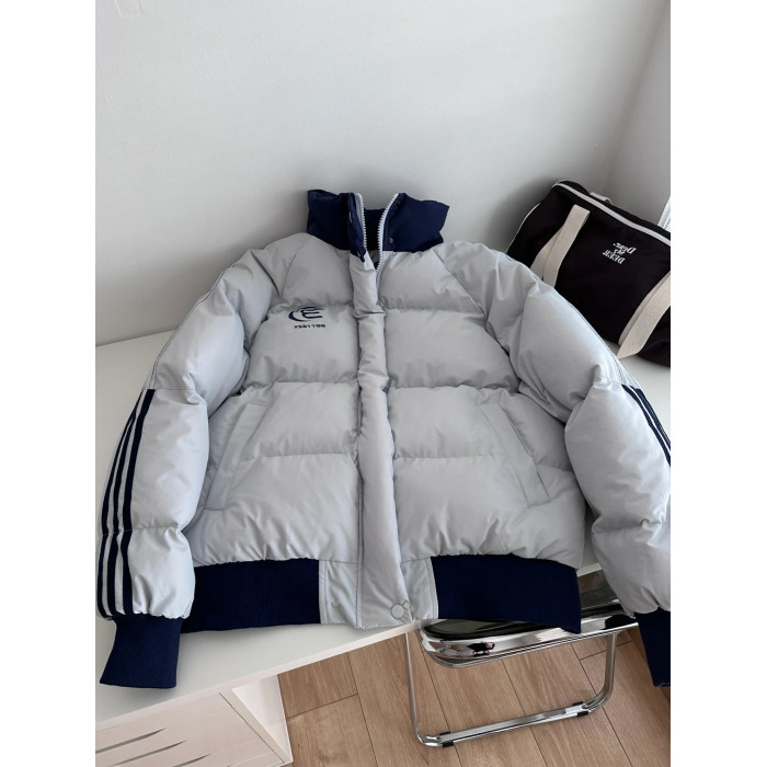 國潮牌拼色側條紋羽絨棉服女冬季新款加厚情侶寬松保暖麵包服外套