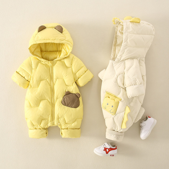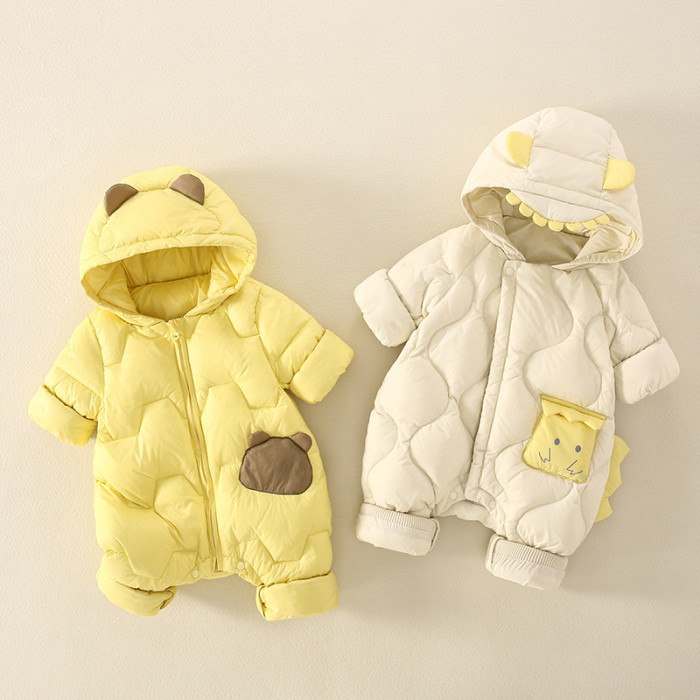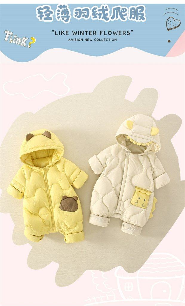 新生嬰兒衣服冬款外出羽絨服滿月百天寶寶洋氣連體衣帶帽保暖哈衣