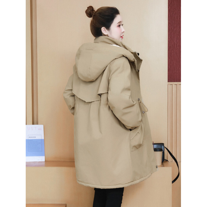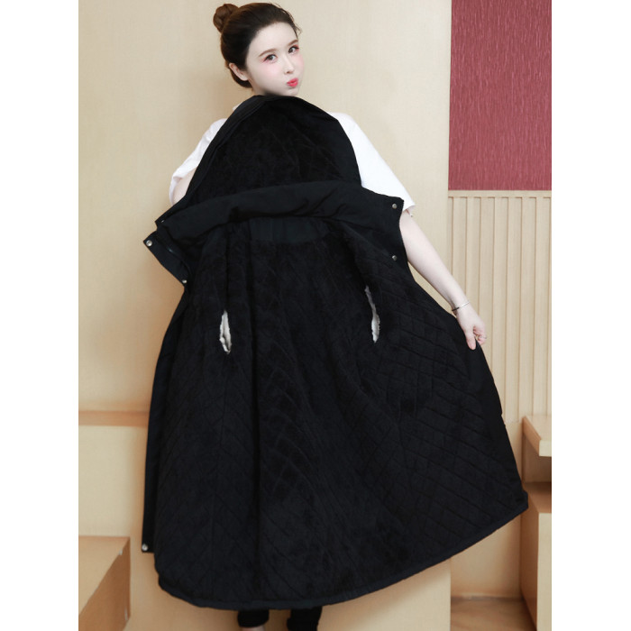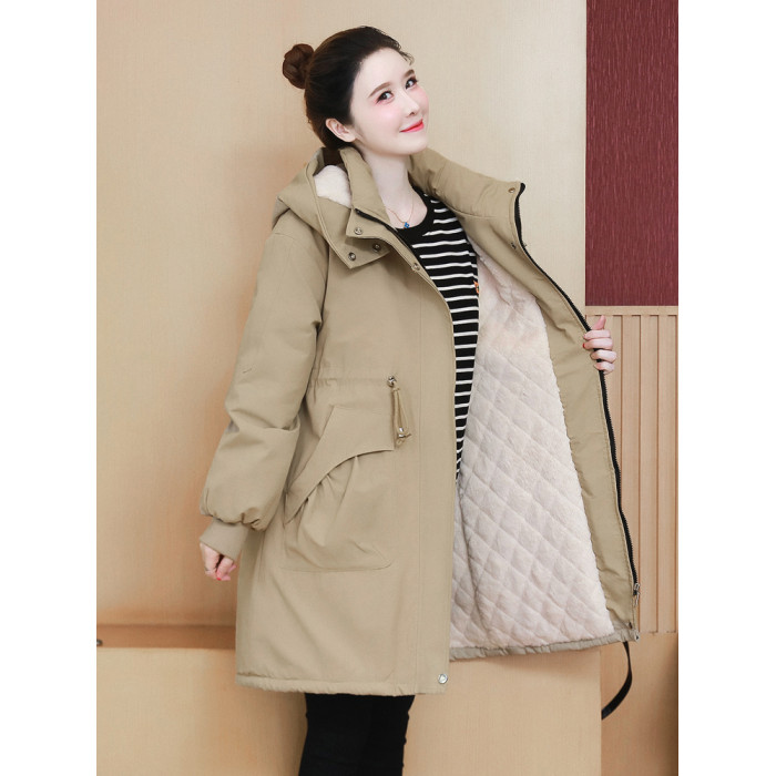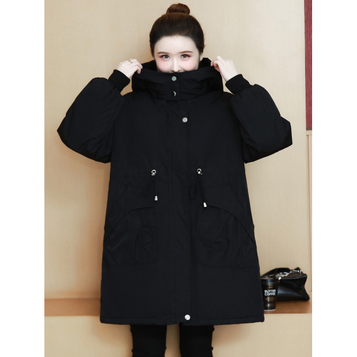 胖妹妹加肥加大碼棉衣棉服外套女260斤中長款羊羔絨休閒連帽棉襖