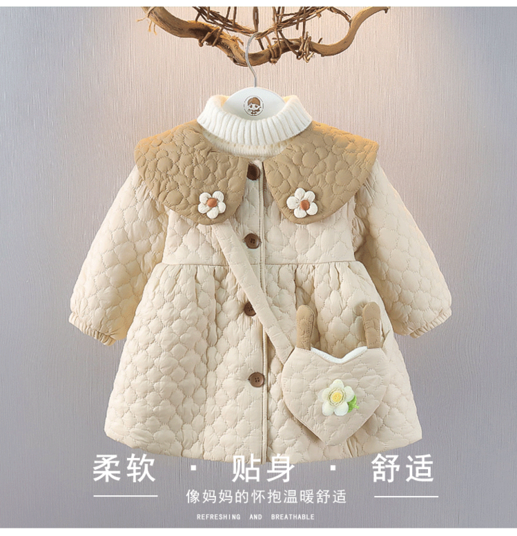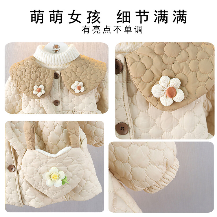 女2童加絨小棉衣周嵗1女寶寶外套3兒2童棉服洋氣冬裝嬰兒棉襖外出