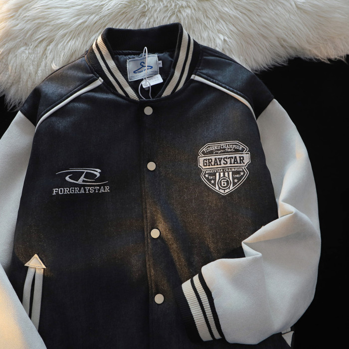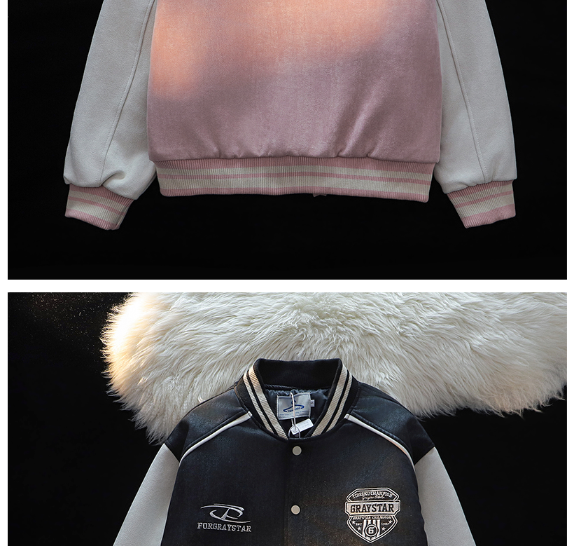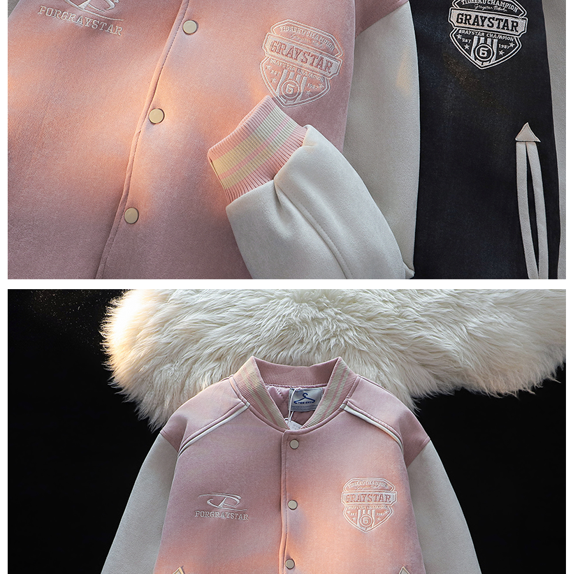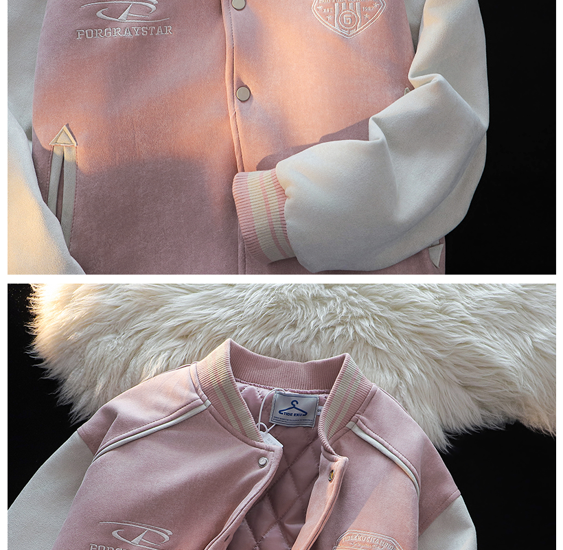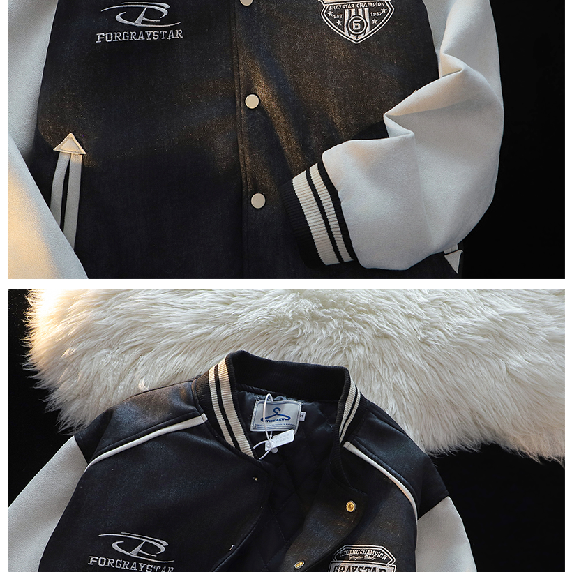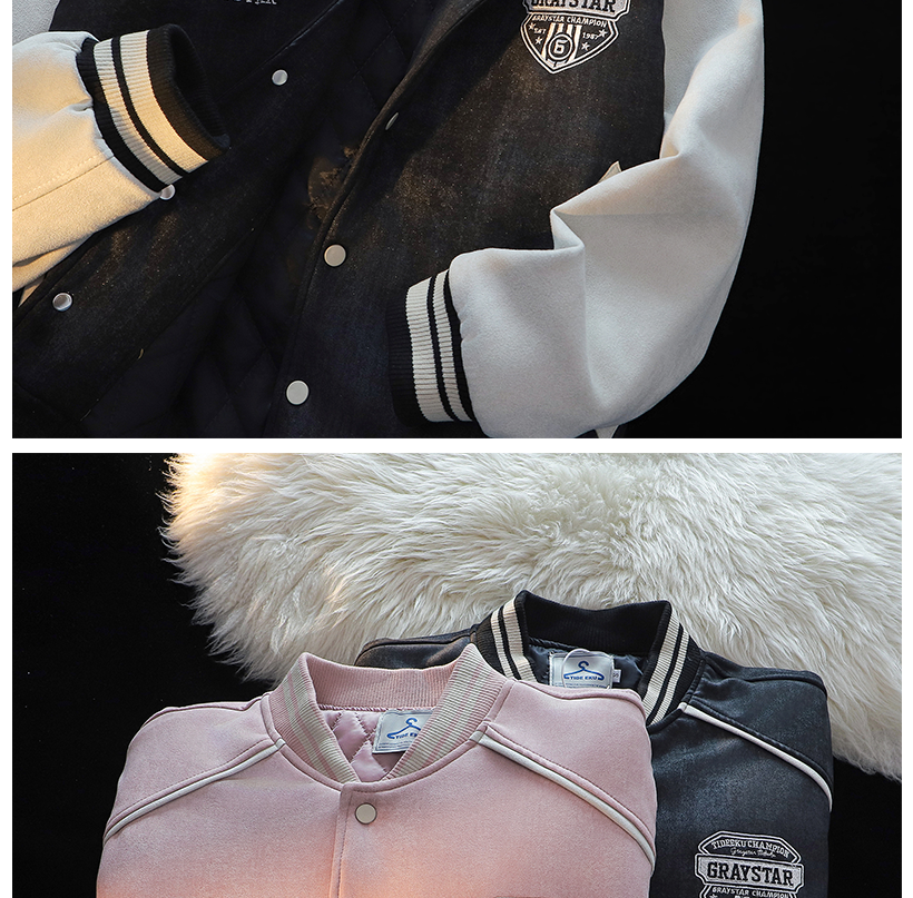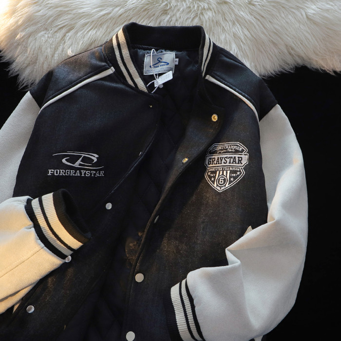 美式復古撞色工裝夾克棉服女冬季外套2024新款加厚夾棉情侶棒球服
