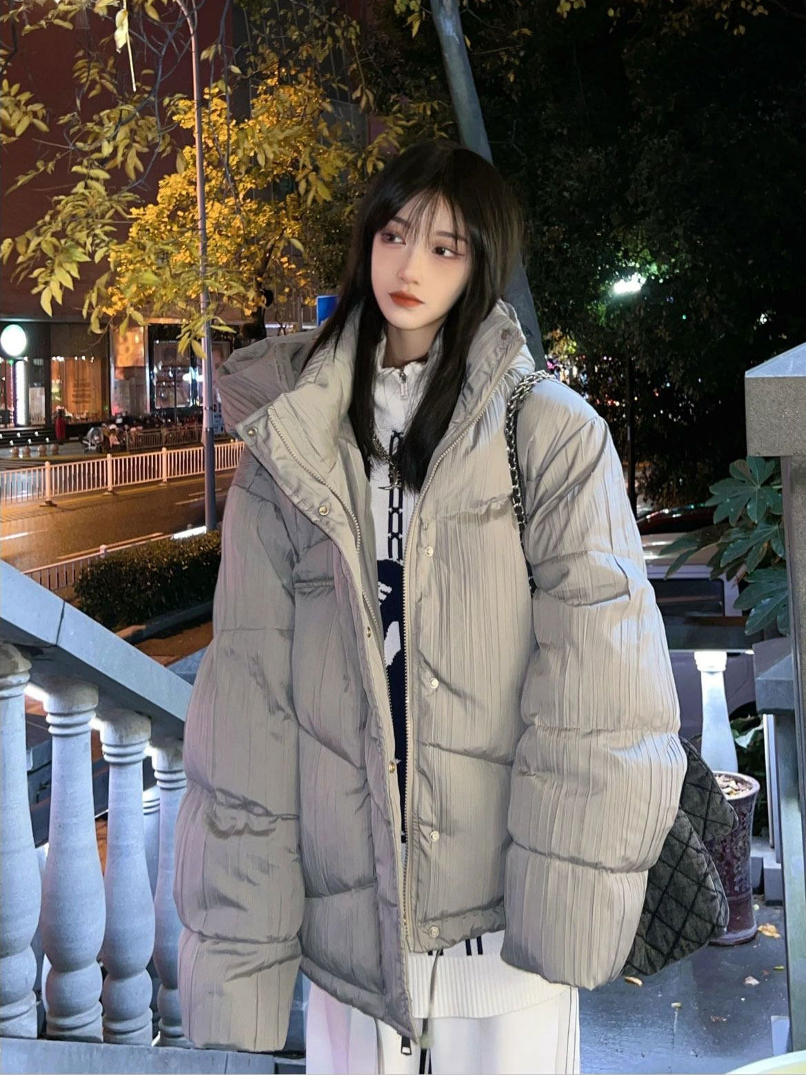 美式復古肌理感立領羽絨棉服女冬季設計感小衆加厚高級感棉衣外套