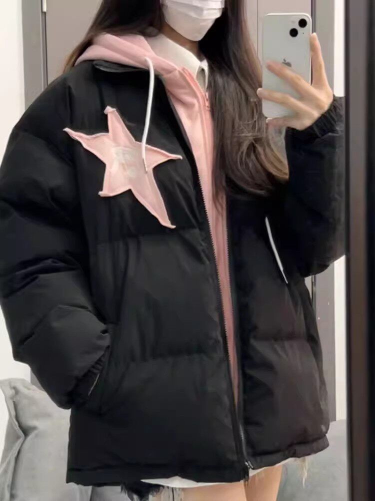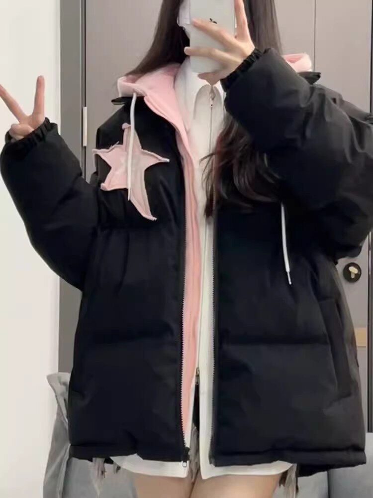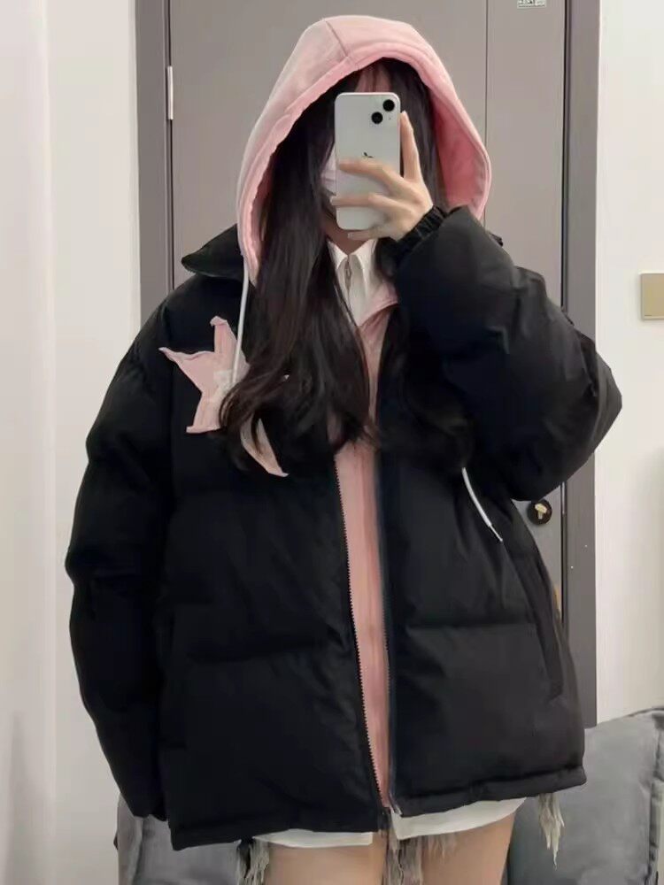 初中學生羽絨服女2025年冬季新款高中生寬松加厚可愛少女棉服外套
