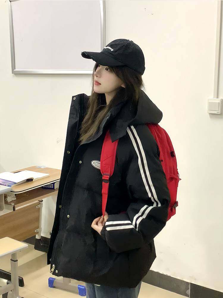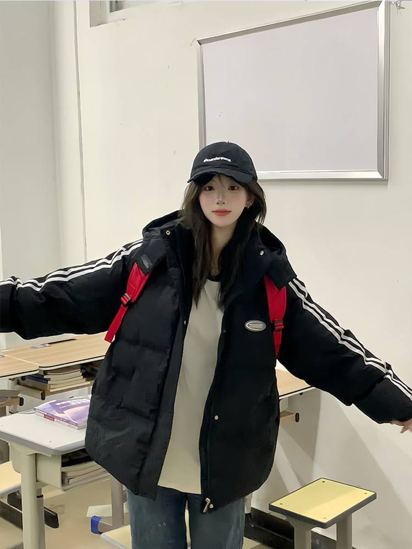 三條杠情侶羽絨棉服女2025新款冬季韓系寬鬆百搭加厚棉襖小個子潮