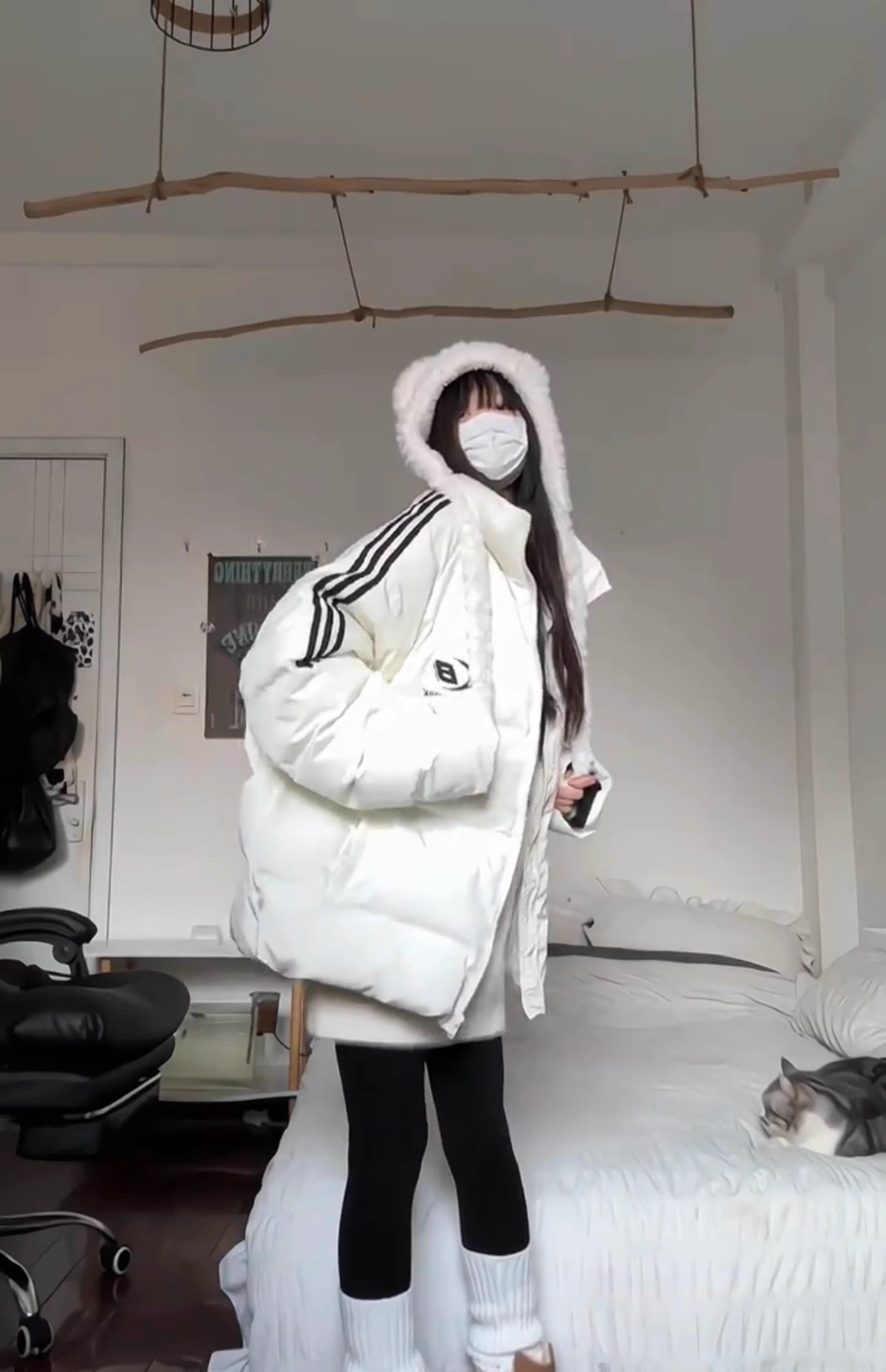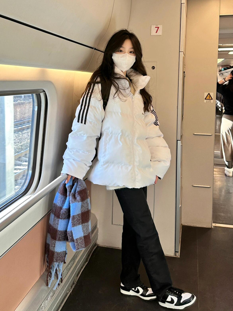 三條杠情侶羽絨棉服女2025新款冬季韓系寬松百搭加厚棉襖小個子潮