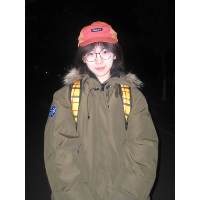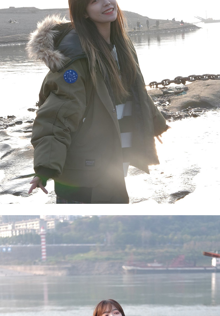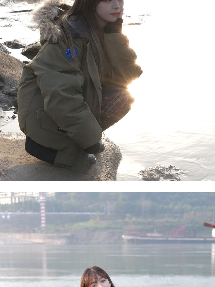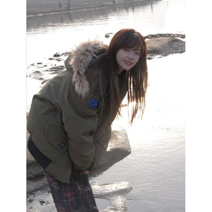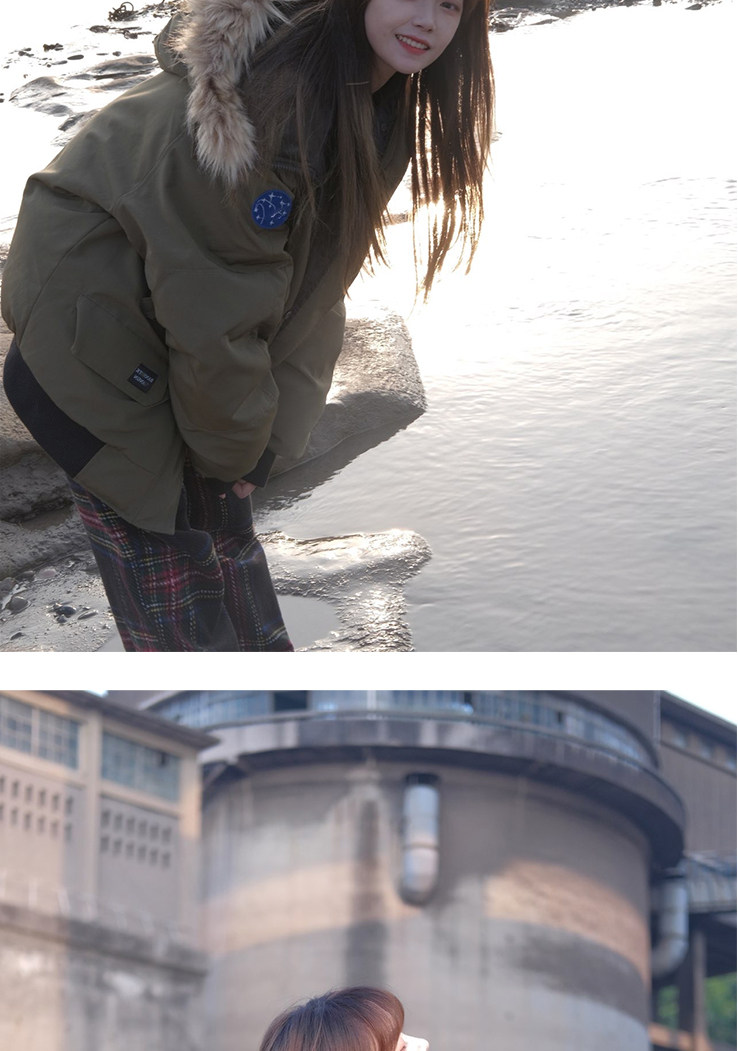 軍綠色毛領派克羽絨棉服女生冬季美式短款鹽系小個子學生棉襖外套