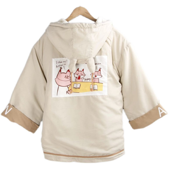 2450狐狸卡通棉服 連帽領春秋夾棉加厚寬松百搭棉衣小魚兒女