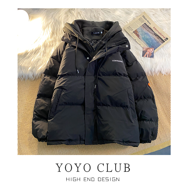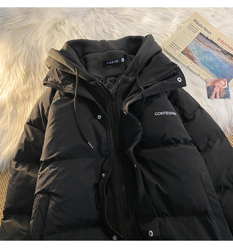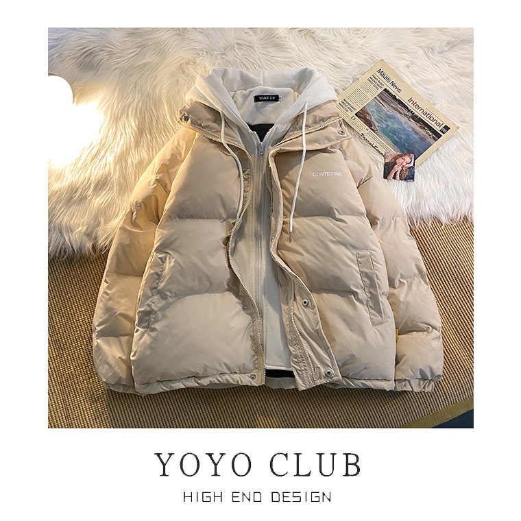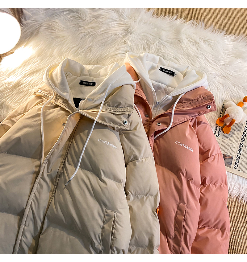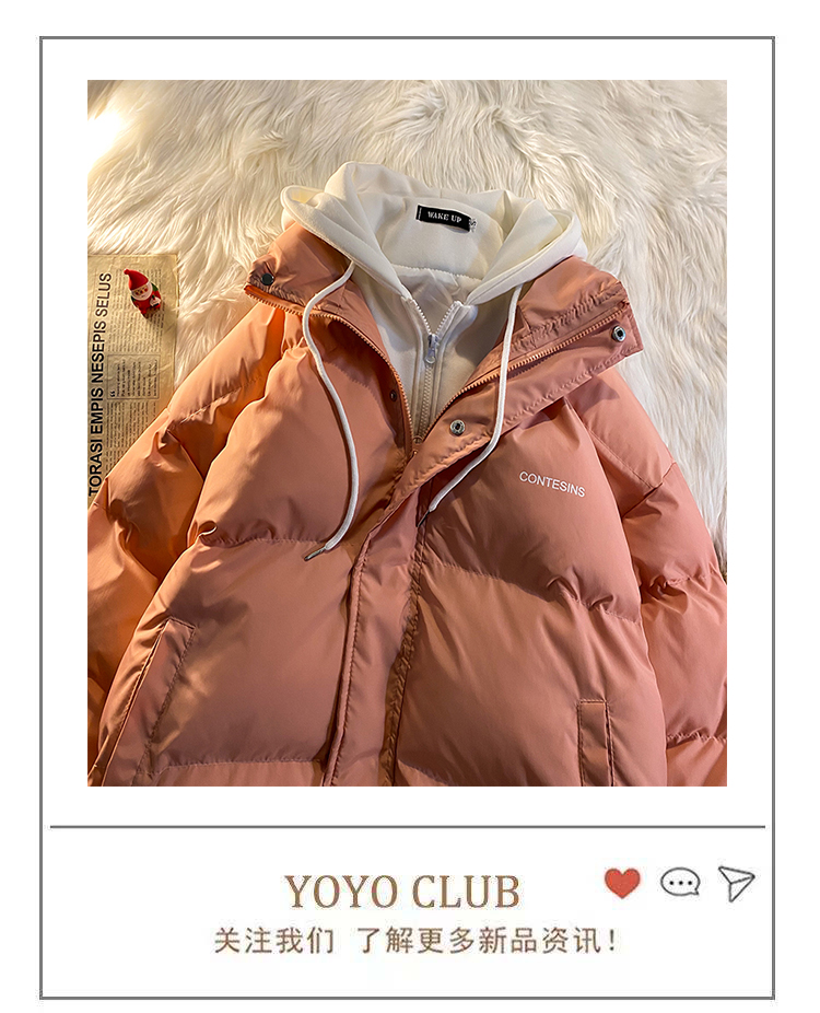 品牌折釦大碼假兩件羽絨棉服女冬季加厚麵包服棉衣連帽外套ins潮