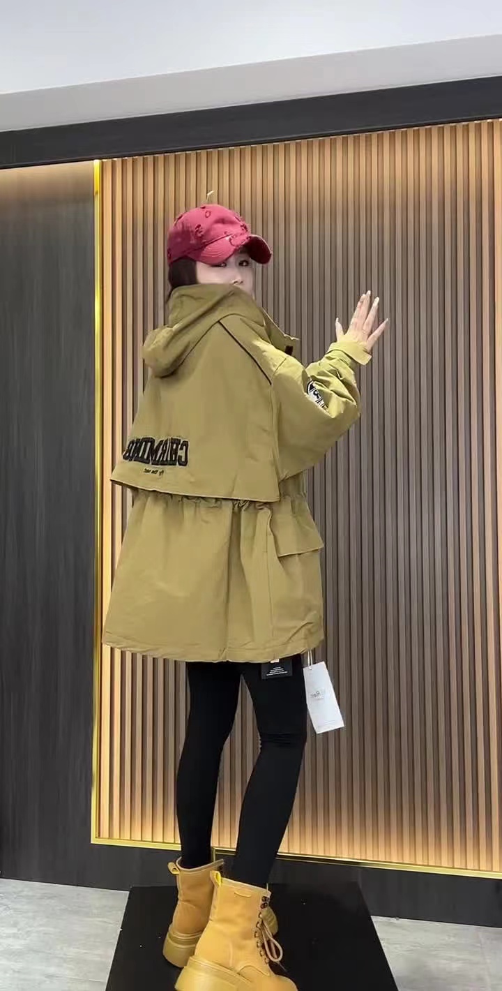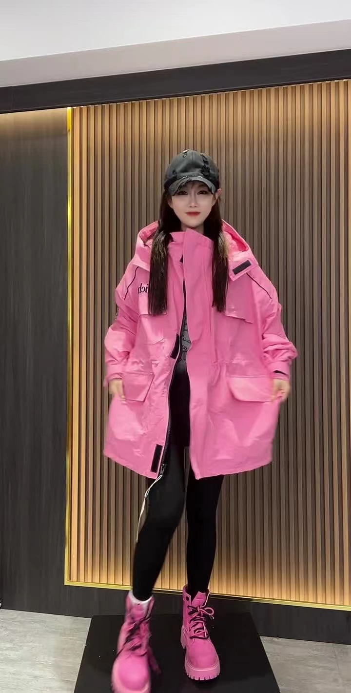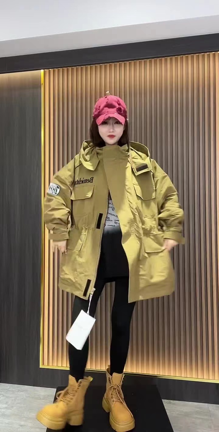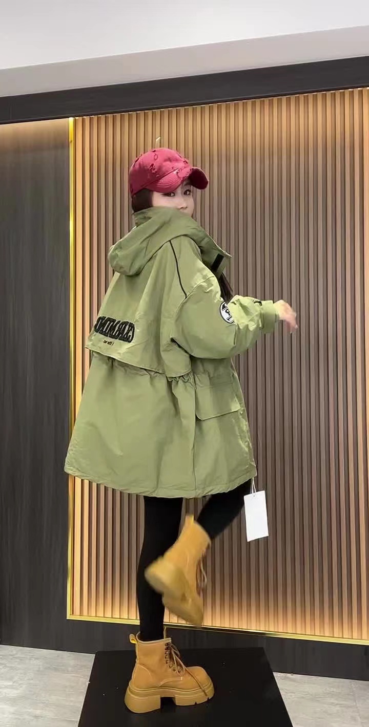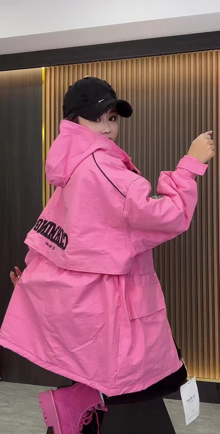 夾棉秋冬防風衣連帽重工刺綉大碼加肥收腰歐貨潮流新款中長款加厚