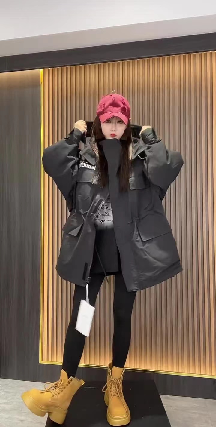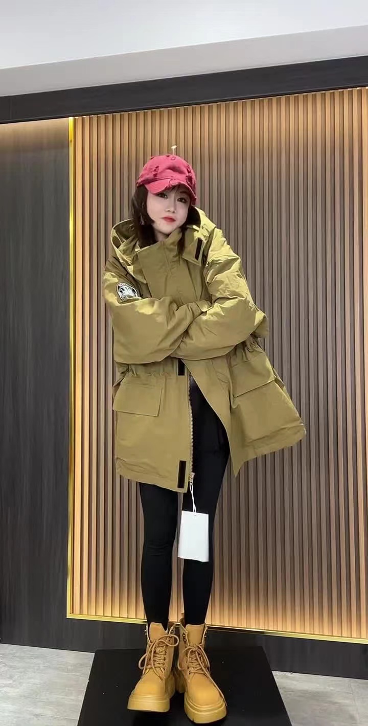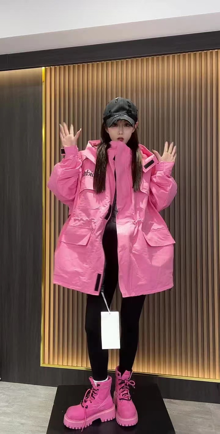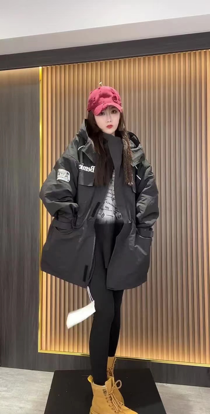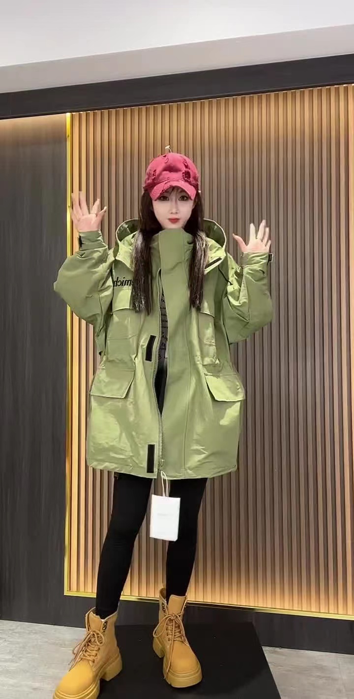 夾棉秋冬防風衣連帽重工刺綉大碼加肥收腰歐貨潮流新款中長款加厚
