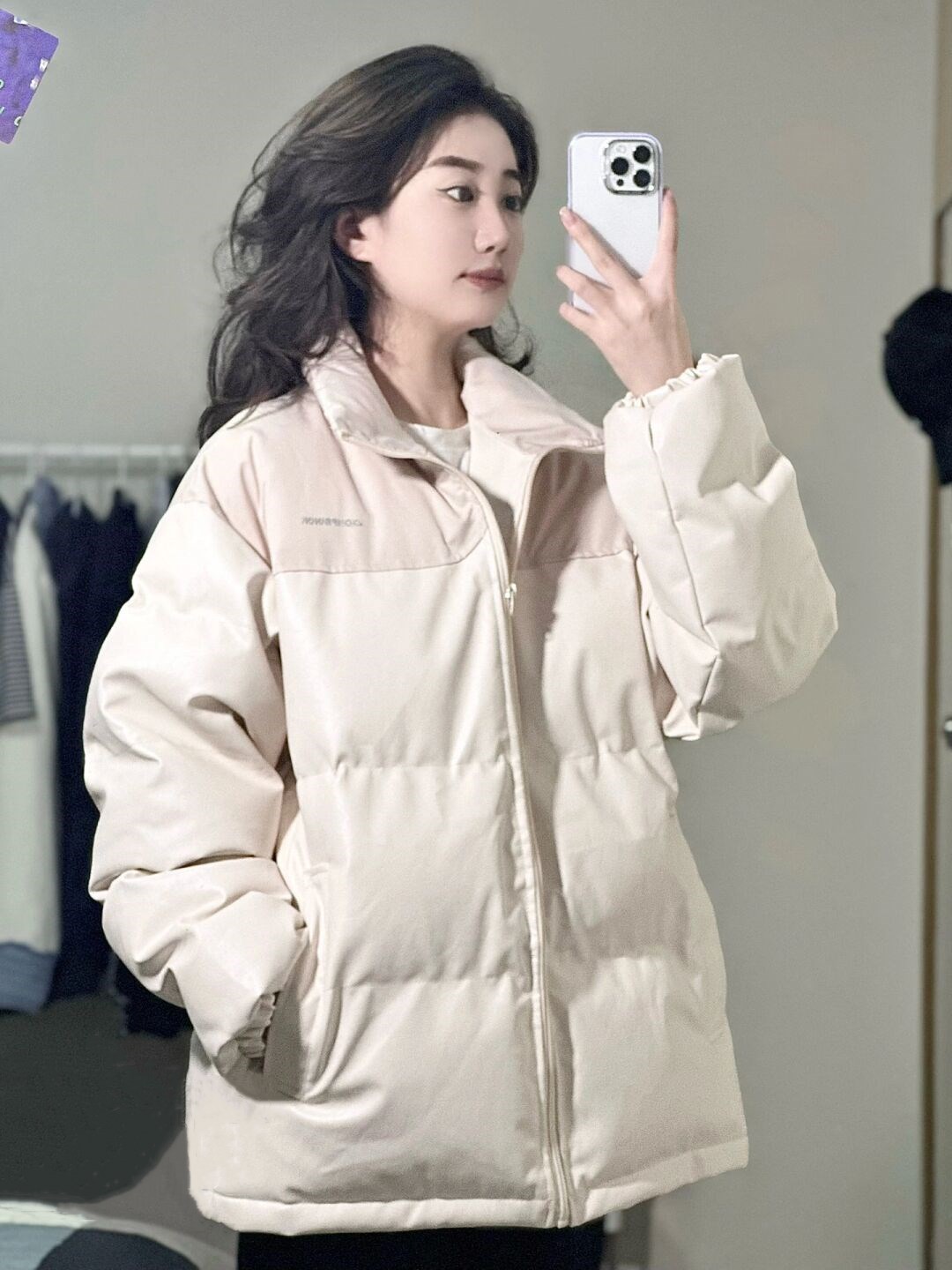 冬季pu皮羽絨棉服女2025新款寬松加厚麵包服韓版設計感棉衣外套潮