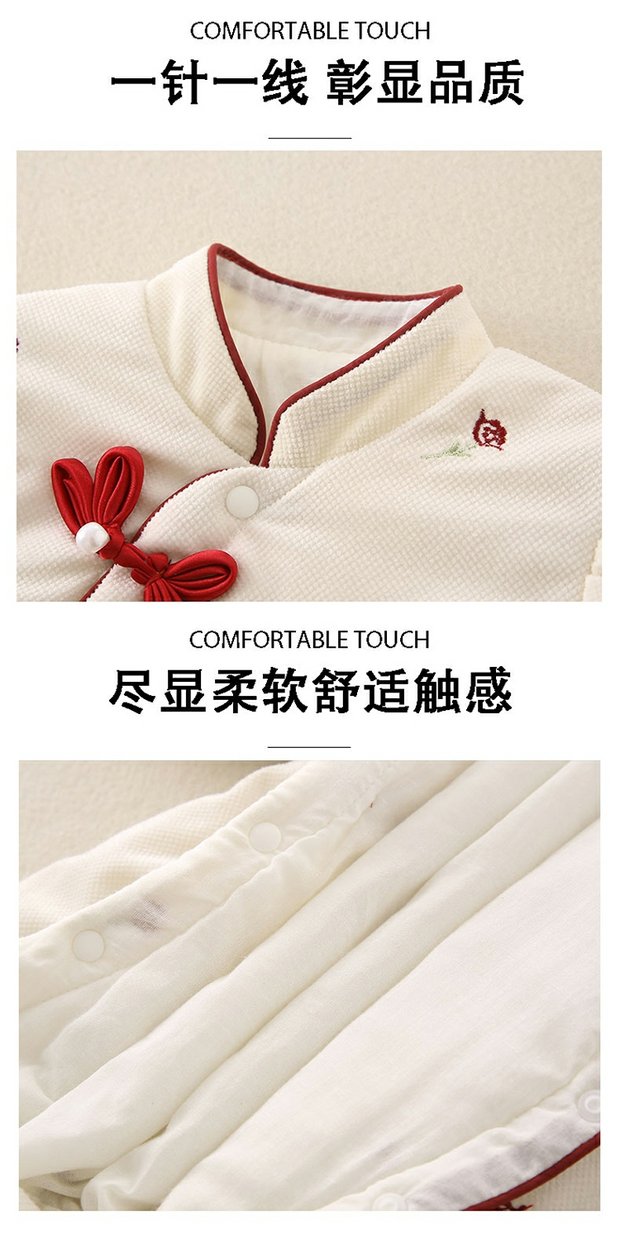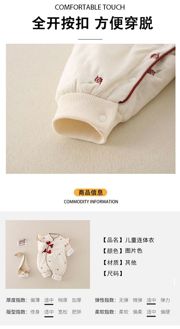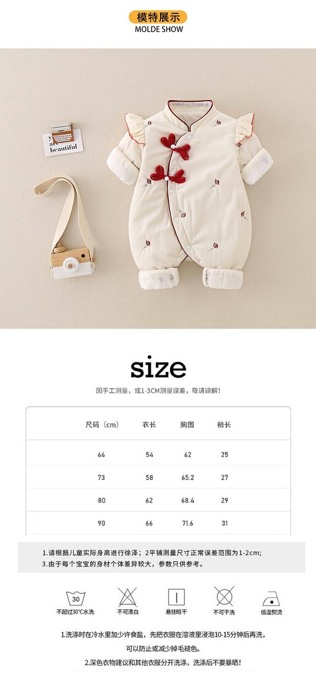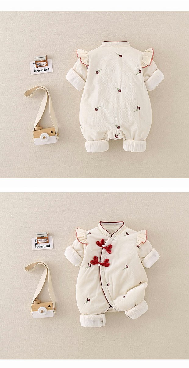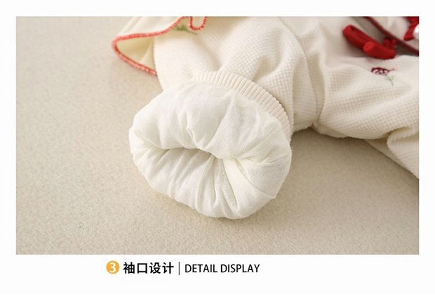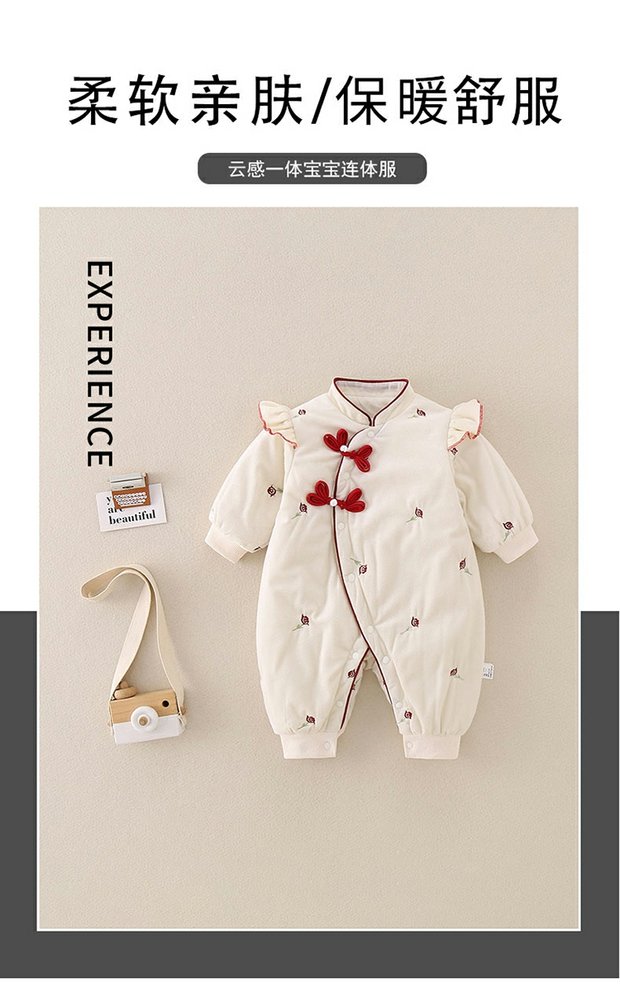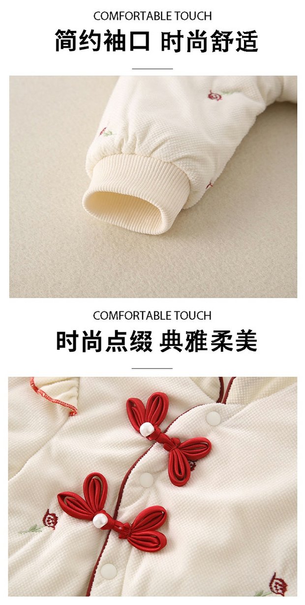 新生嬰兒衣服秋冬薄棉風連體衣0-1嵗女寶寶外出夾棉保暖爬服2