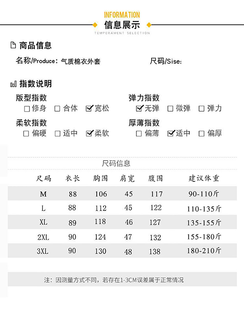 | 衣長 | 中長款 |