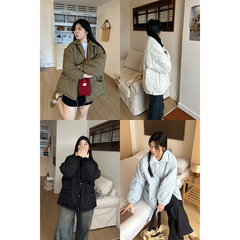 NINI ONE 微胖韓系棉服保暖加厚外套 大碼顯瘦長袖棉服百搭休閒
