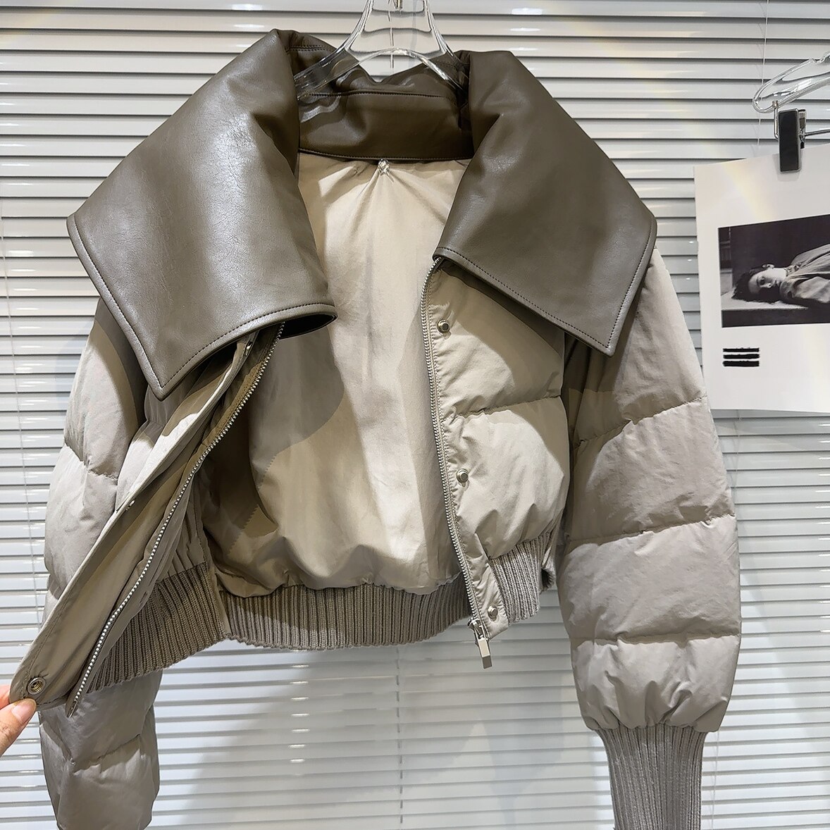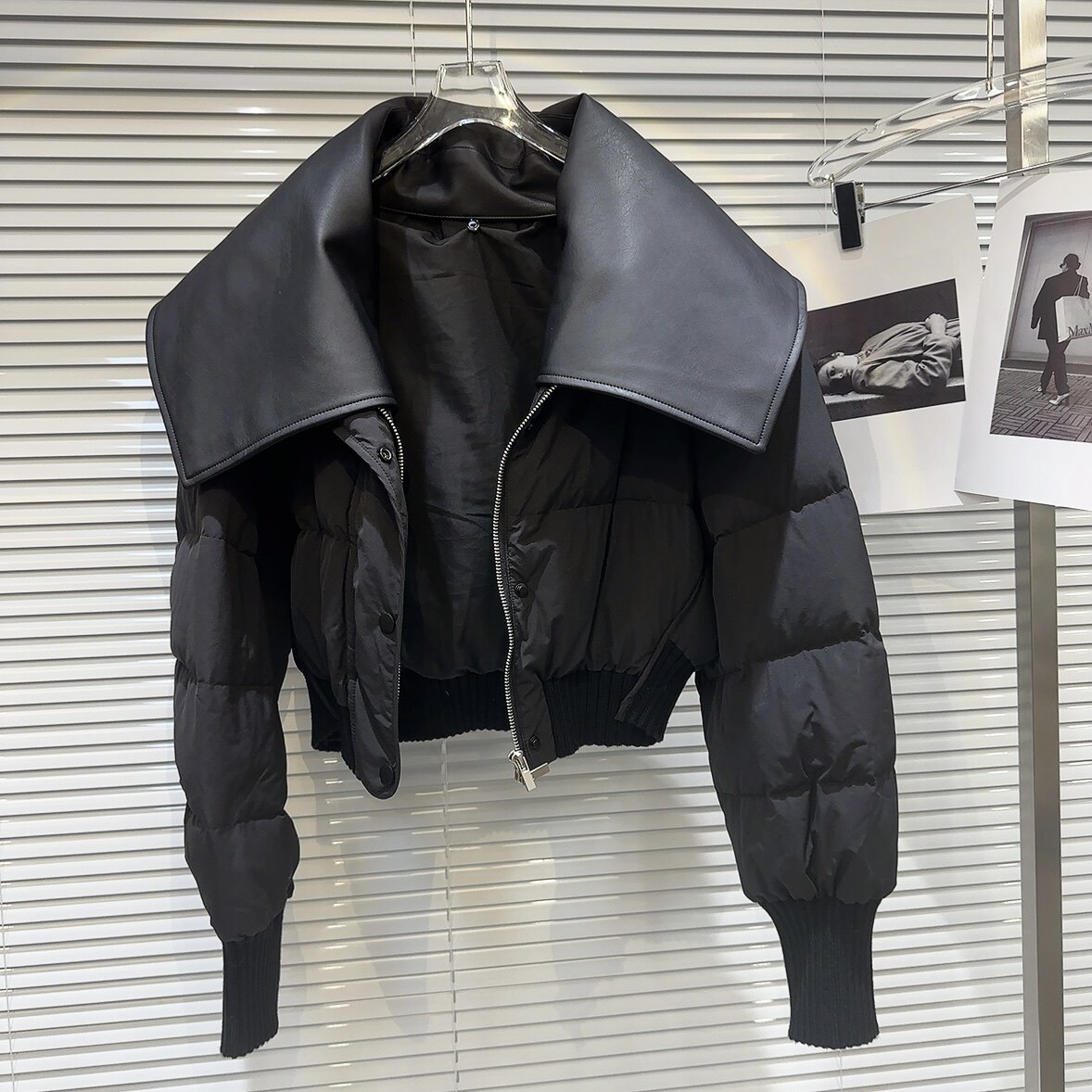 網紅同款2025冬季新款小衆街頭PU皮翻領設計辣妹保暖棉服棉衣外套