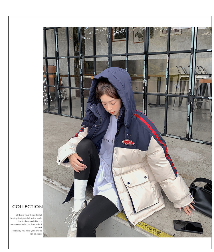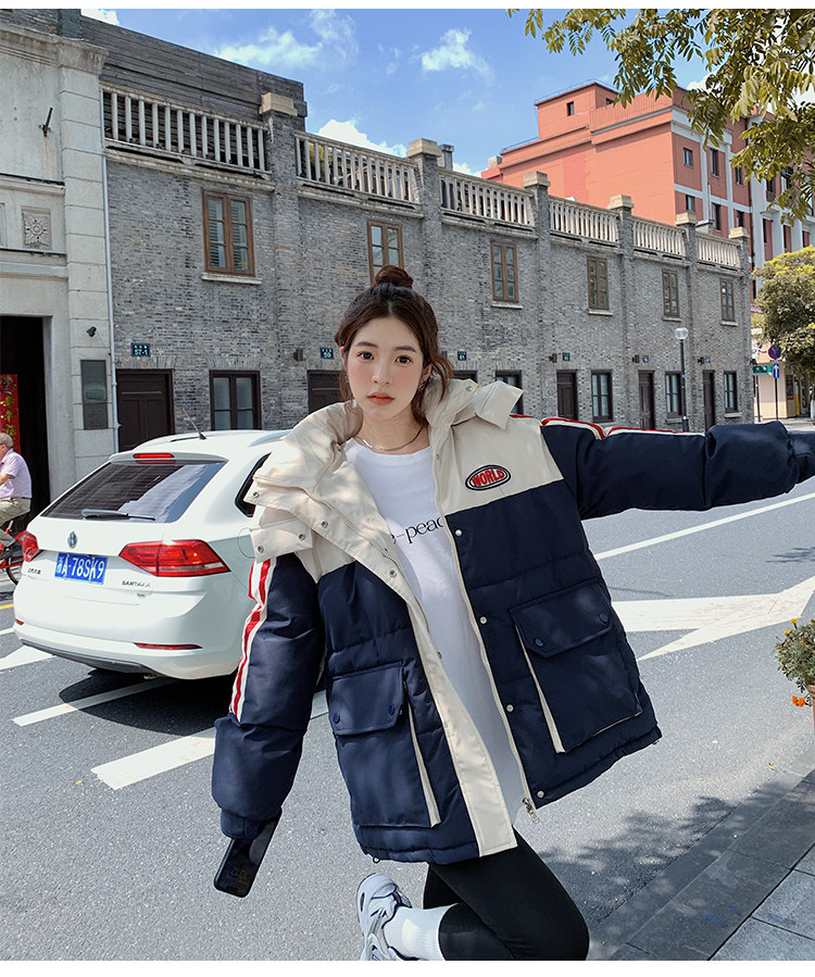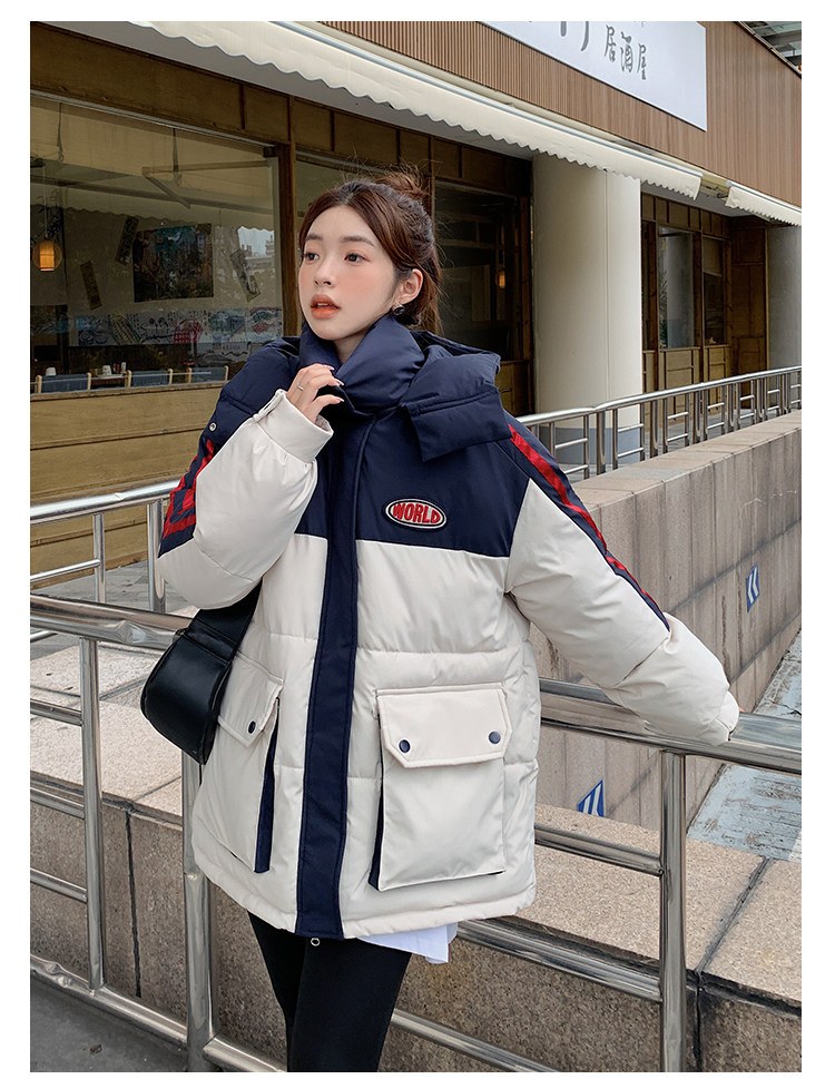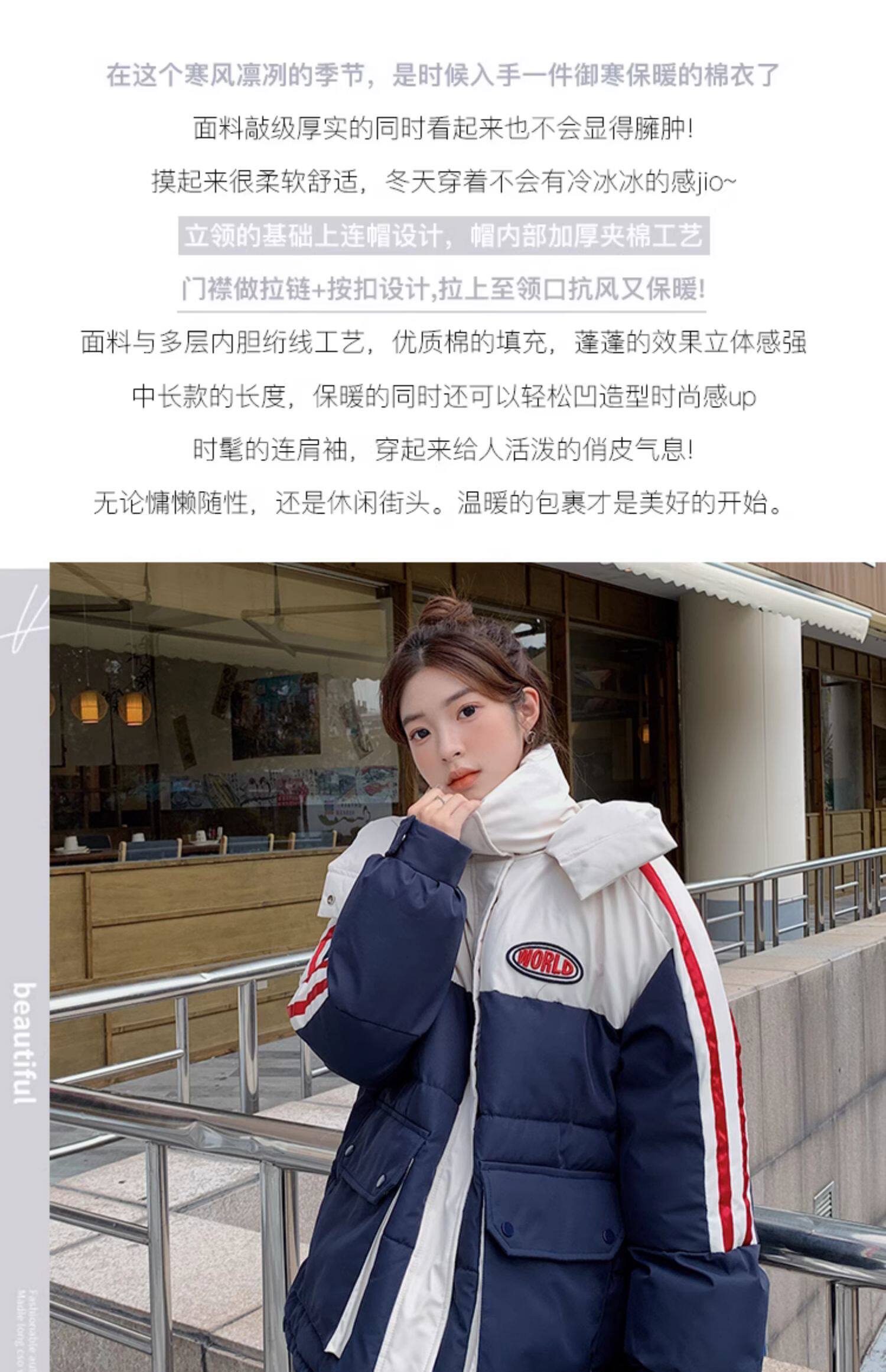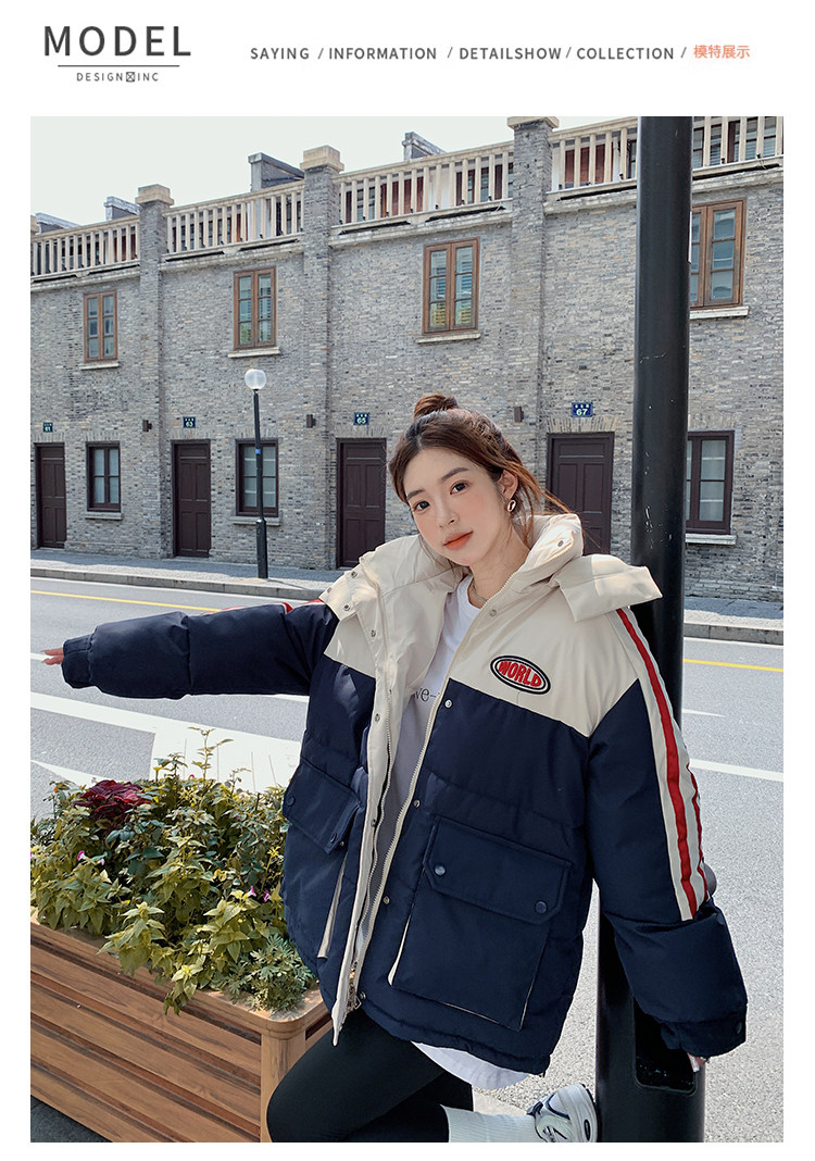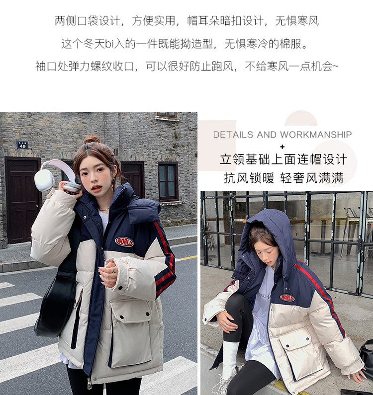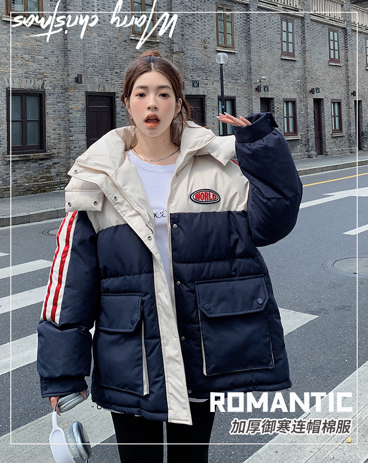 棉服女2025年冬季新款工裝拼色麵包服寬松學院風情侶加厚保暖外套