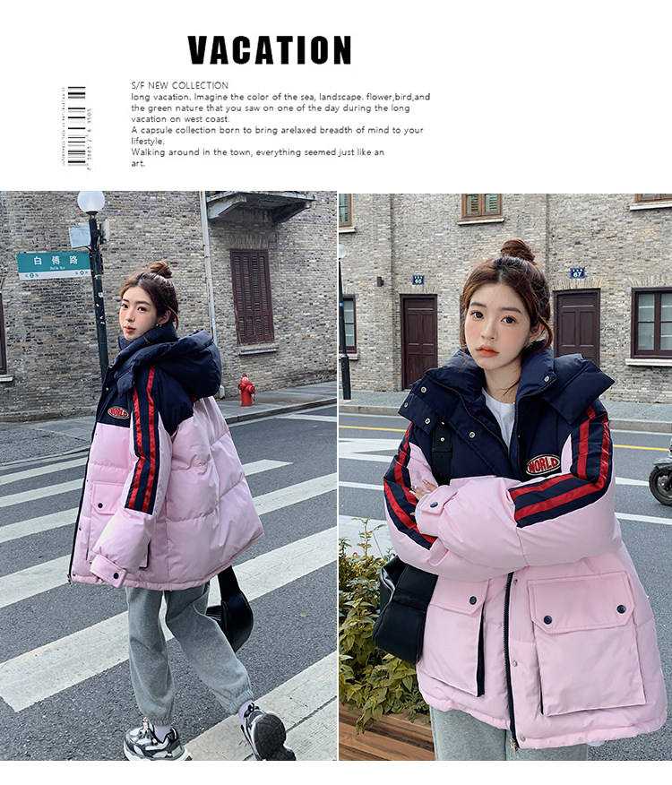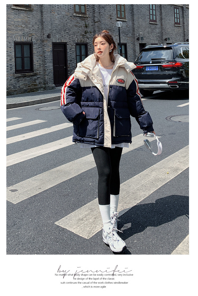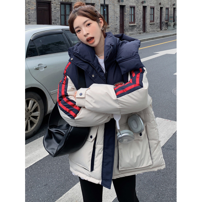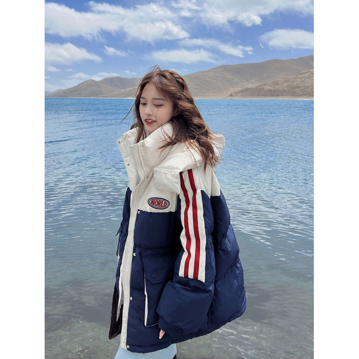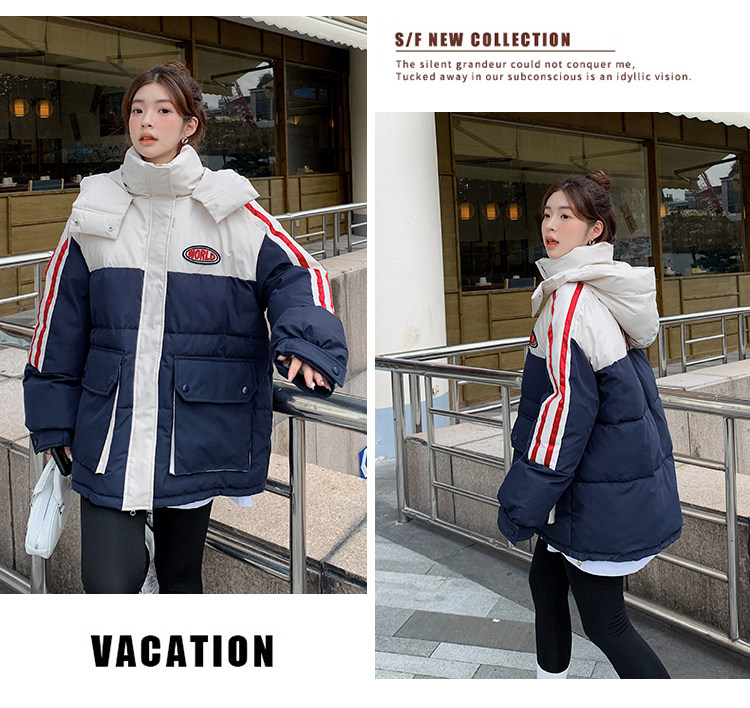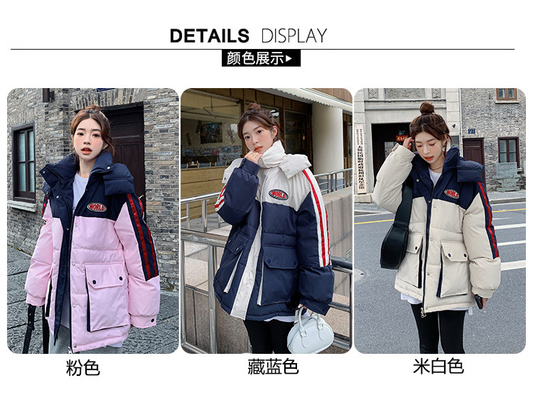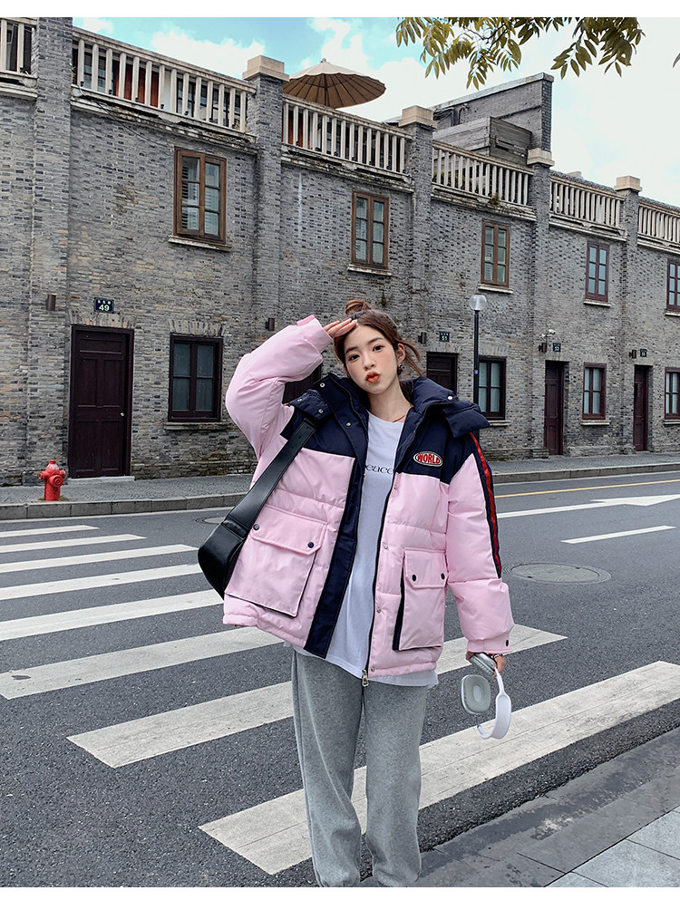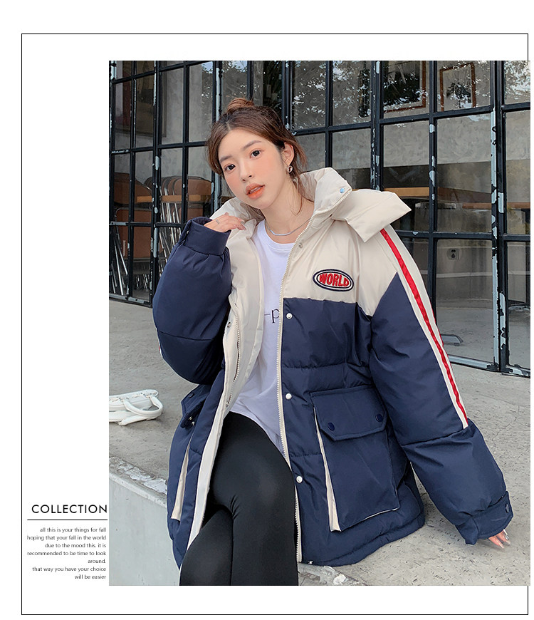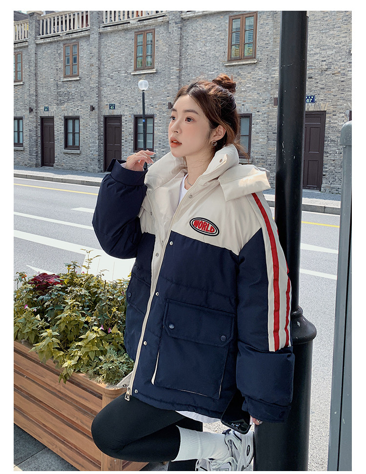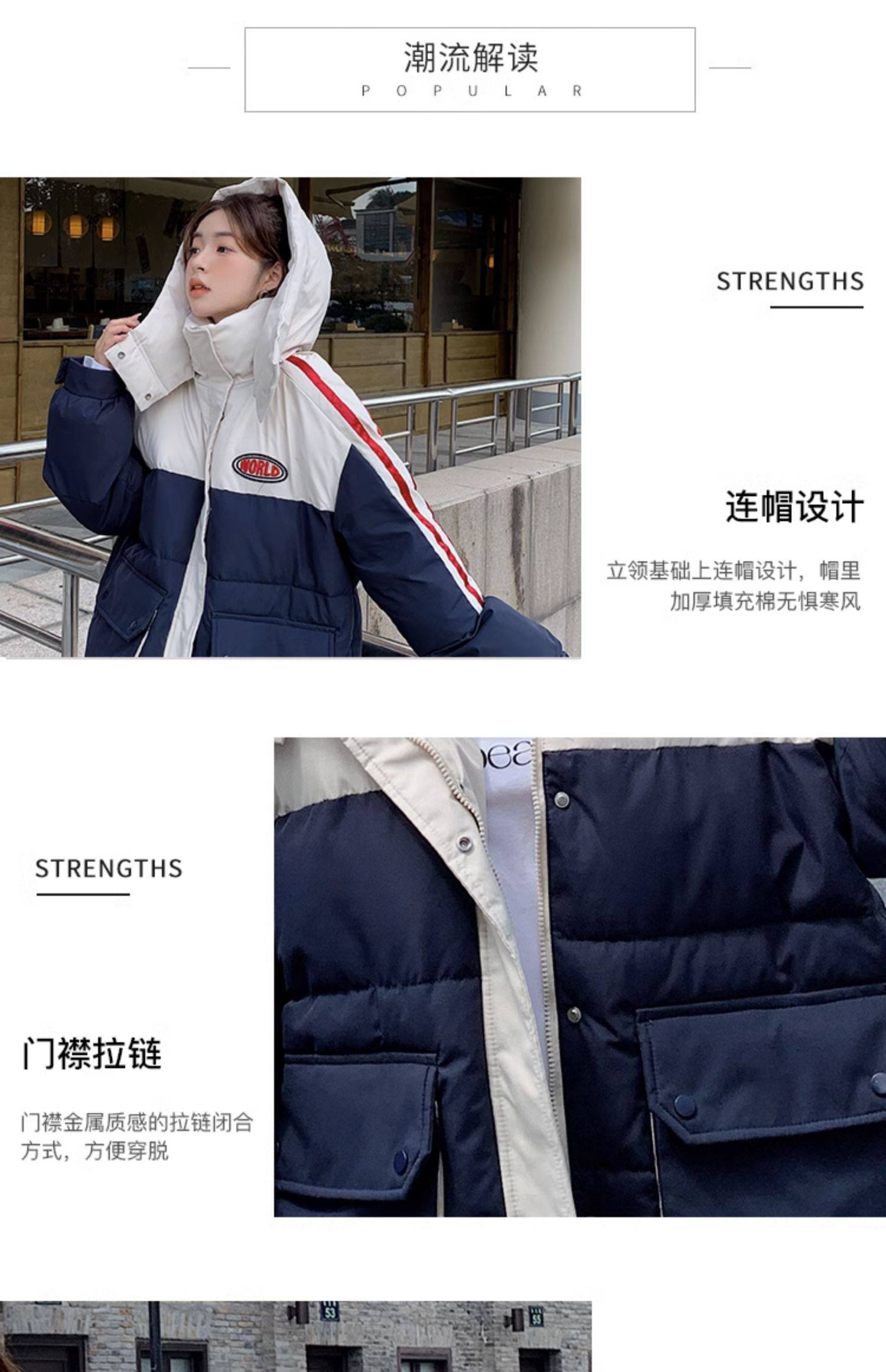 棉服女2025年冬季新款工裝拼色麵包服寬松學院風情侶加厚保暖外套