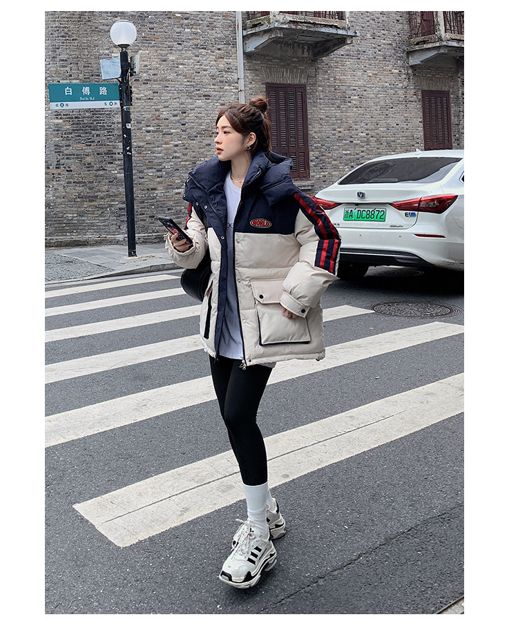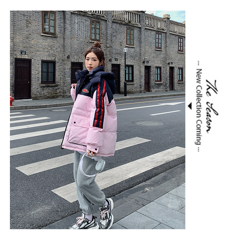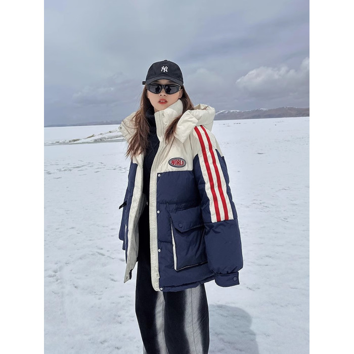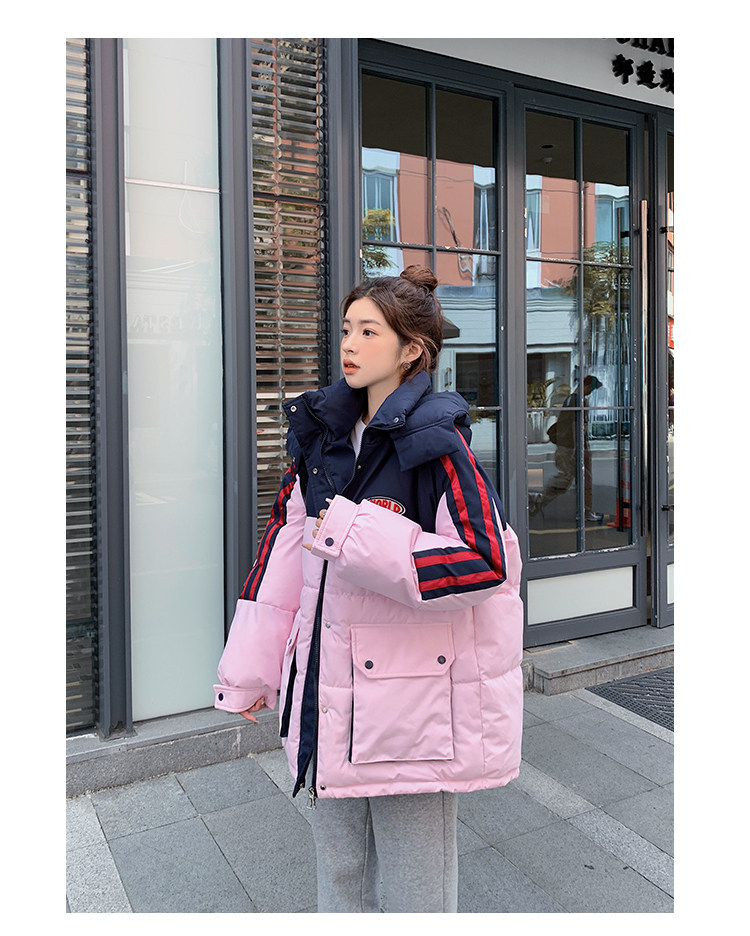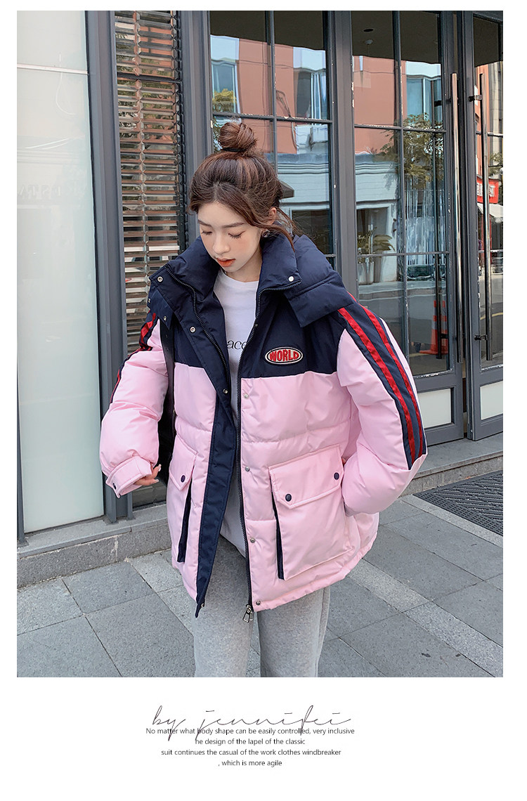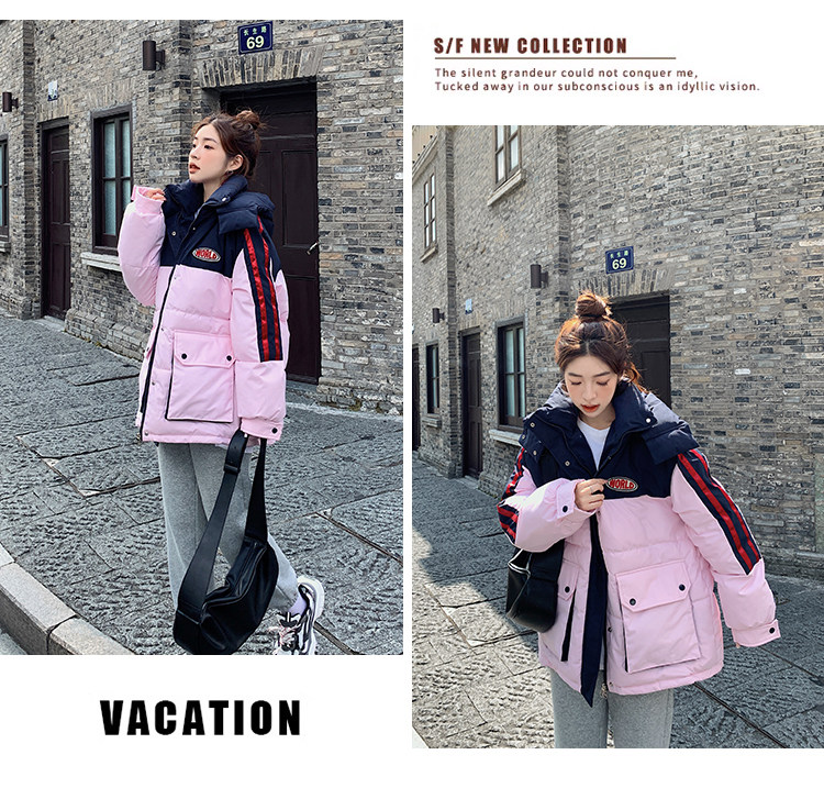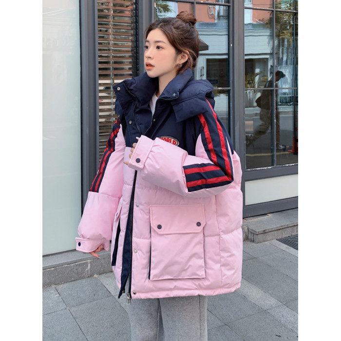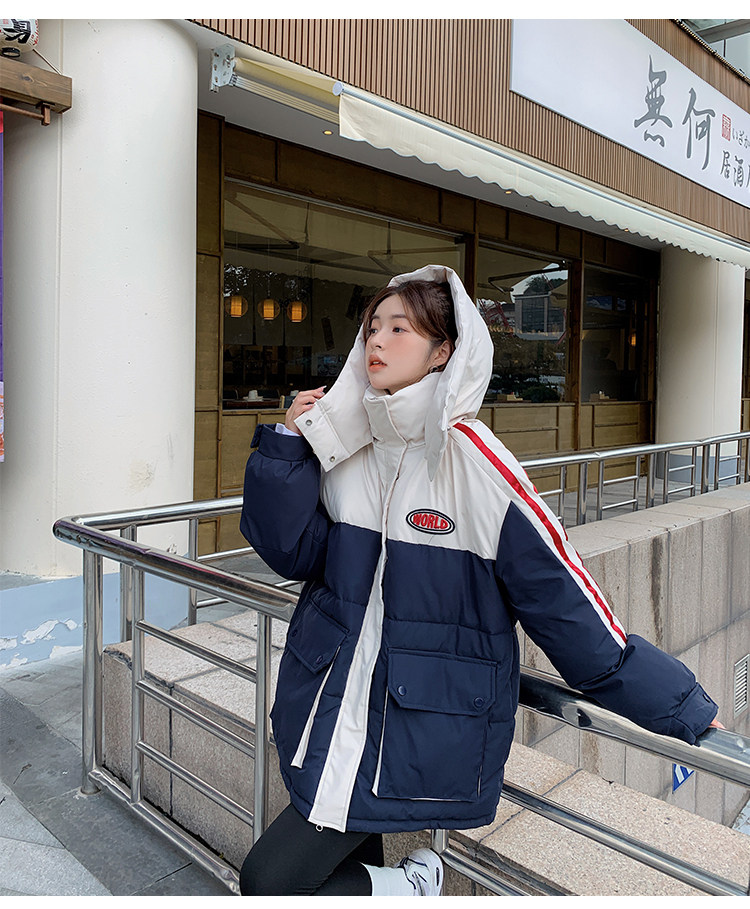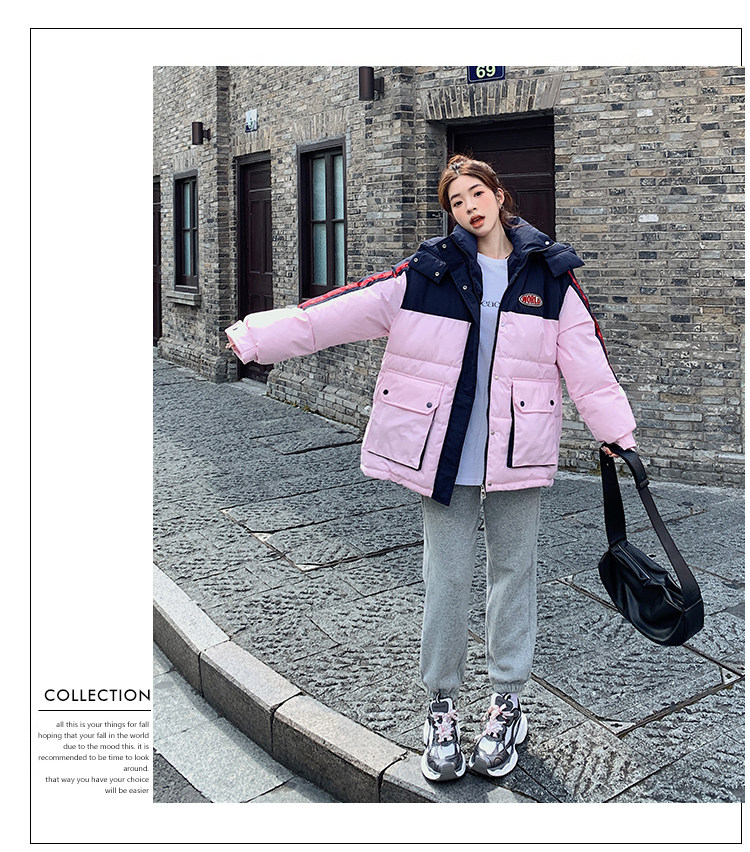 棉服女2025年冬季新款工裝拼色麵包服寬松學院風情侶加厚保暖外套