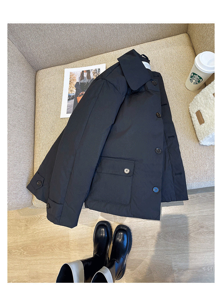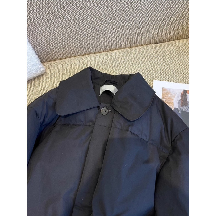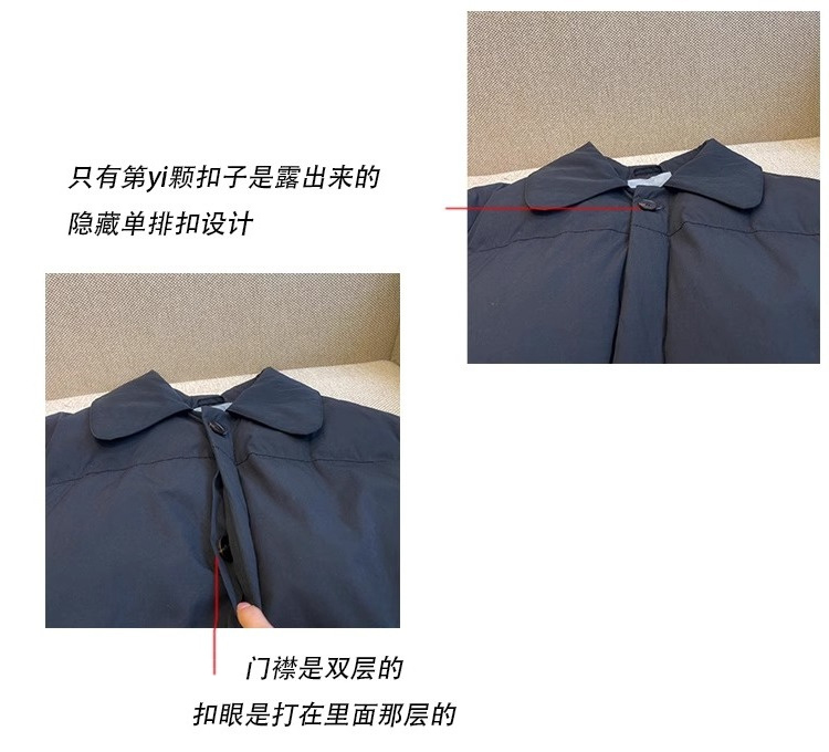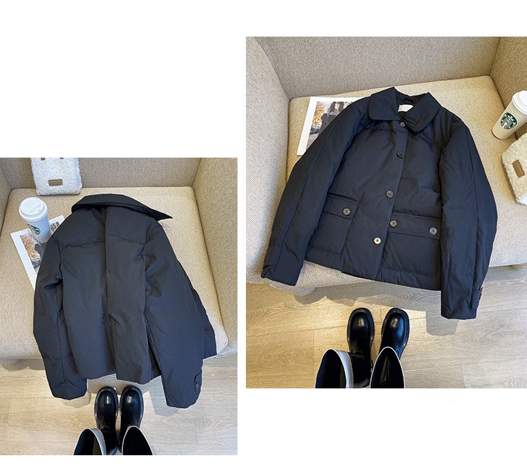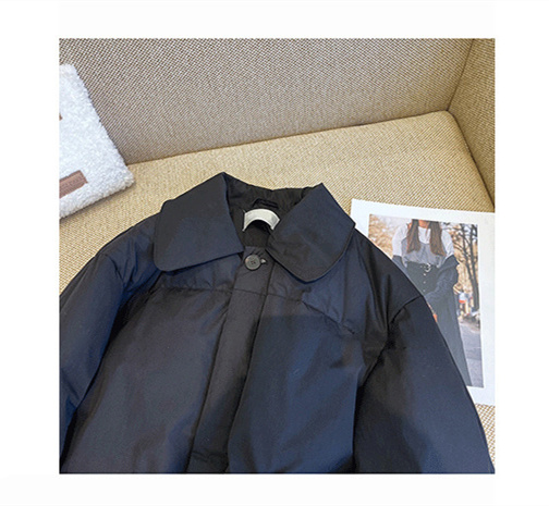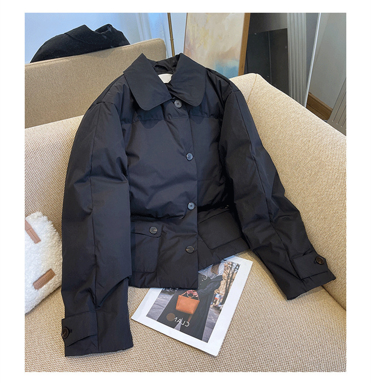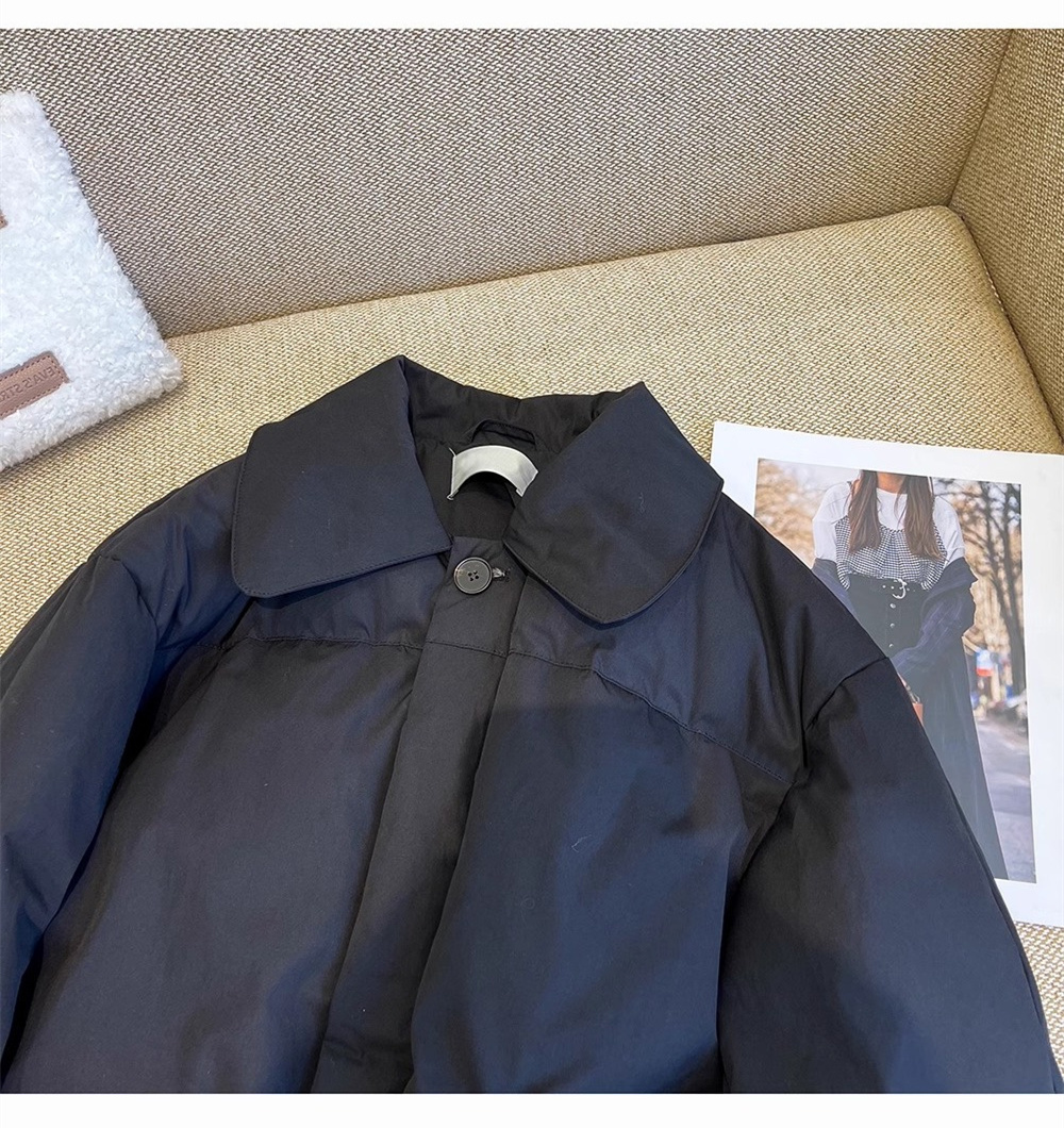 韓版簡約高級感純色翻領輕薄羽絨棉服女秋冬寬松百搭保暖棉衣外套