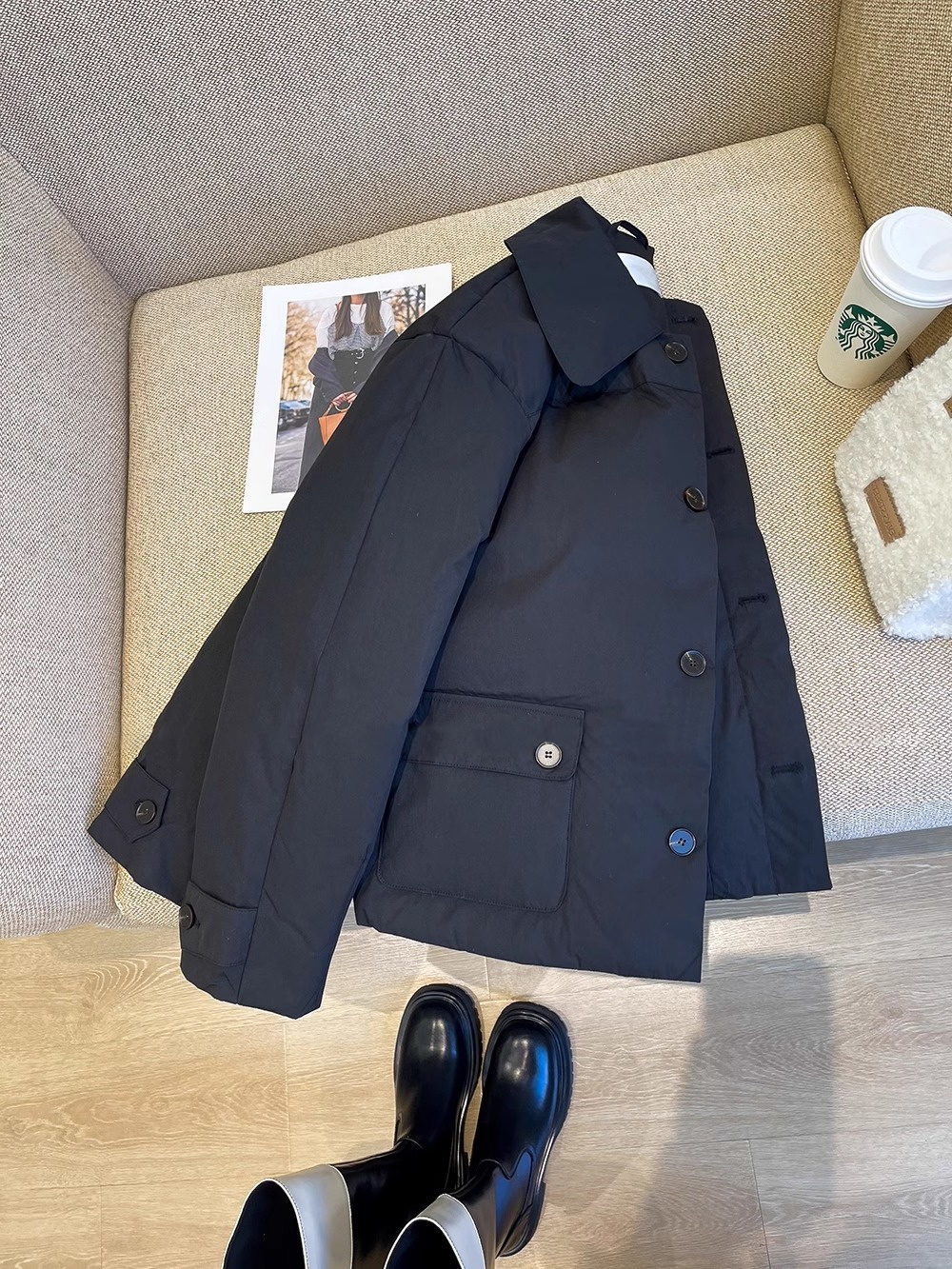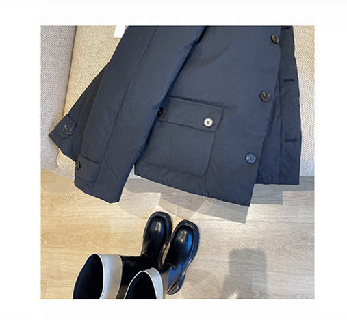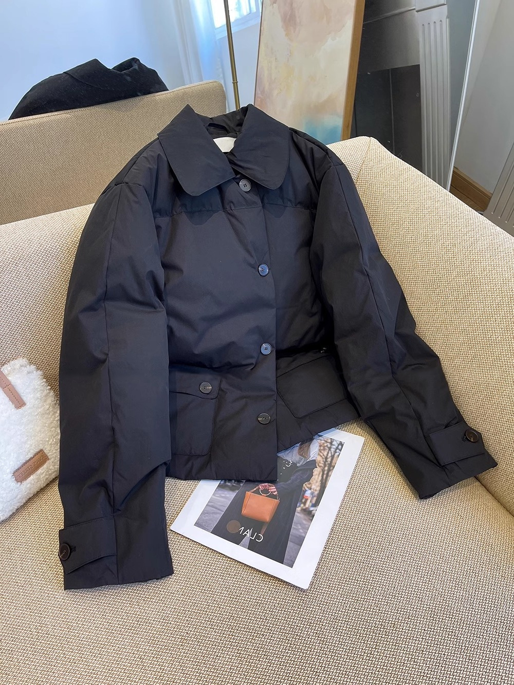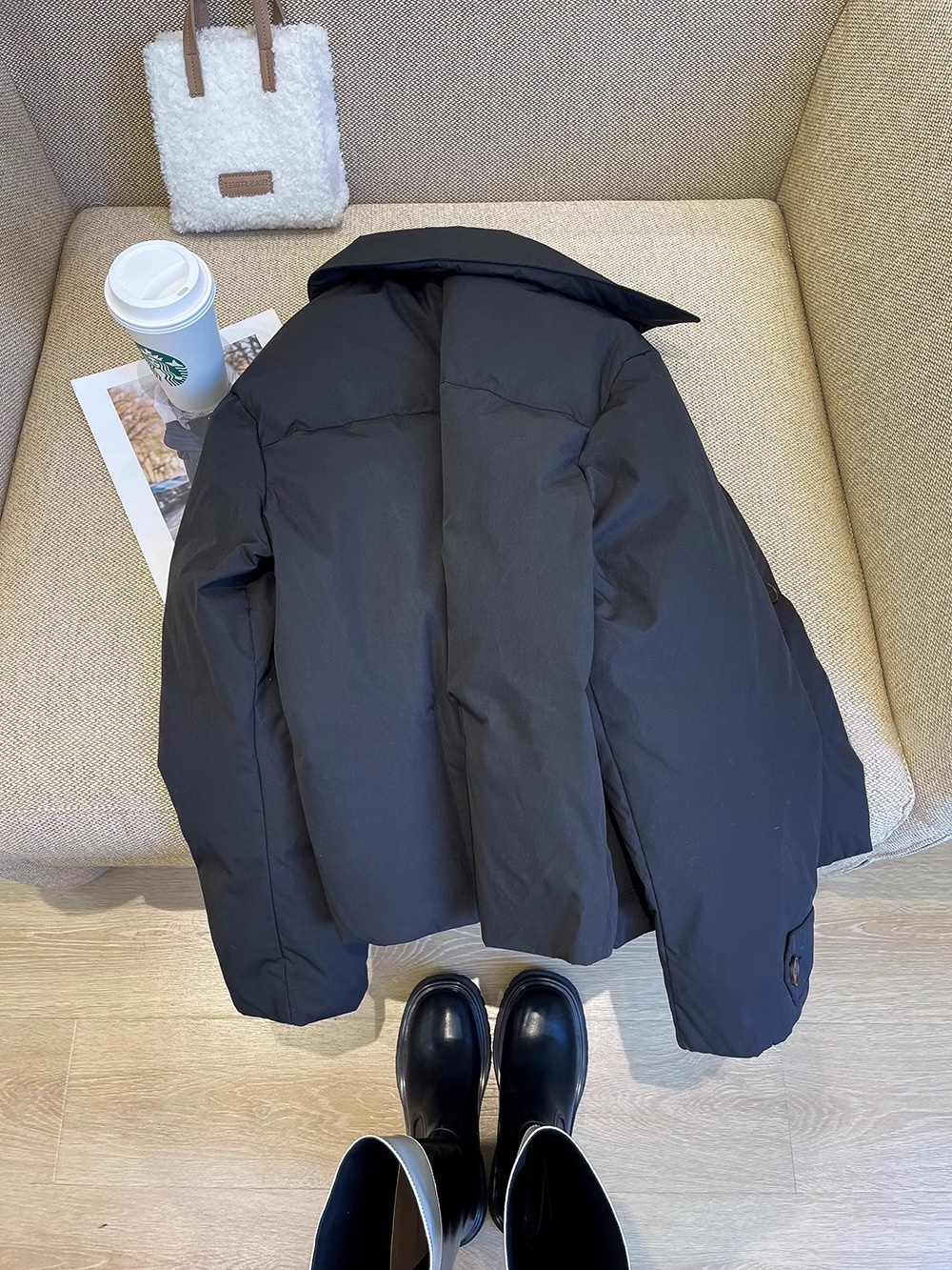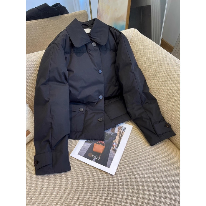 韓版簡約高級感純色翻領輕薄羽絨棉服女秋冬寬松百搭保暖棉衣外套