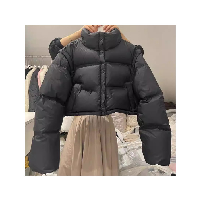 韓國東大門新款白色棉服外套女春秋短款棉襖小衆加厚棉衣馬甲上衣