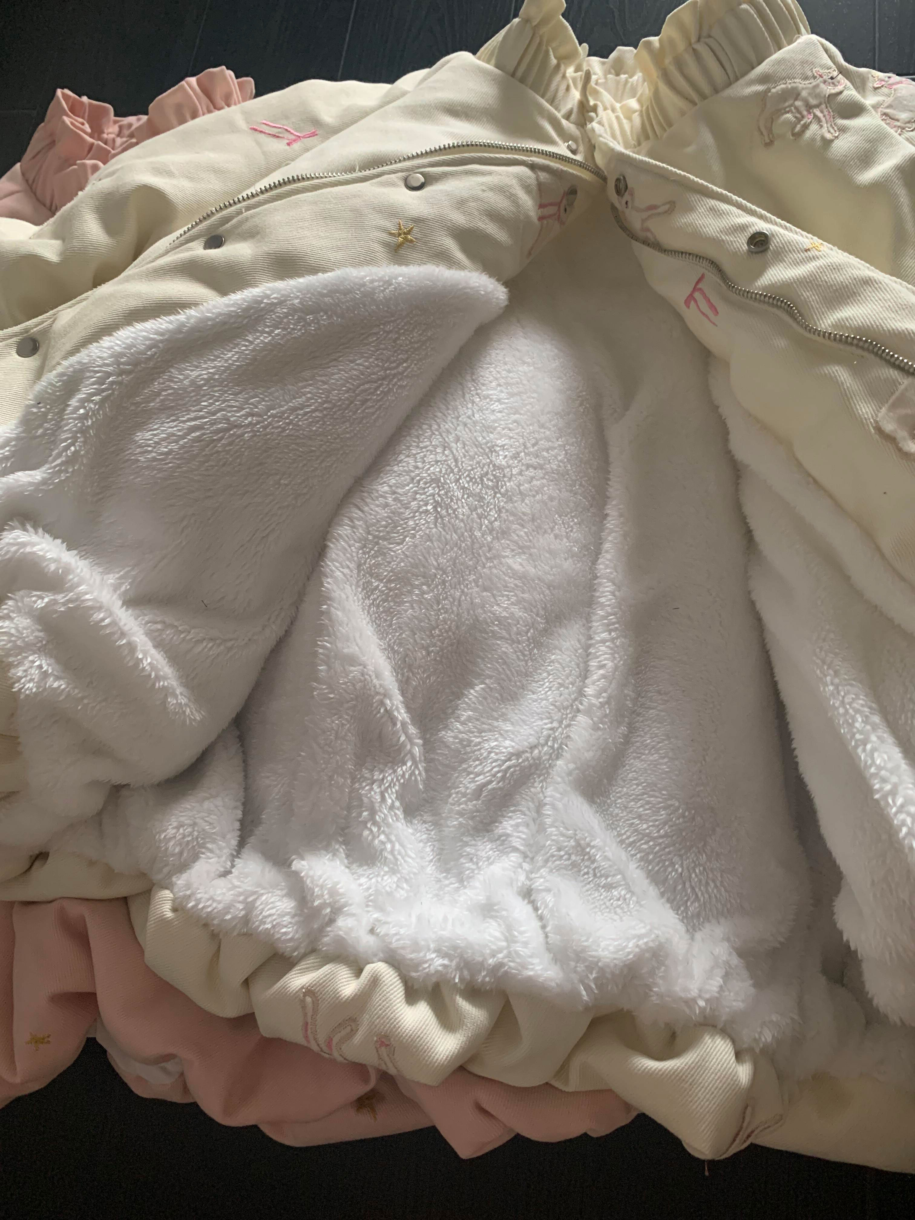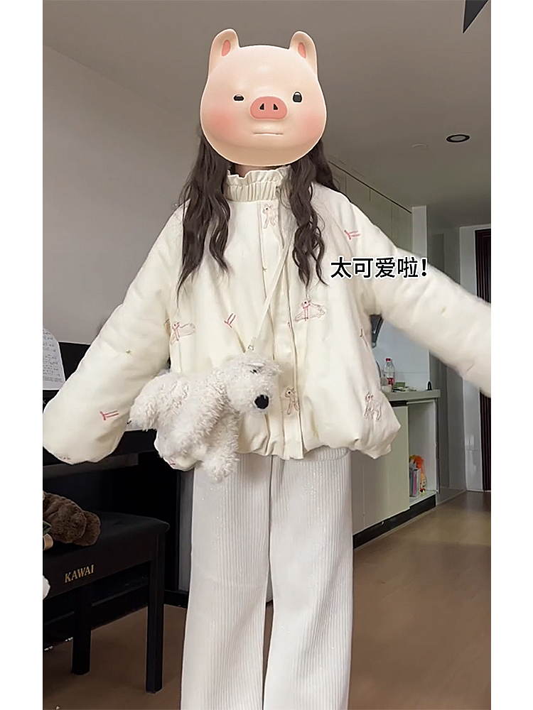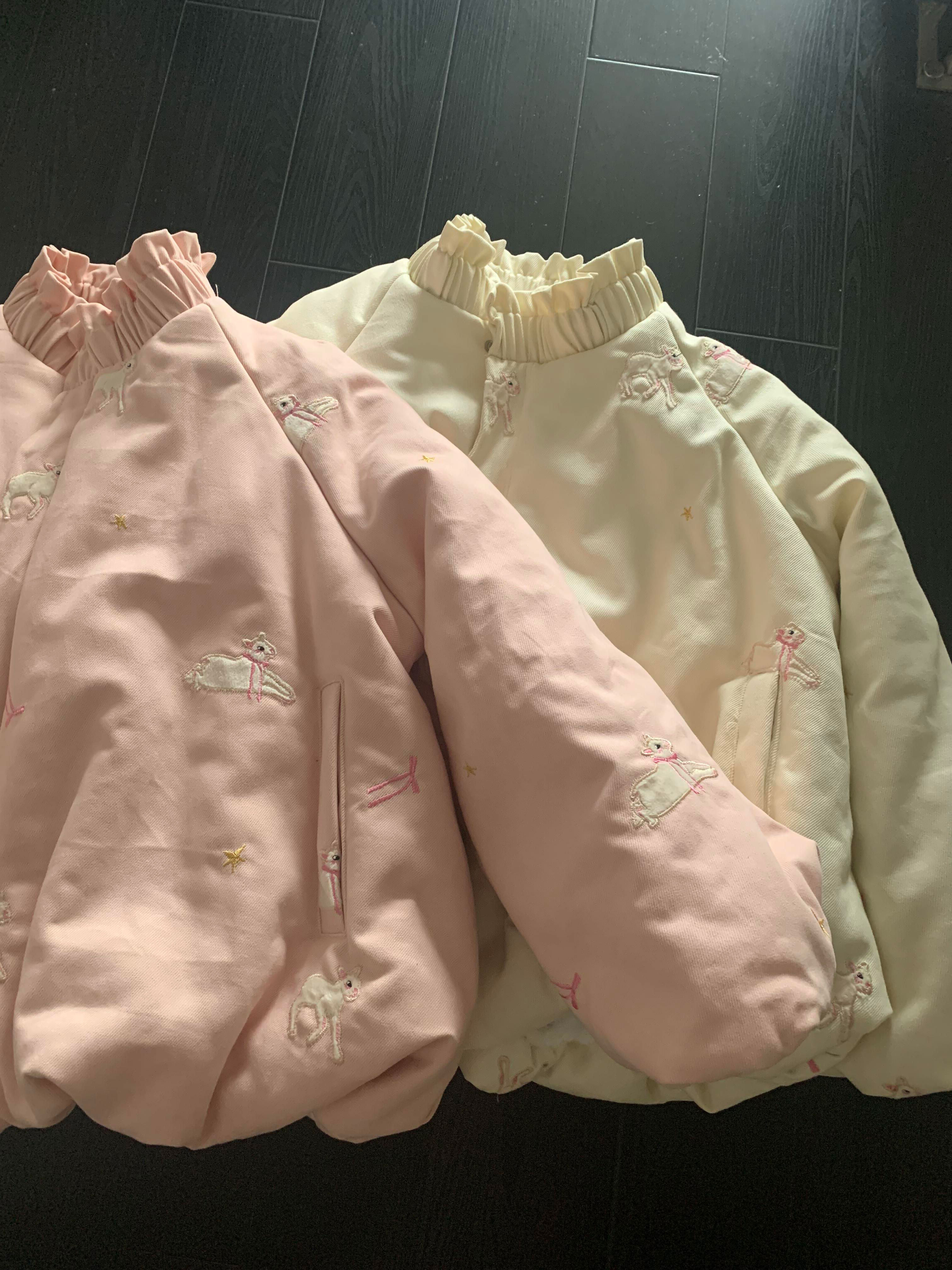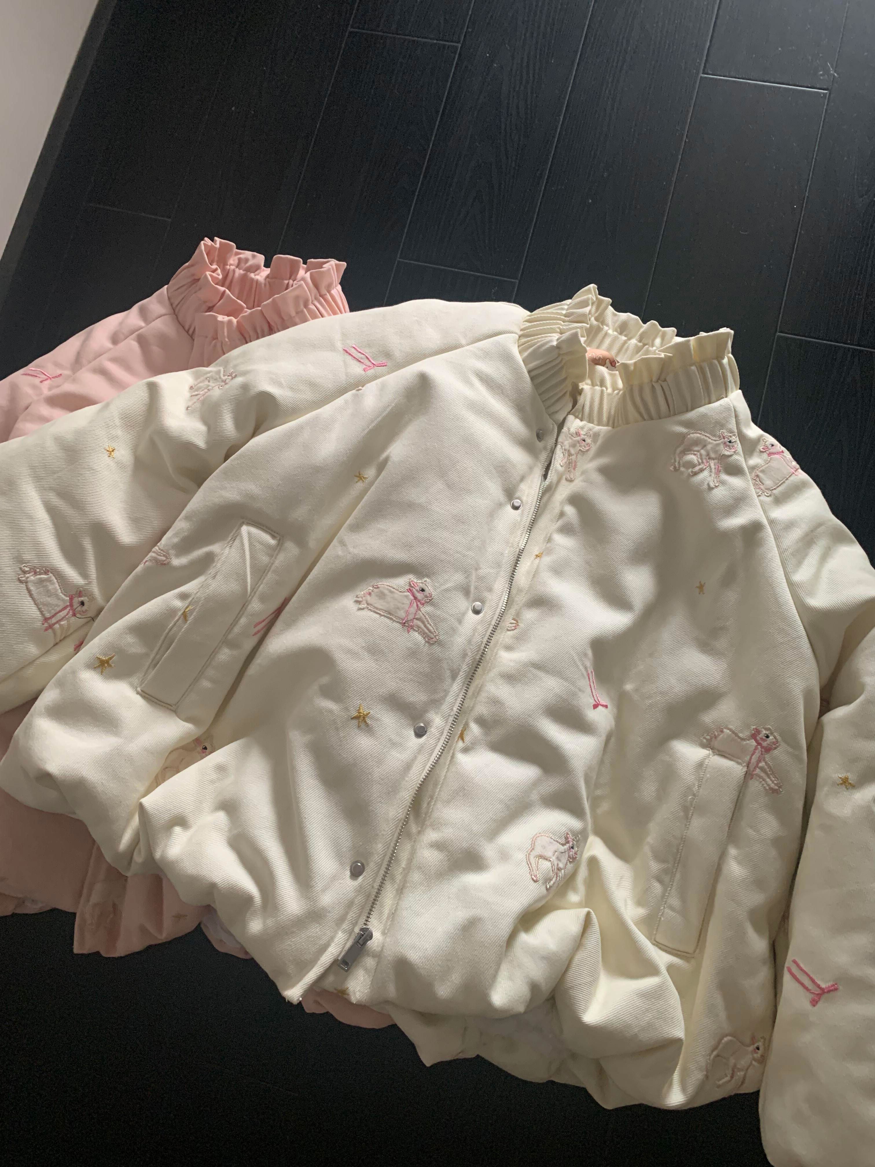刺綉小羊棉服女外套秋冬季小個子立領寬松甜美學院風加絨加厚棉襖