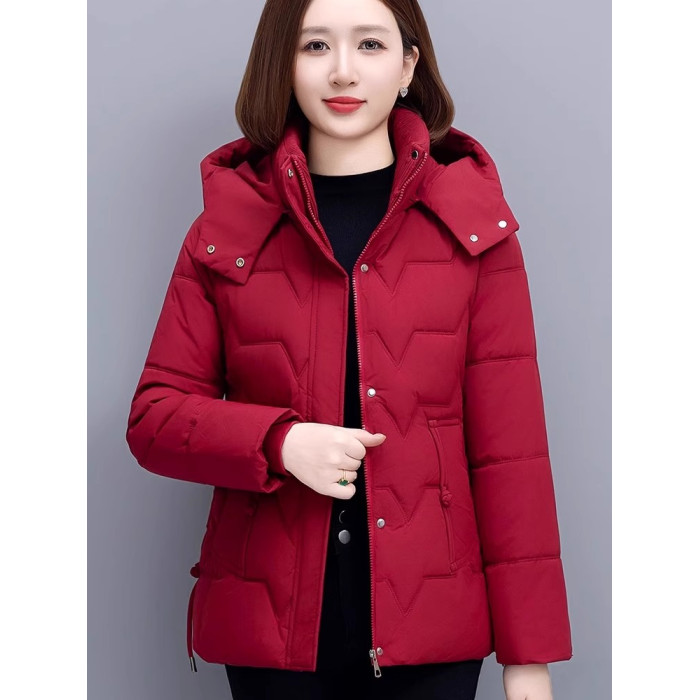中老年媽媽冬裝2025新款羽絨棉服短款加厚可拆帽媽媽裝小個子棉襖