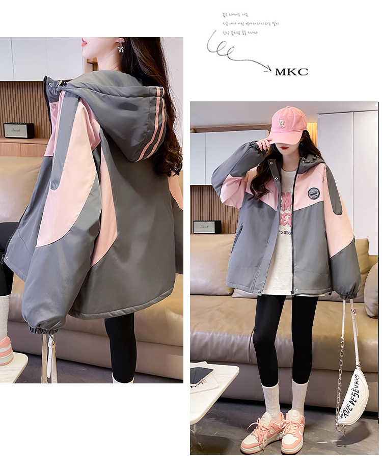夾棉加厚沖鋒衣外套少女秋冬2025新款初高中學生小衆潮牌休閒棉服