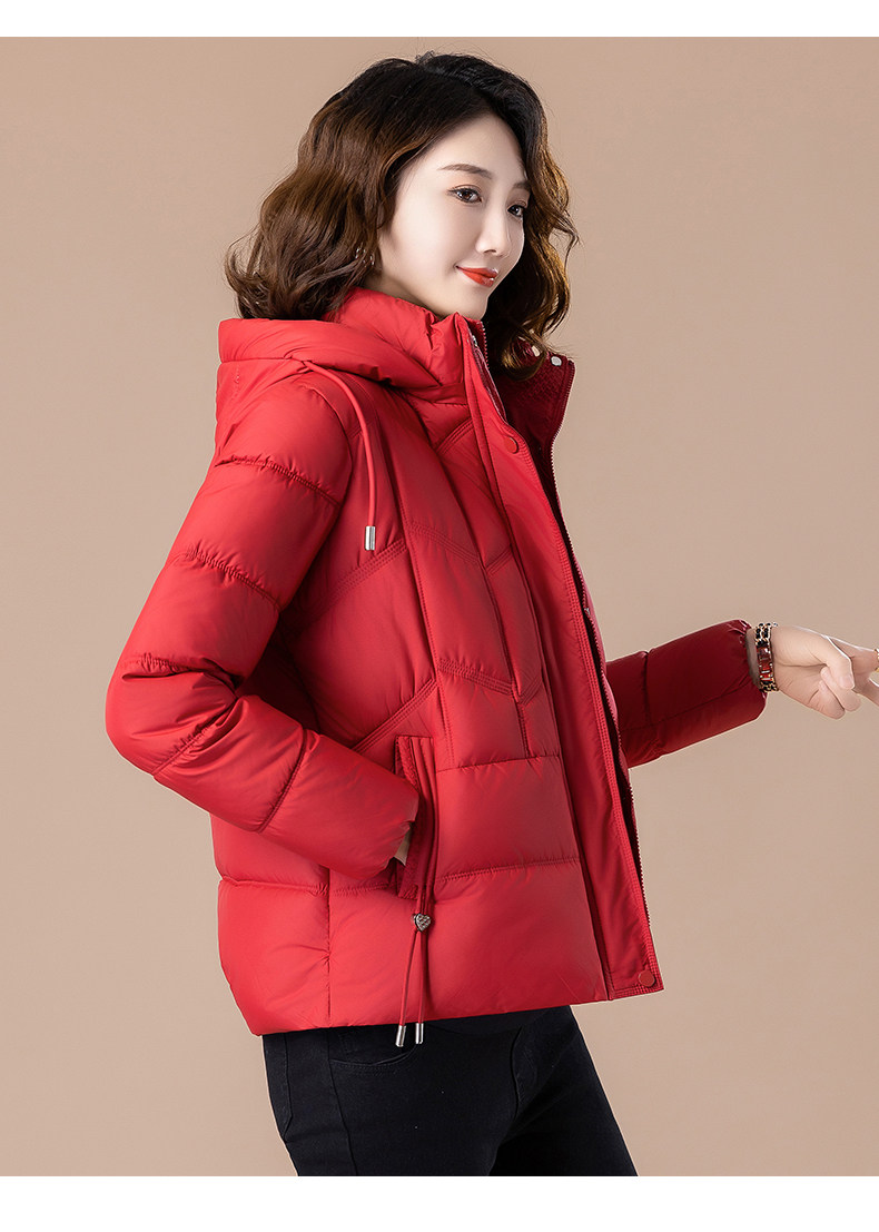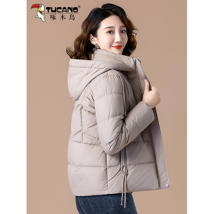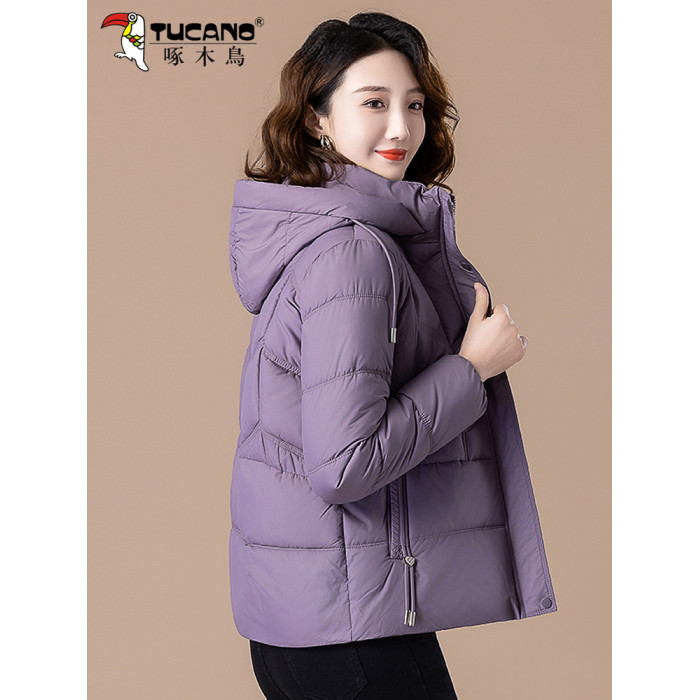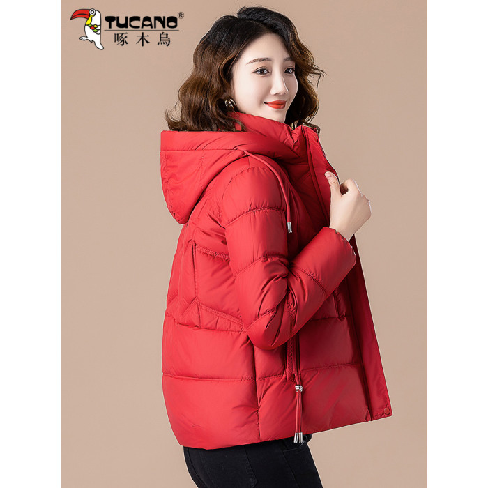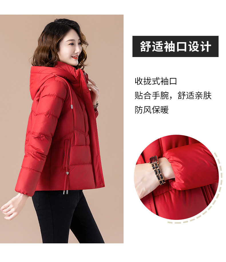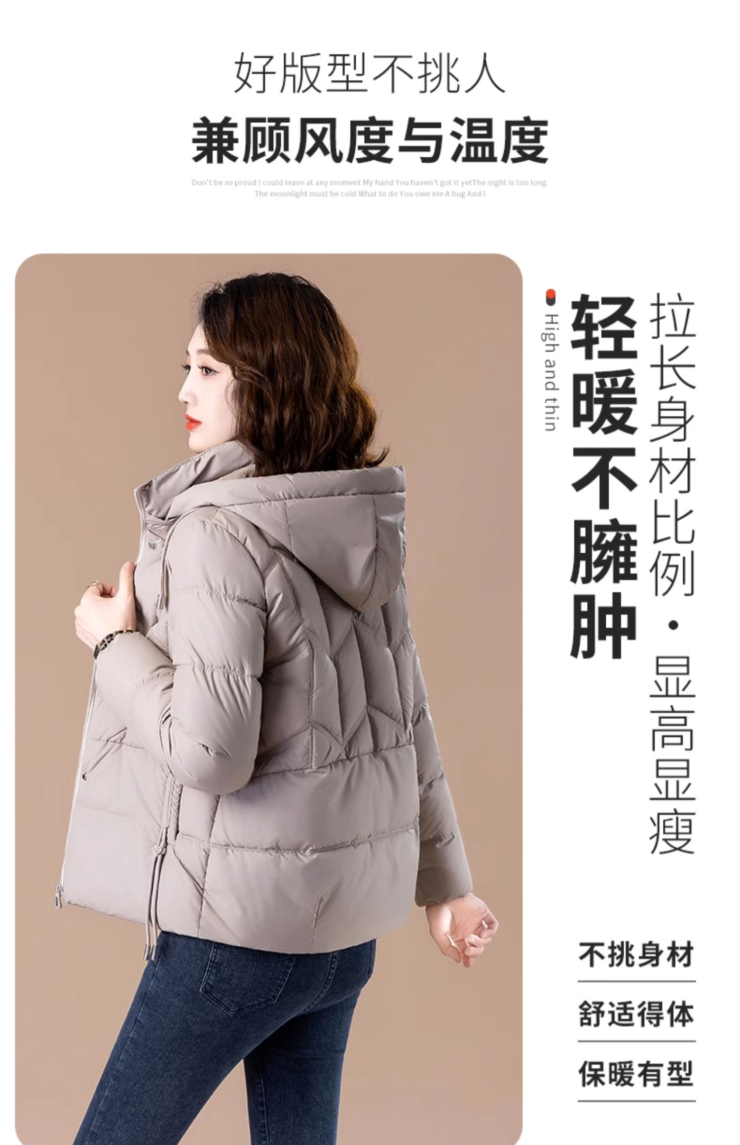 啄木鳥連帽短款棉衣女冬季2025新款加厚保暖中年媽媽羽絨棉服外套