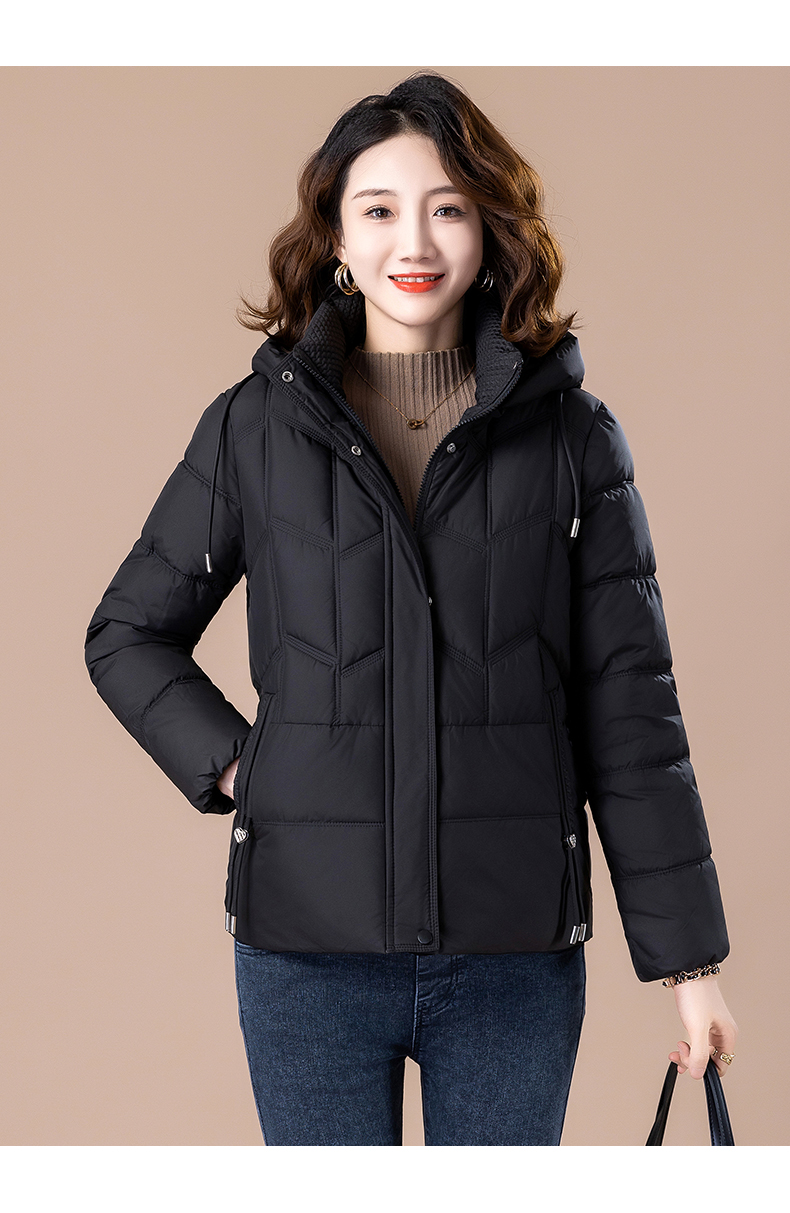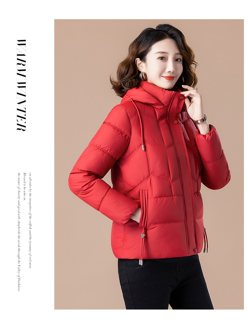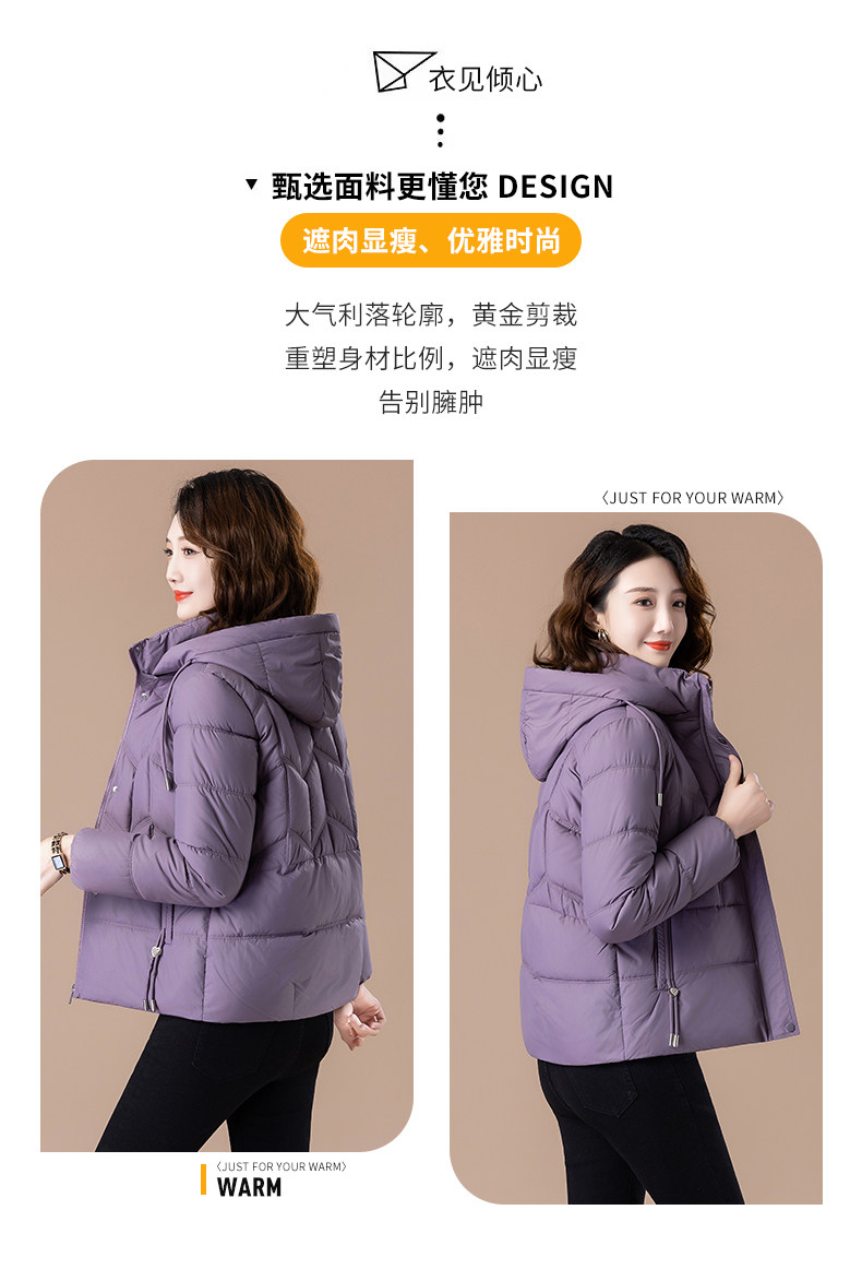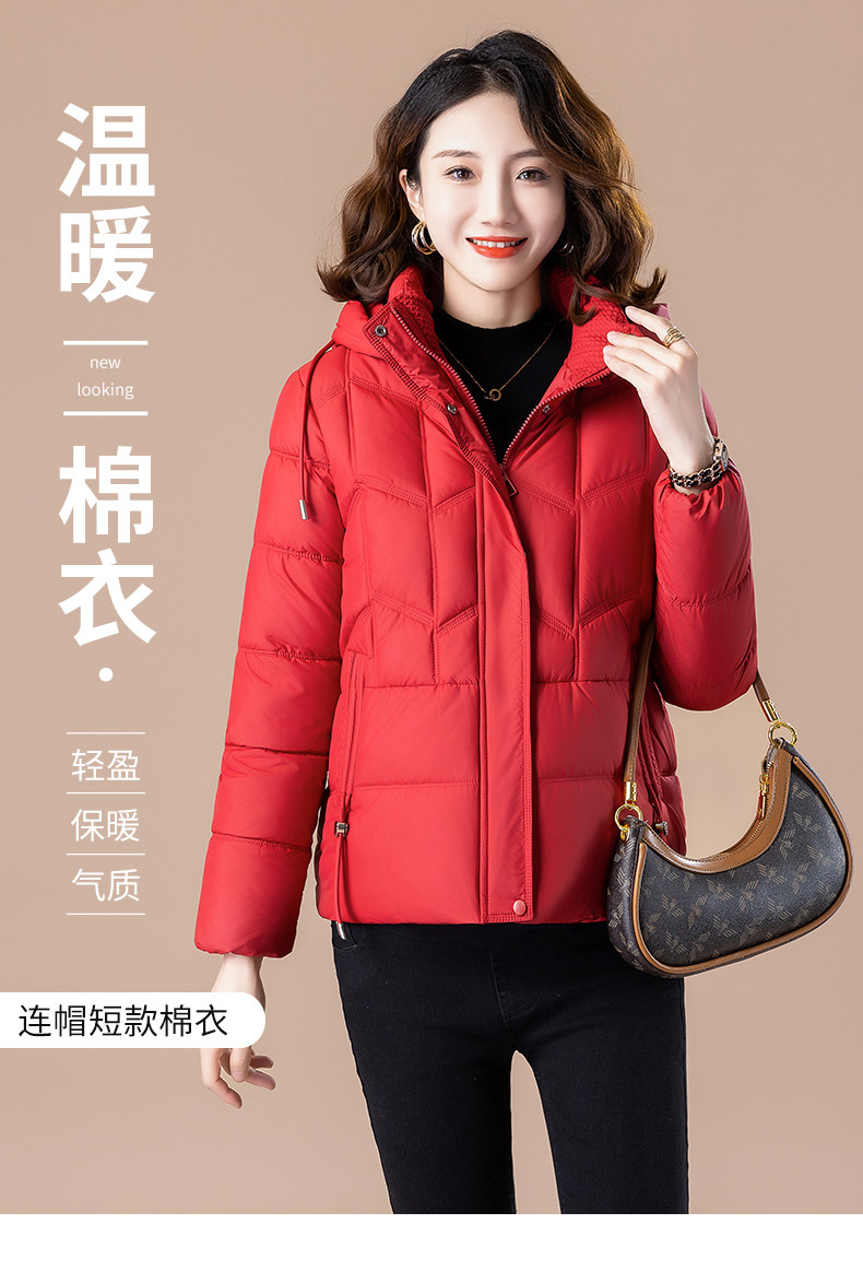 啄木鳥連帽短款棉衣女冬季2025新款加厚保暖中年媽媽羽絨棉服外套