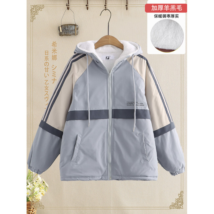 初中生夾棉外套女學院風青少年冬裝新款高中學生冬季新款加厚棉襖
