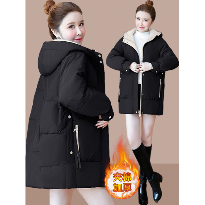 2025冬季新款女裝中長款棉衣棉服加厚保暖棉襖小個子夾棉外套爆款