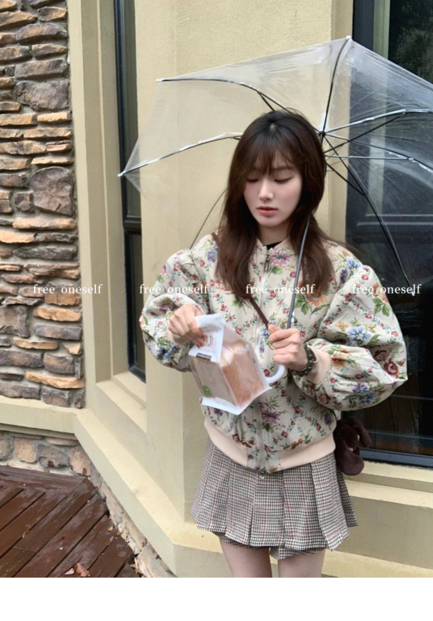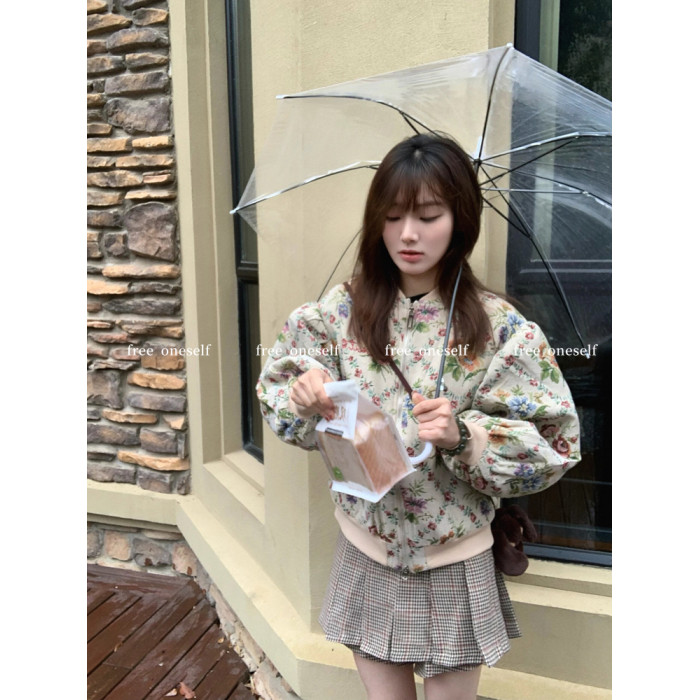 free oneself 復古油畫棉服女冬季設計感棉衣夾棉棒球服保暖外套