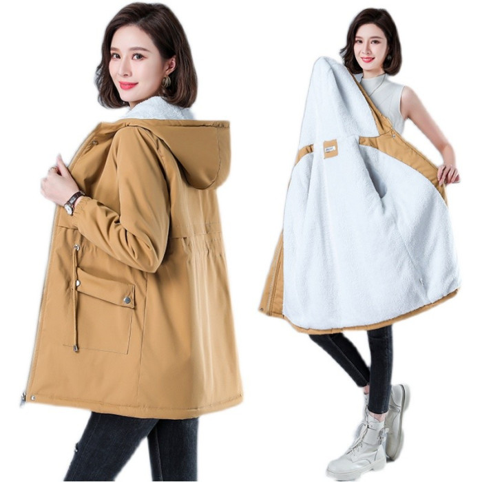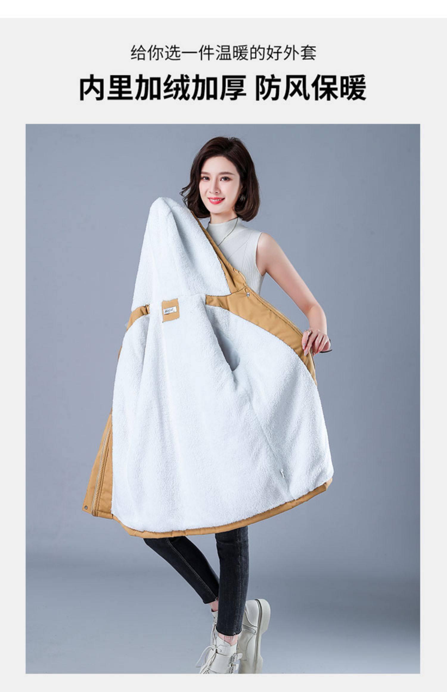 加絨風衣女中長款2025年秋冬季新款韓版寬松休閒加厚棉服外套大衣