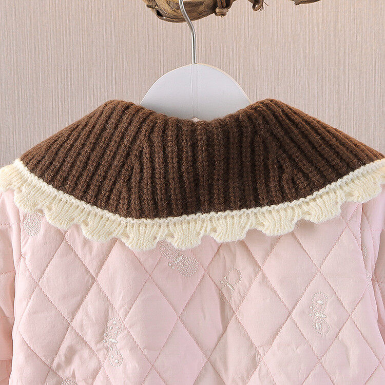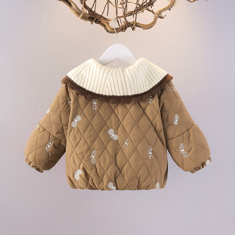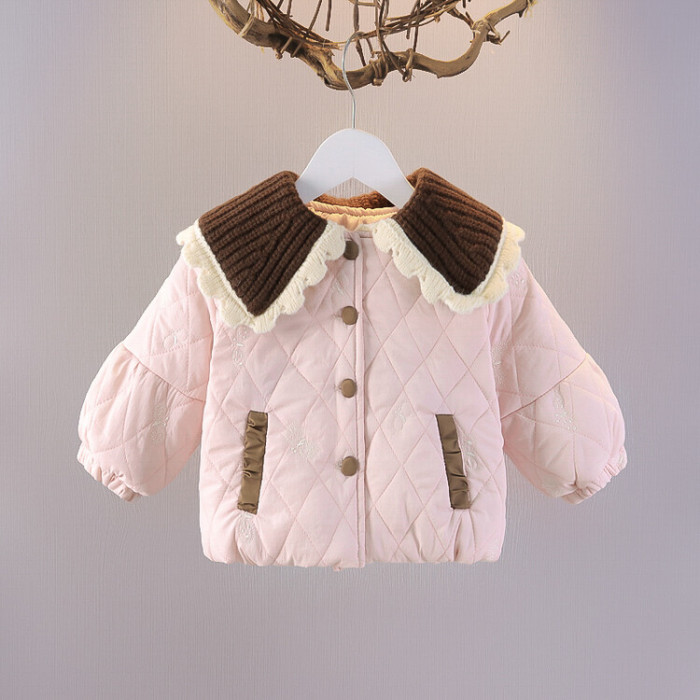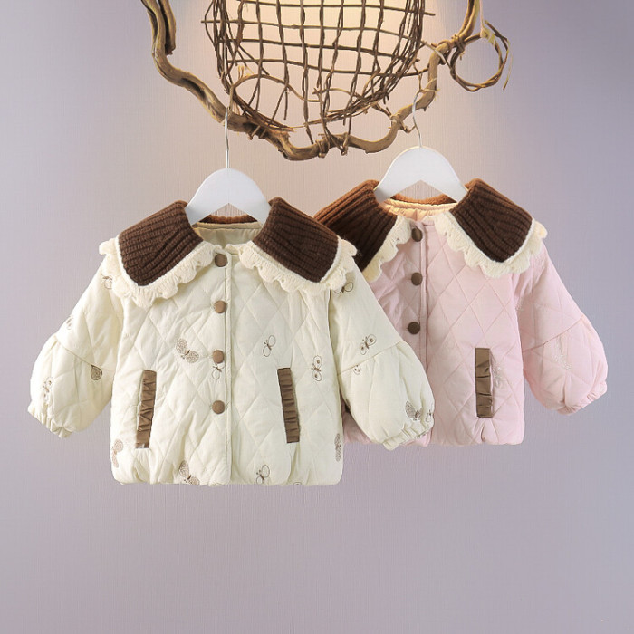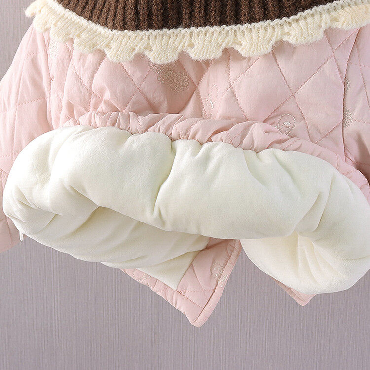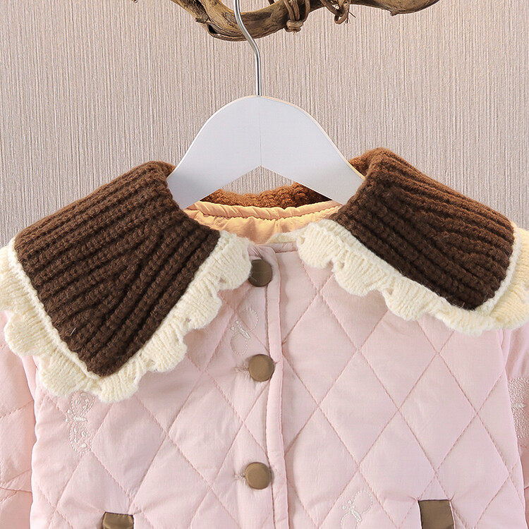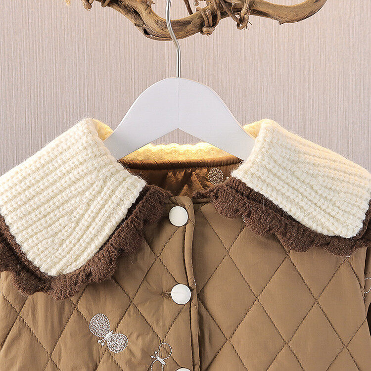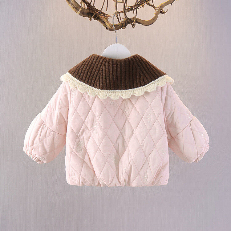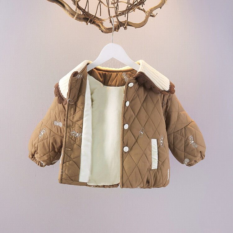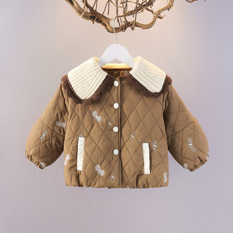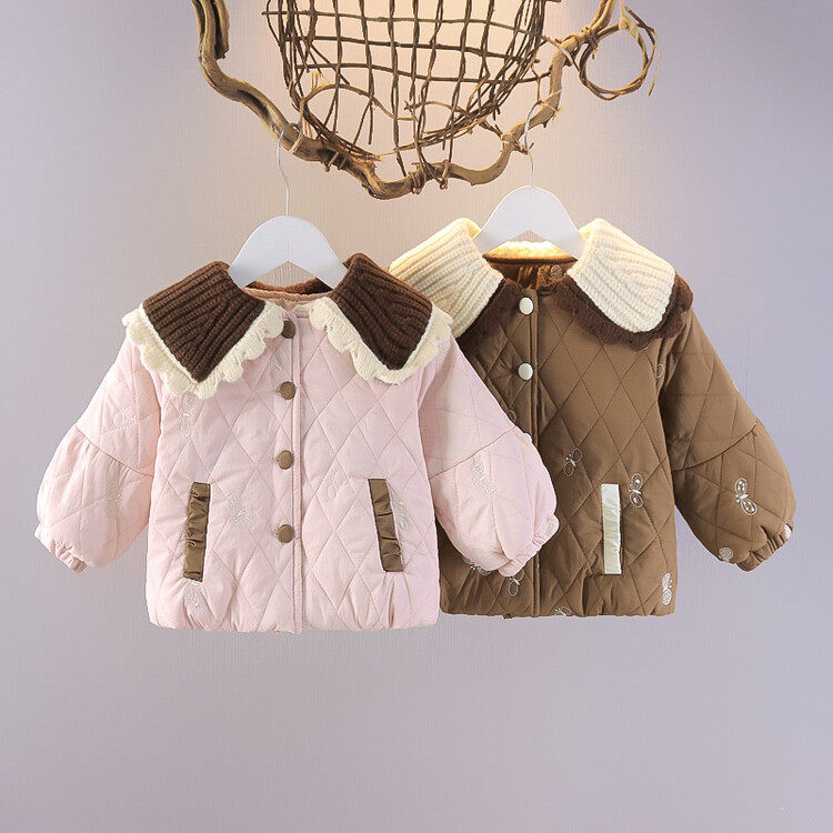 女寶寶冬裝棉衣2024新款夾棉開衫周嵗秋冬女小童時髦棉服外套