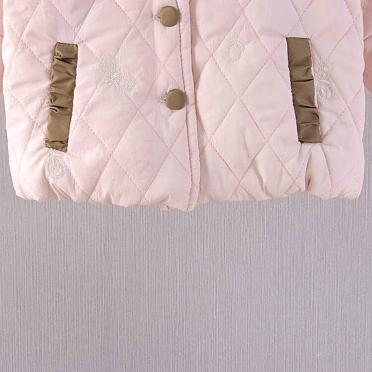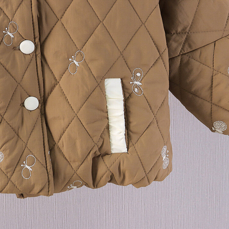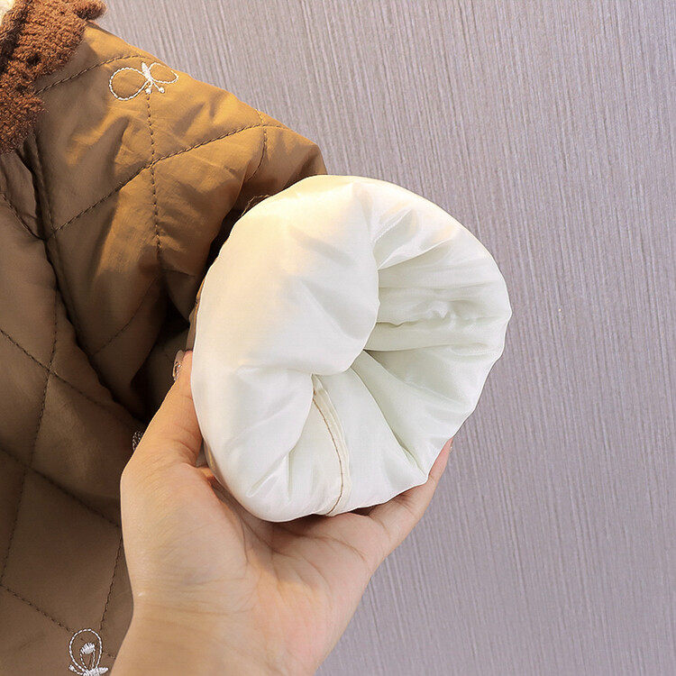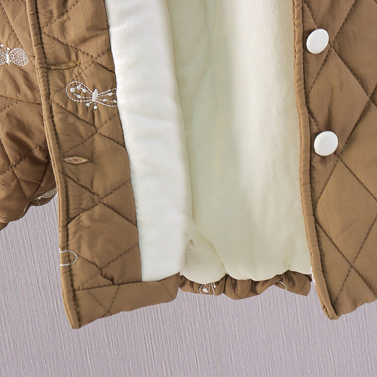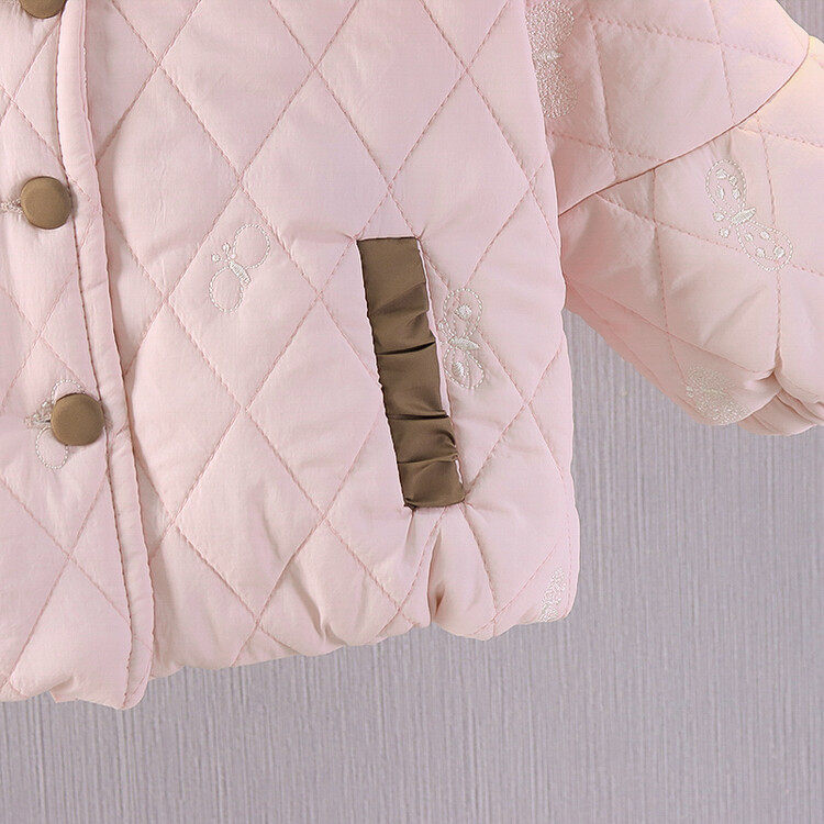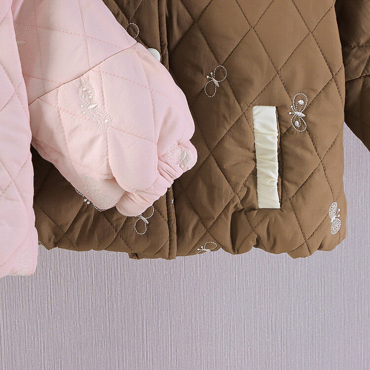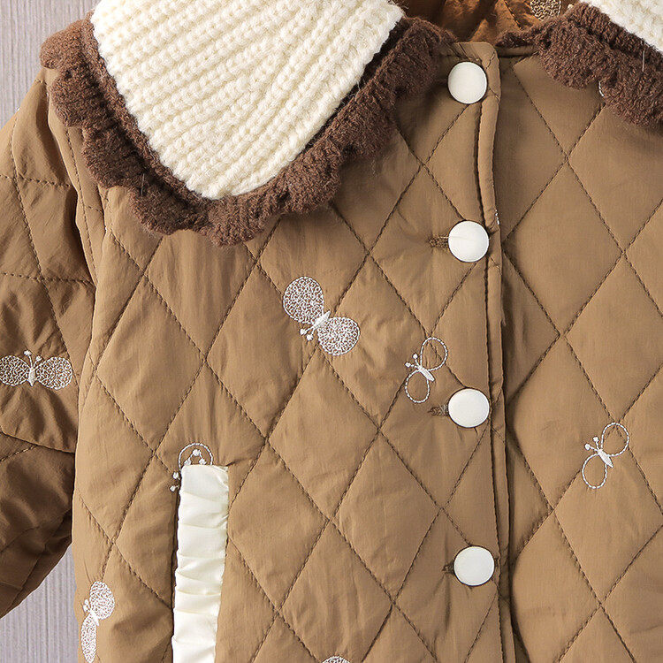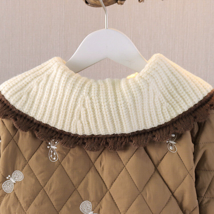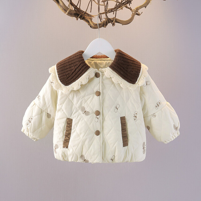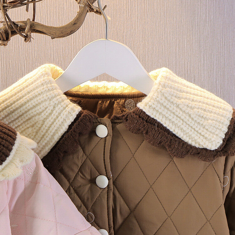 女寶寶冬裝棉衣2024新款夾棉開衫周嵗秋冬女小童時髦棉服外套