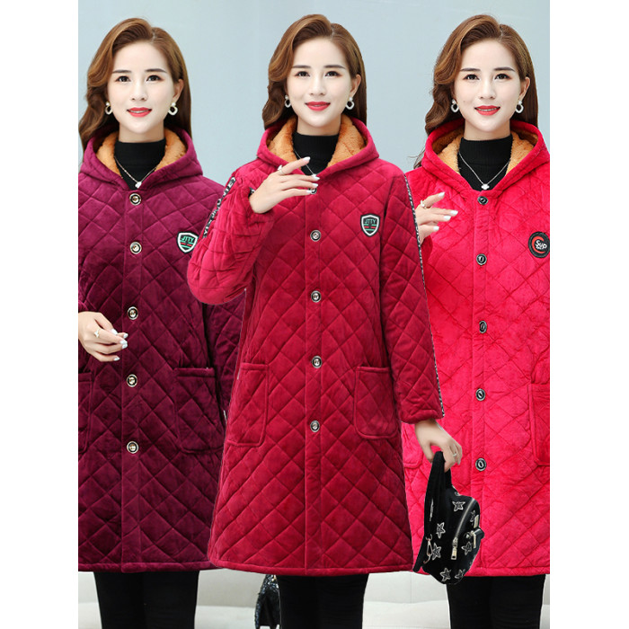 冬季三層保暖加絨加厚罩衣大人女長袖工作服廚房棉衣居家棉服外套