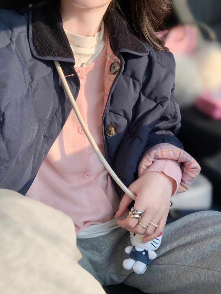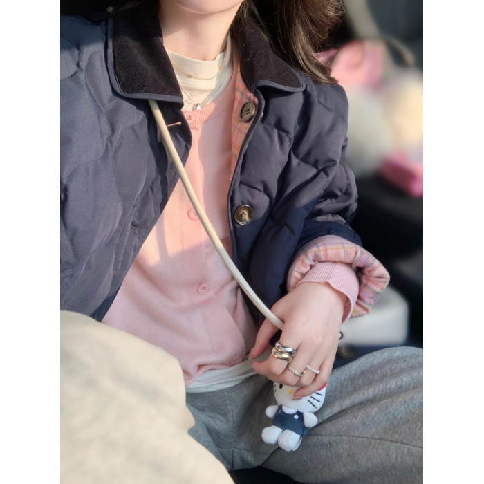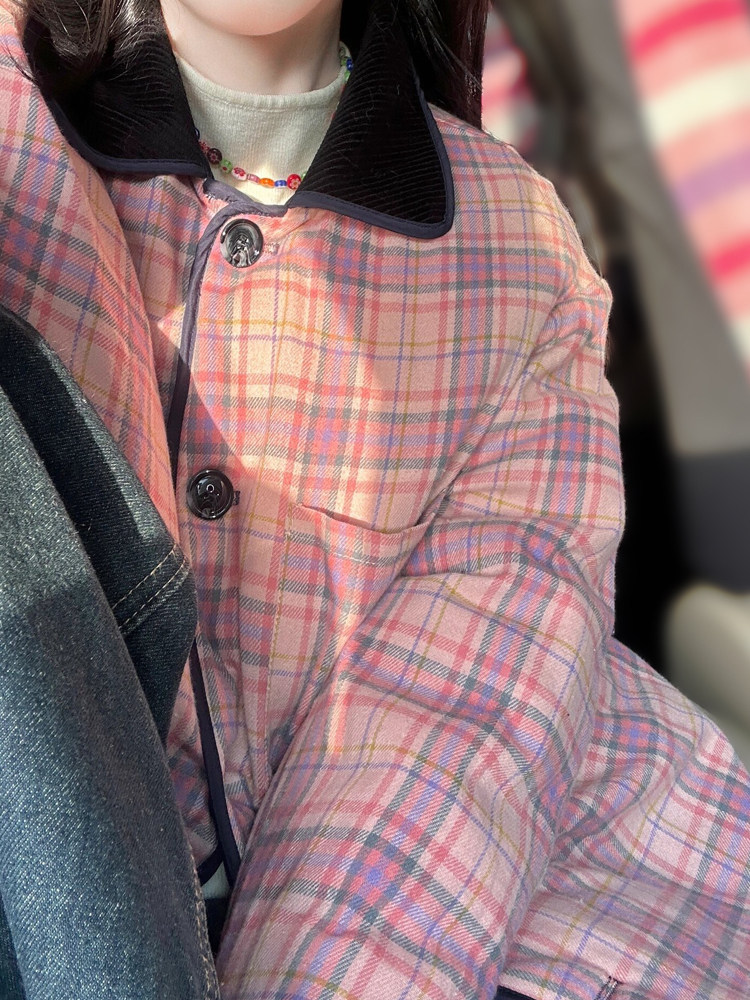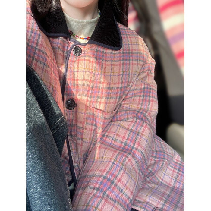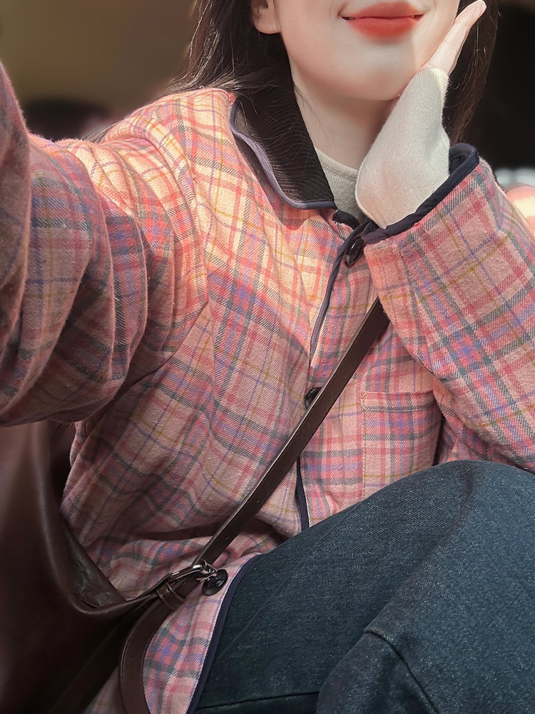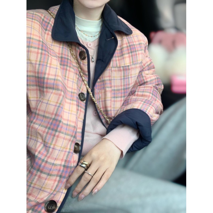別致設計感正反面穿菱格羽絨棉服女冬季新款韓版復古撞色格子外套