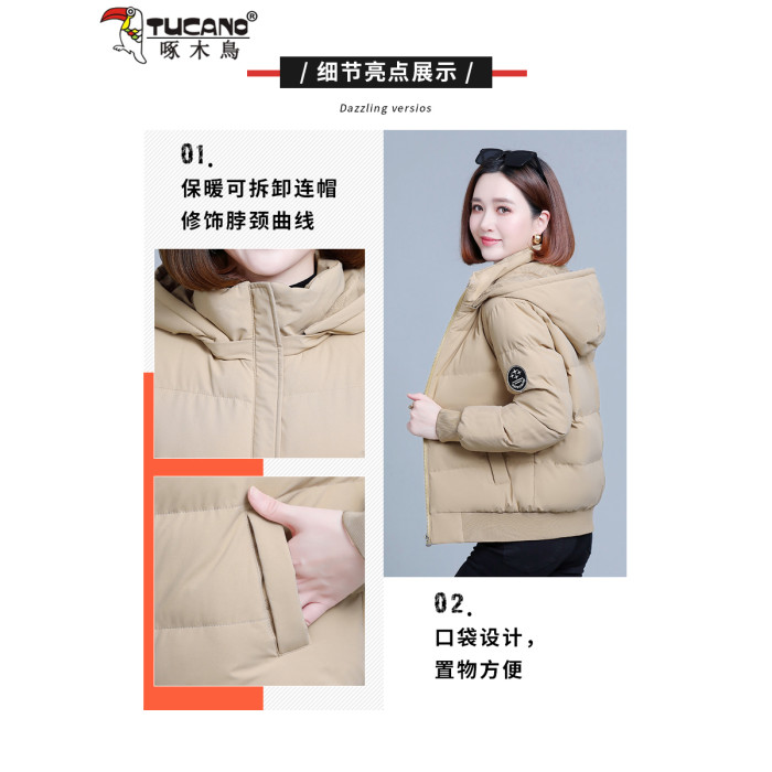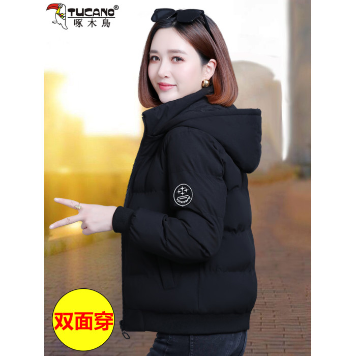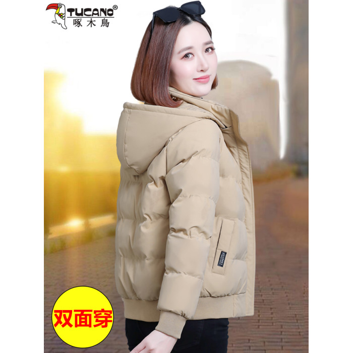 啄木鳥羽絨棉服女短款2025新款冬裝雙面穿小棉襖加厚保暖棉衣外套