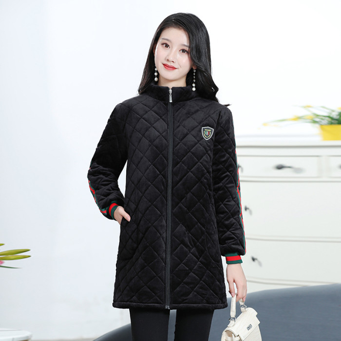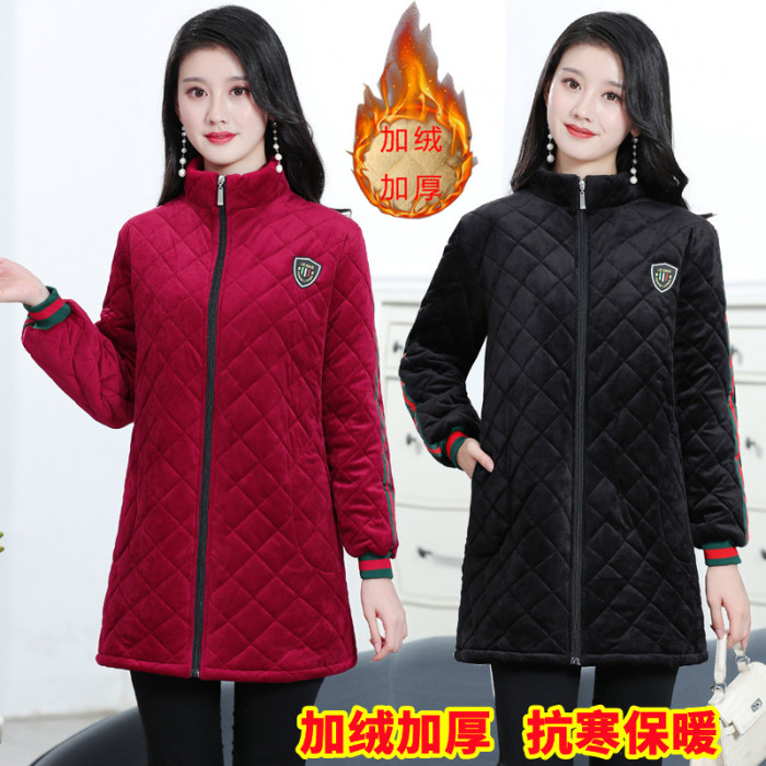 冬季加絨罩衣拉鍊外套女上衣工作服保暖棉襖時尚加厚長袖圍裙護衣