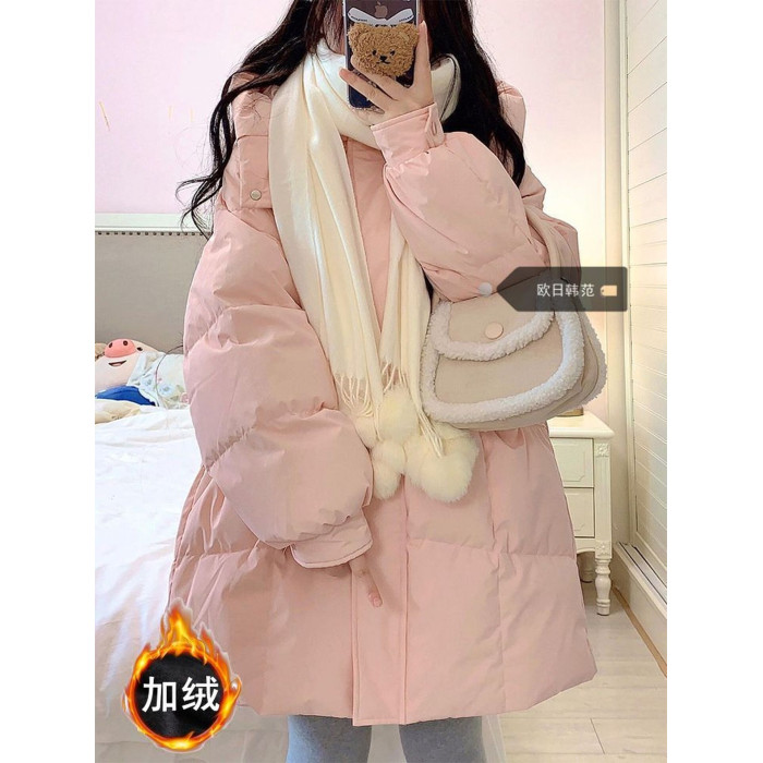大碼連帽羽絨棉服女秋冬2025新款加厚保暖麵包服小個子中短款外套