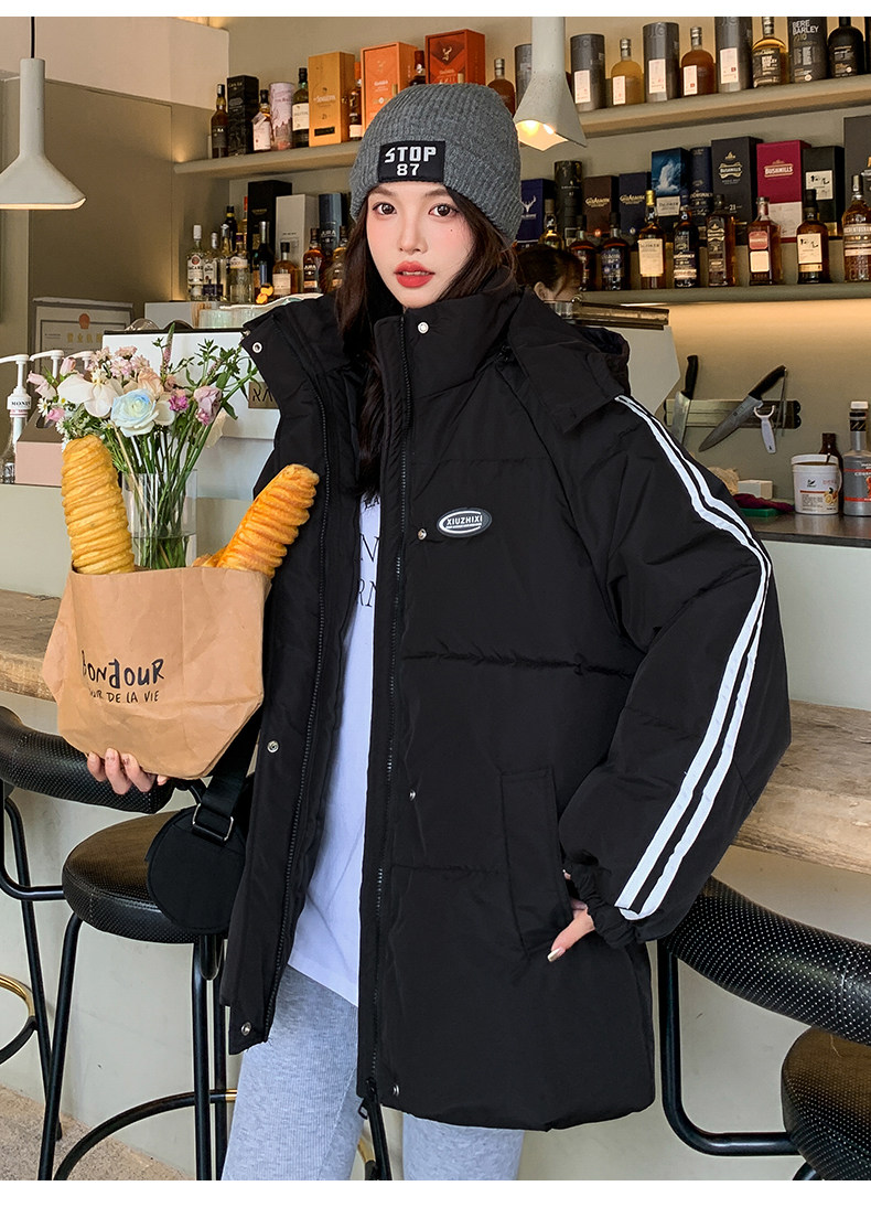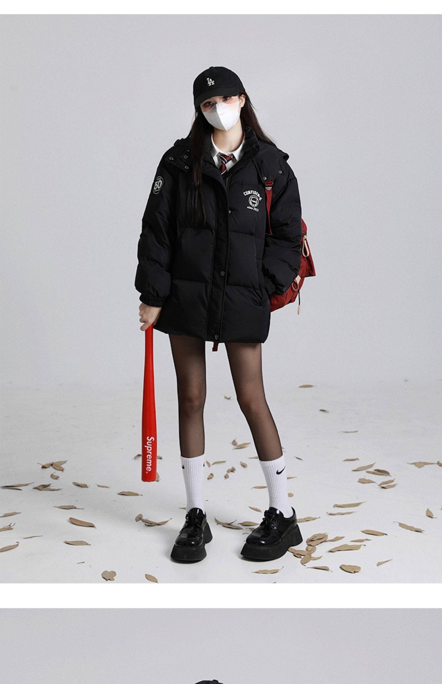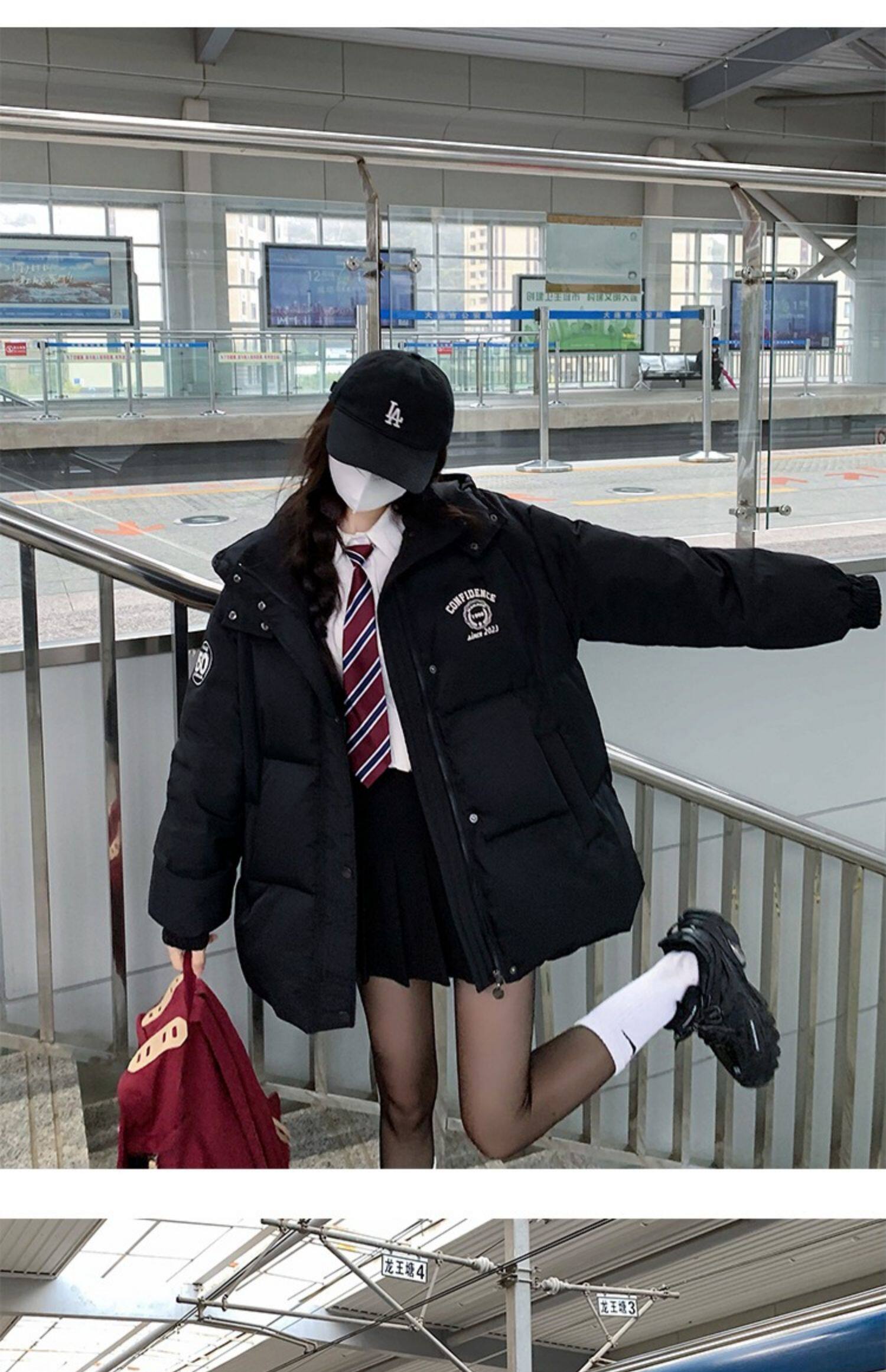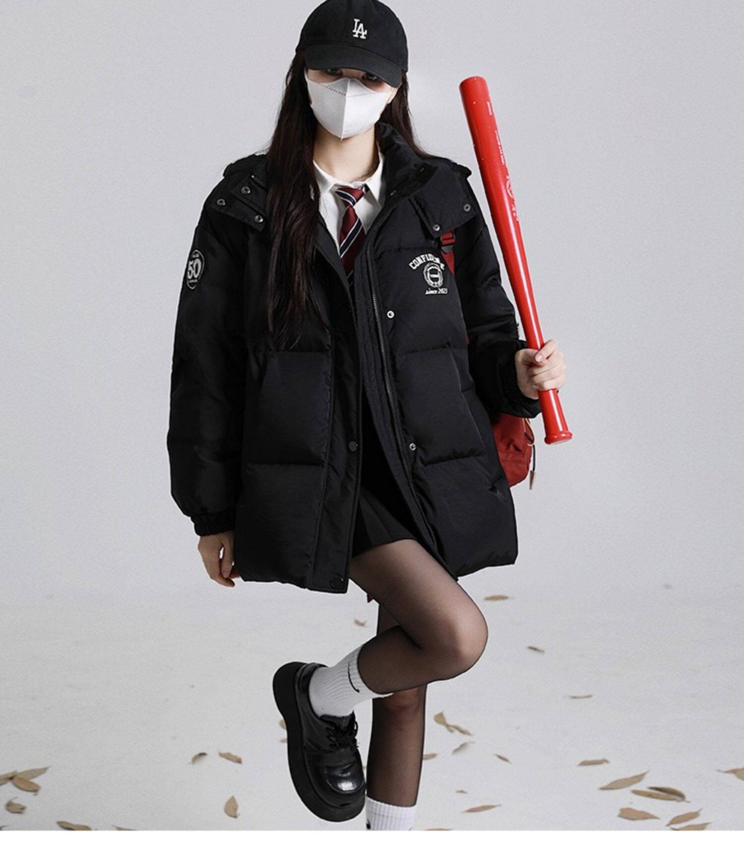 少女大童初中生黑色羽絨服2025冬季新款高中學生寬松棉衣加厚外套