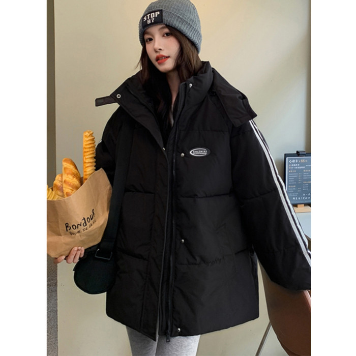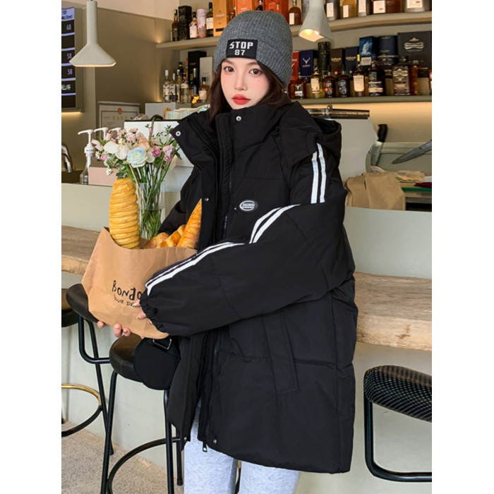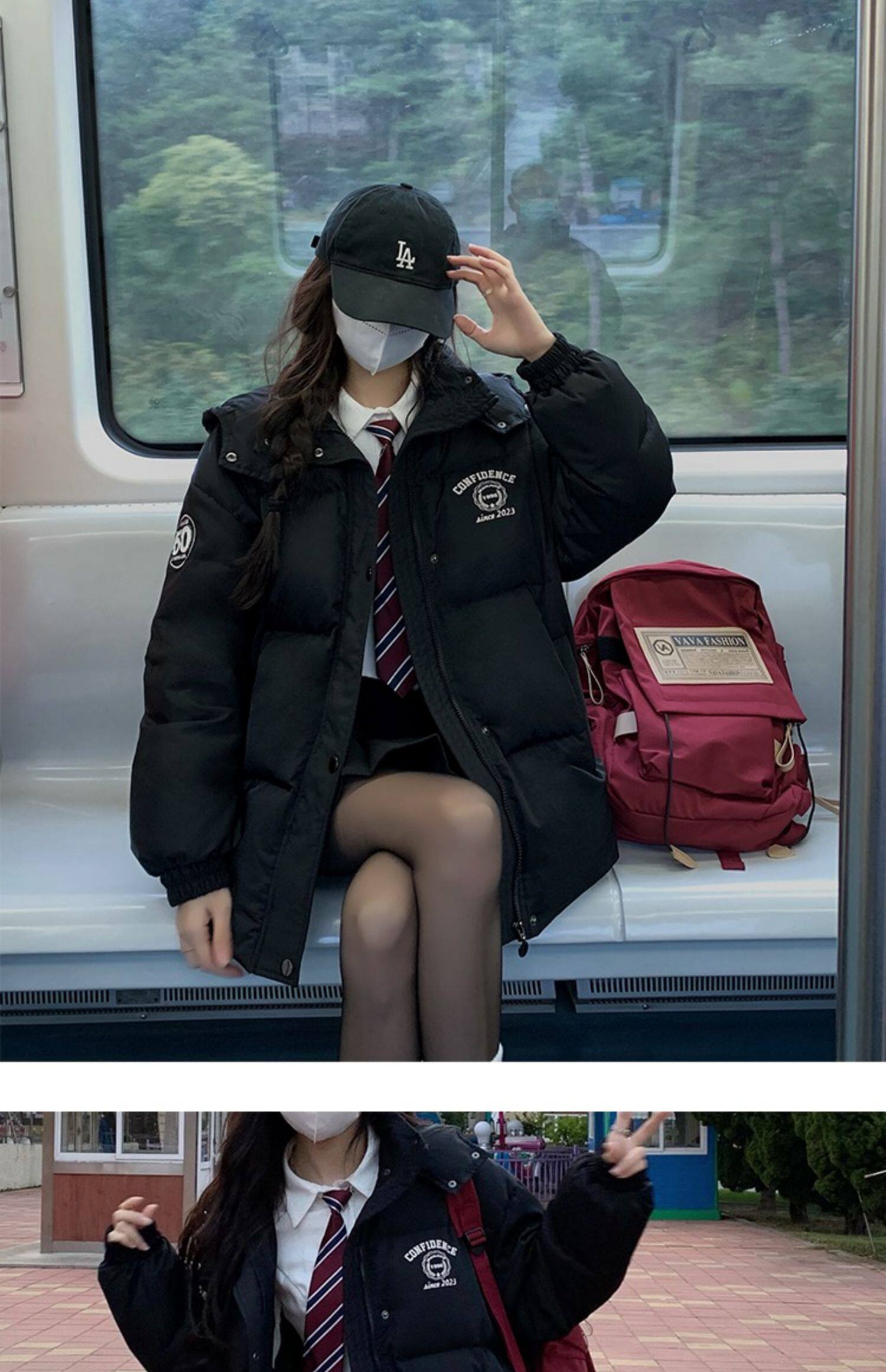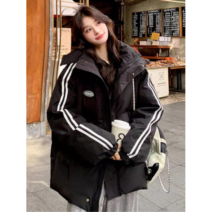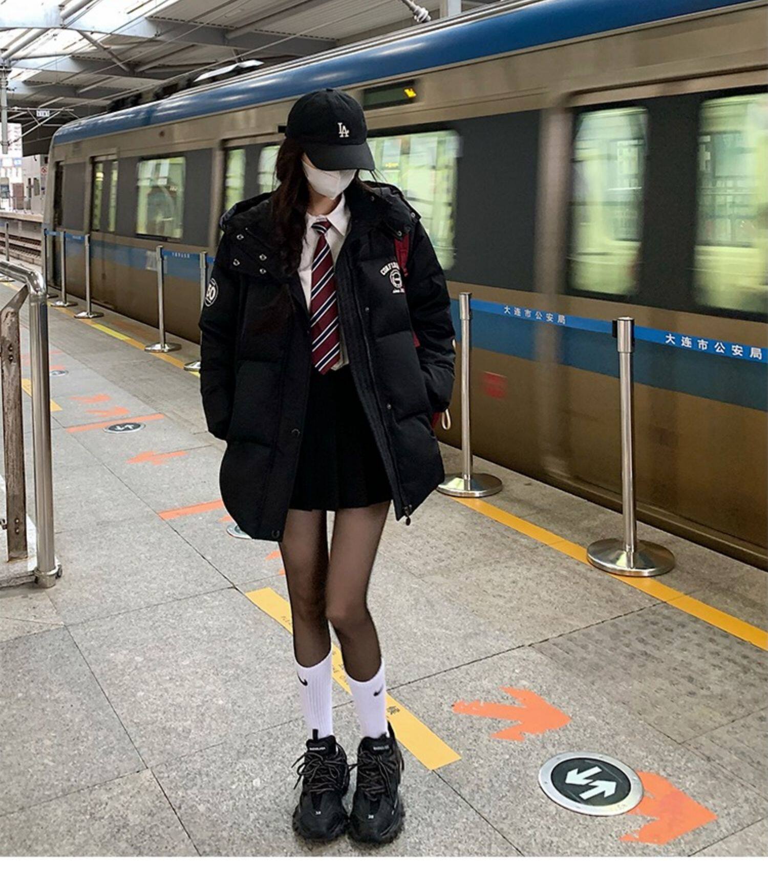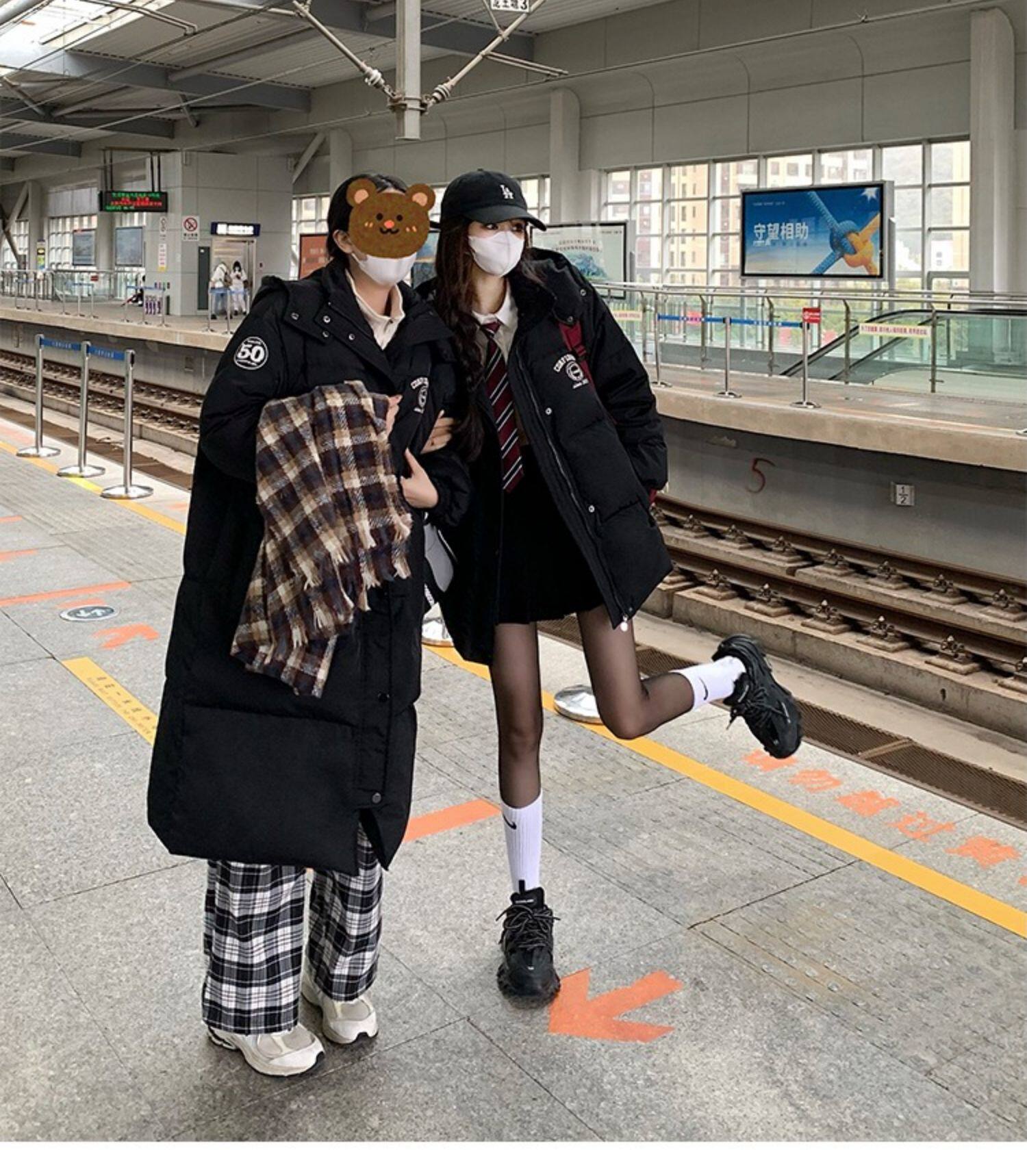 少女大童初中生黑色羽絨服2025冬季新款高中學生寬松棉衣加厚外套