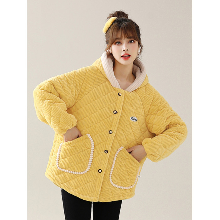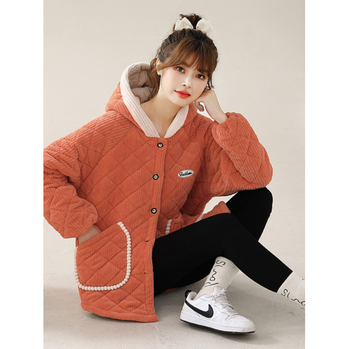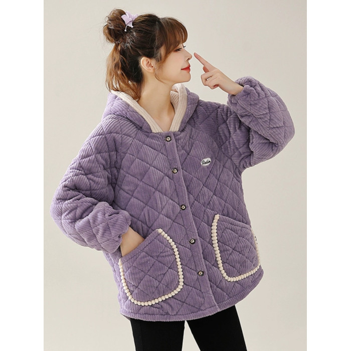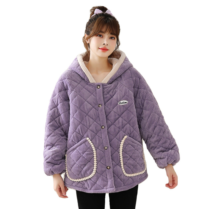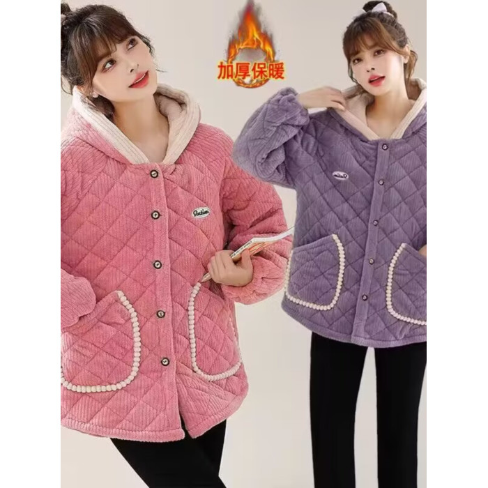 冬季加絨加厚罩衣女裝防寒外套棉罩衣加絨棉衣家居服小個子棉衣女