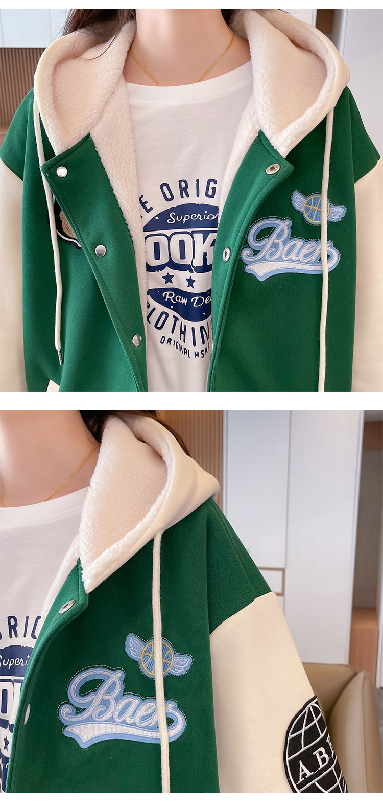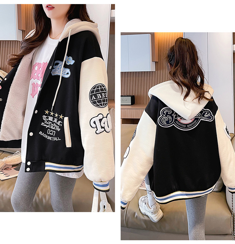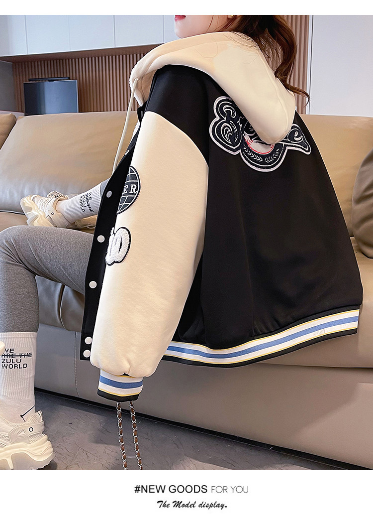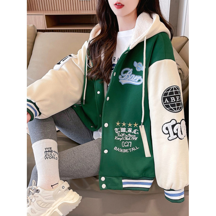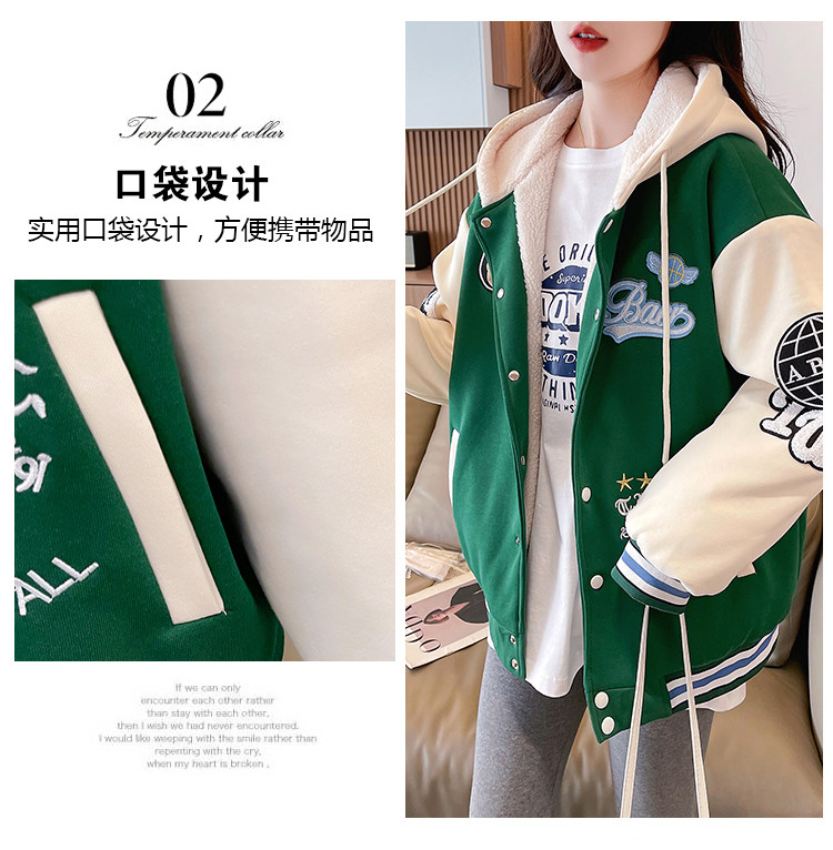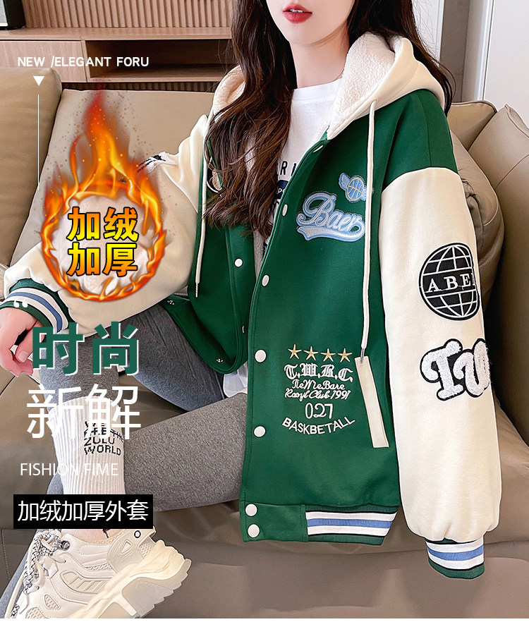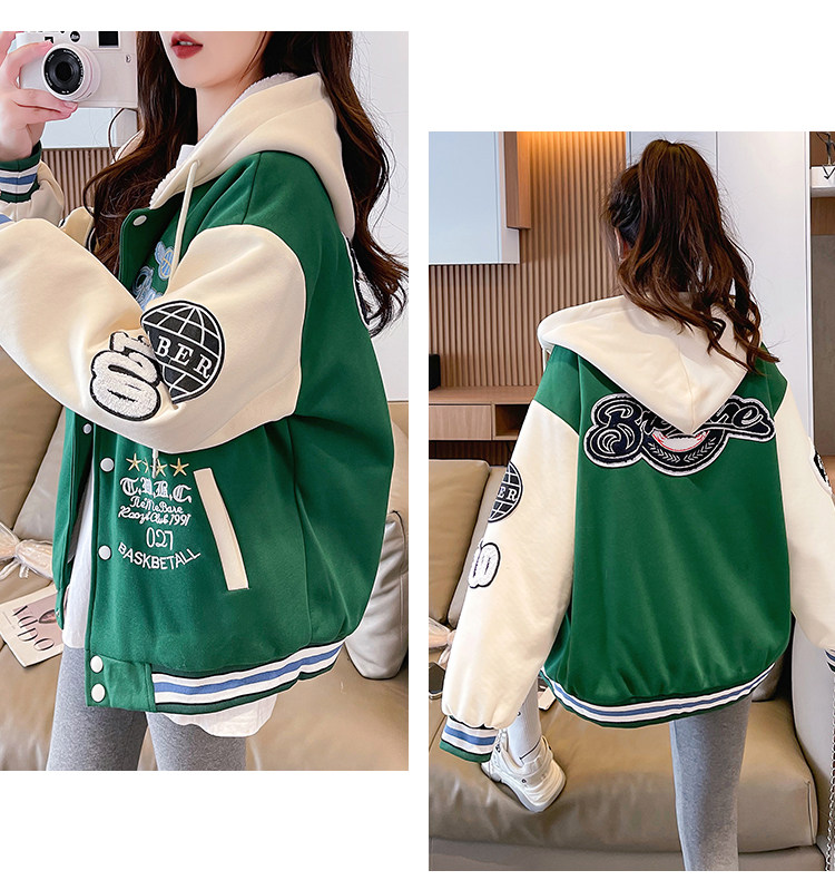 加絨加厚棒球服外套女冬2024新款今年流行美式復古學院風保暖棉服