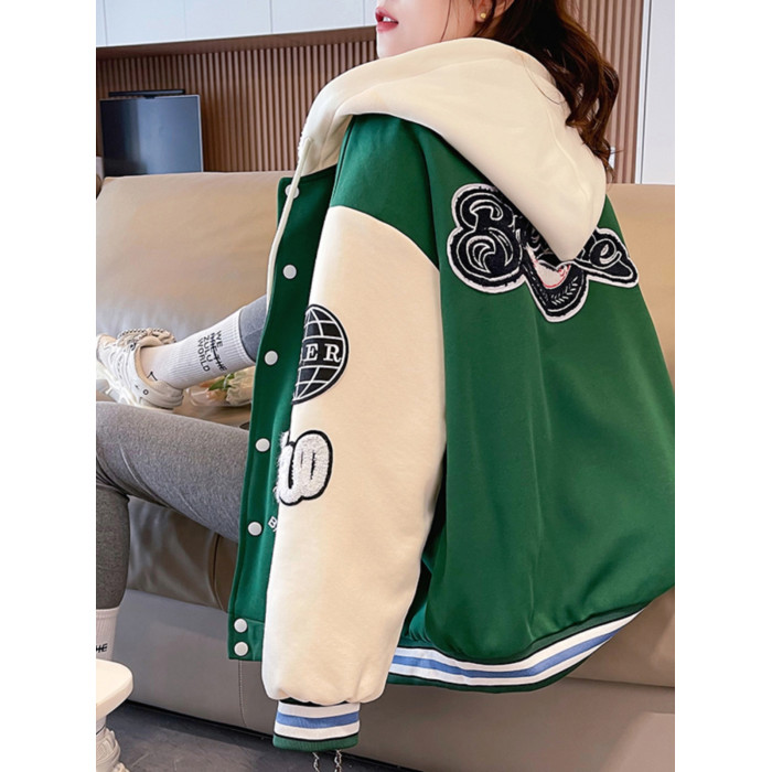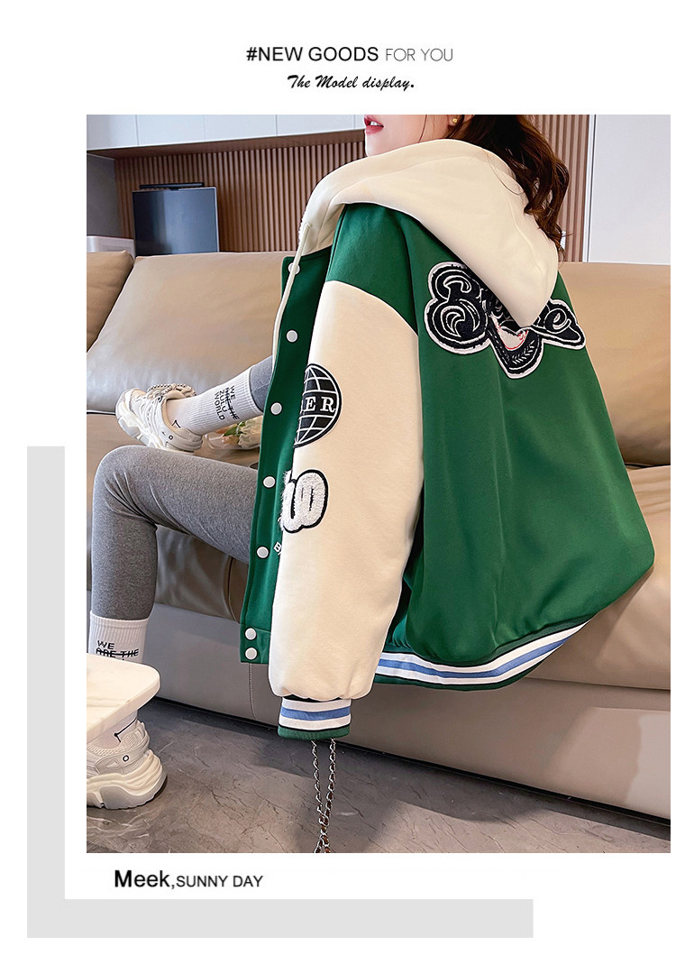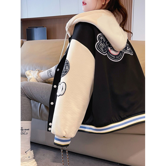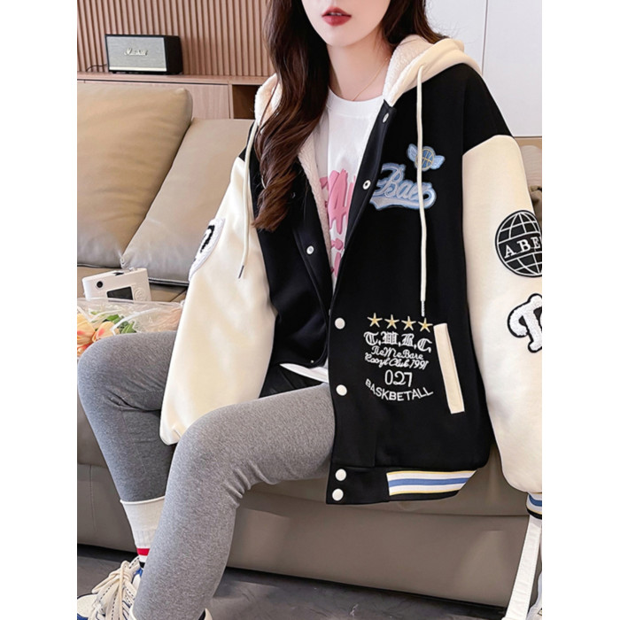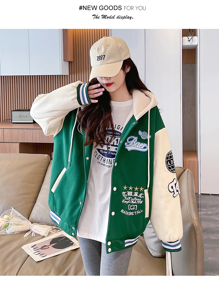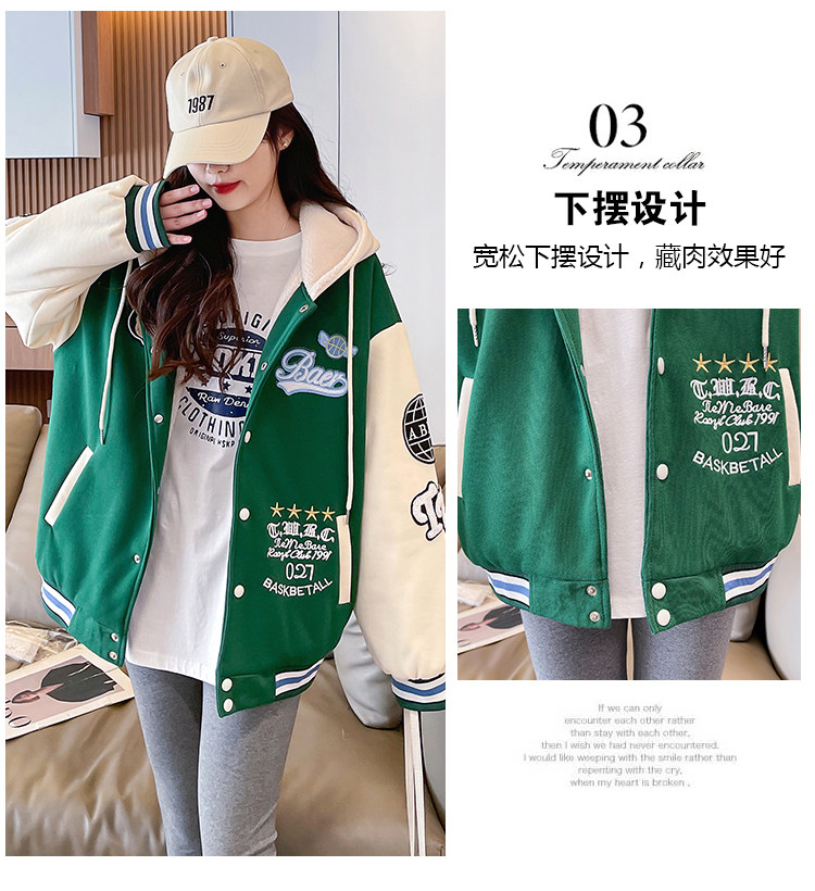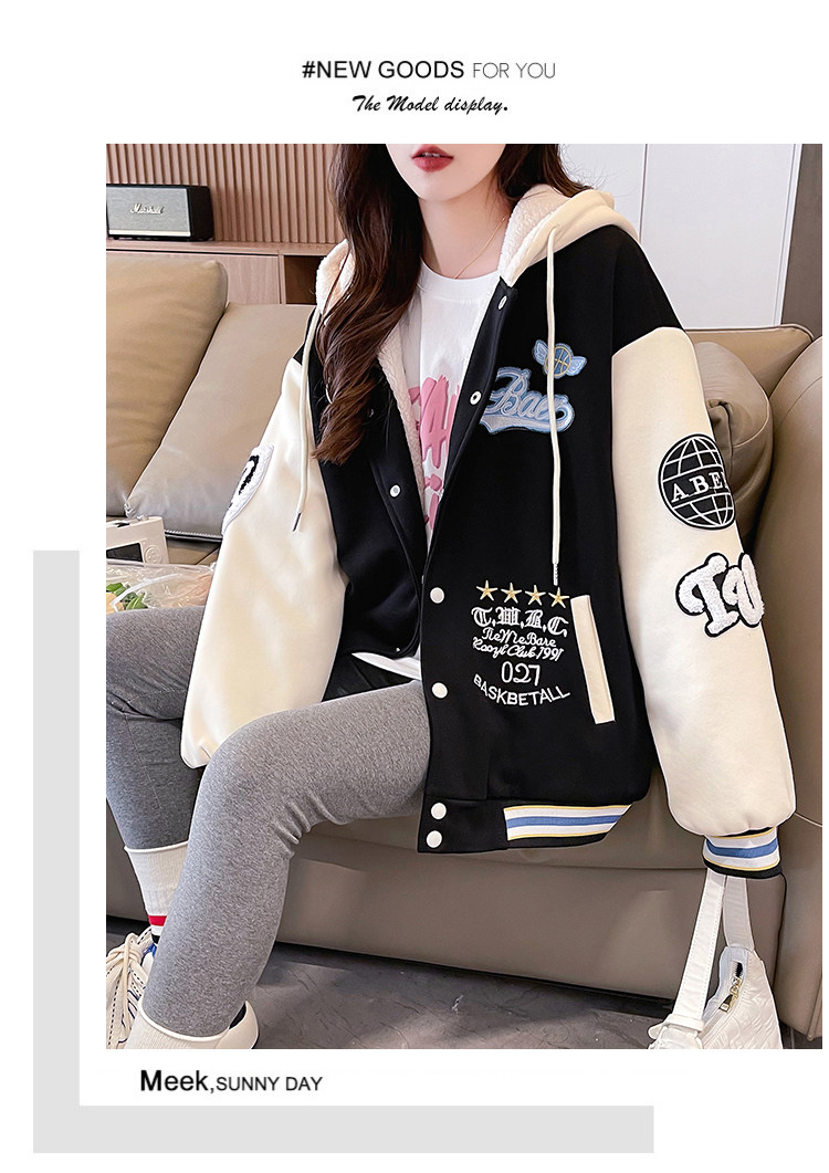 加絨加厚棒球服外套女冬2024新款今年流行美式復古學院風保暖棉服
