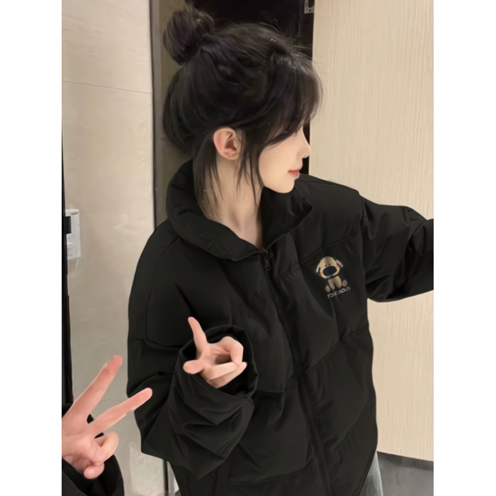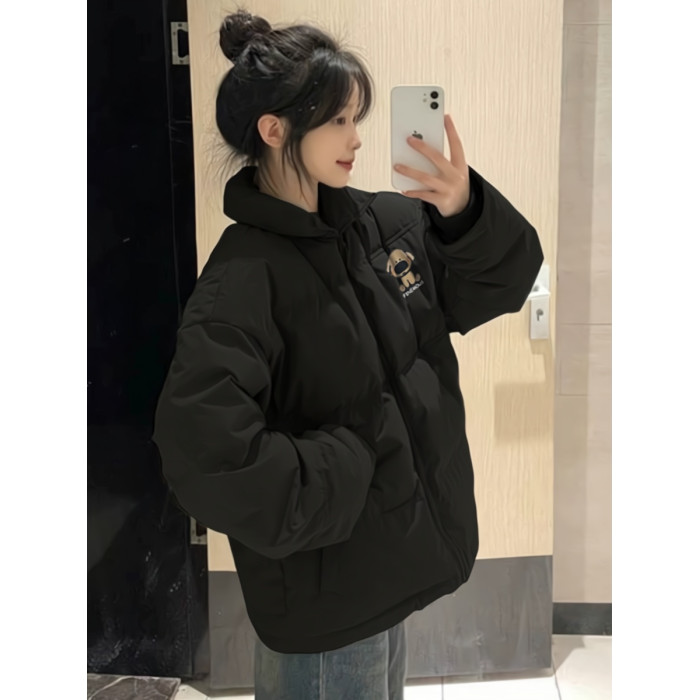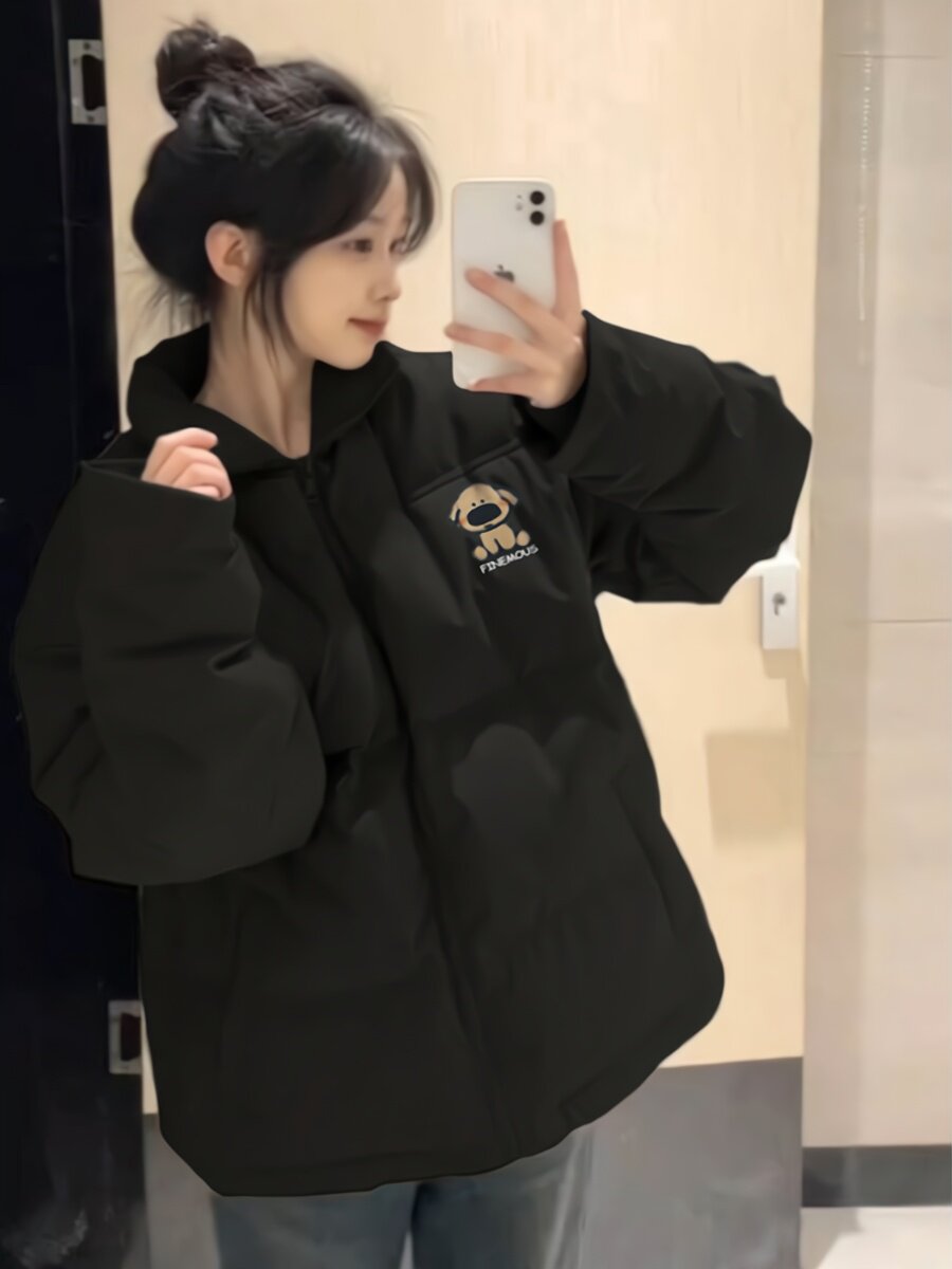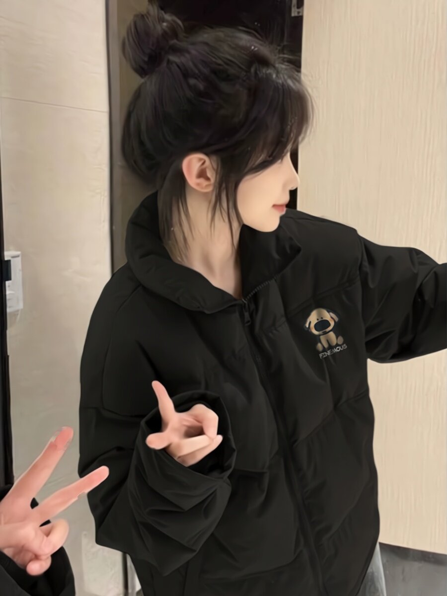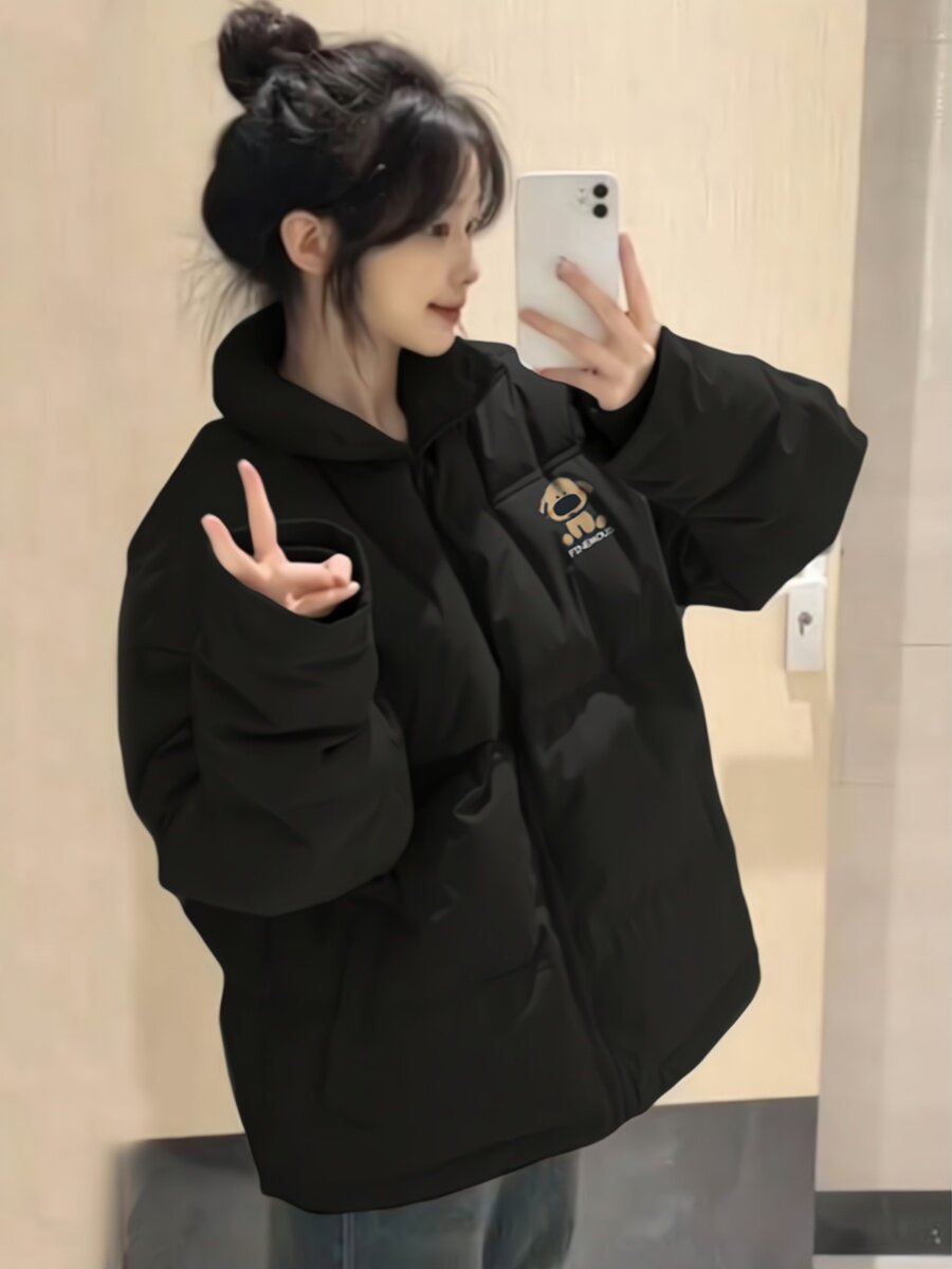 黑色百搭加厚羽絨服女冬季新款13初中學生冬季外套麵包服棉襖15嵗