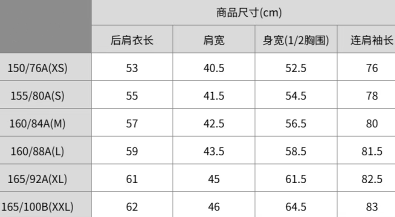| 衣長 | 常規 |